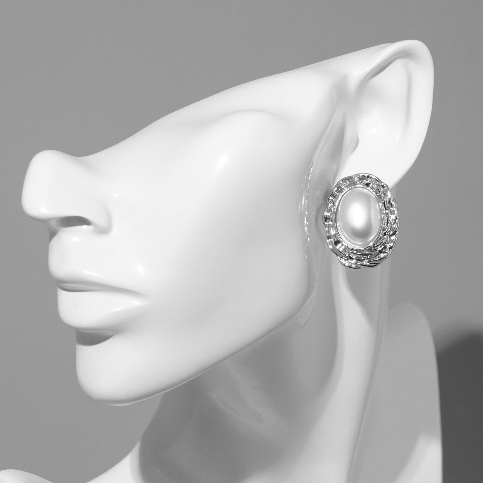 Серьги с жемчугом "Абстракция" зеркало, цвет серебро, 2.8x2.2x0.5 см., QF, Китай