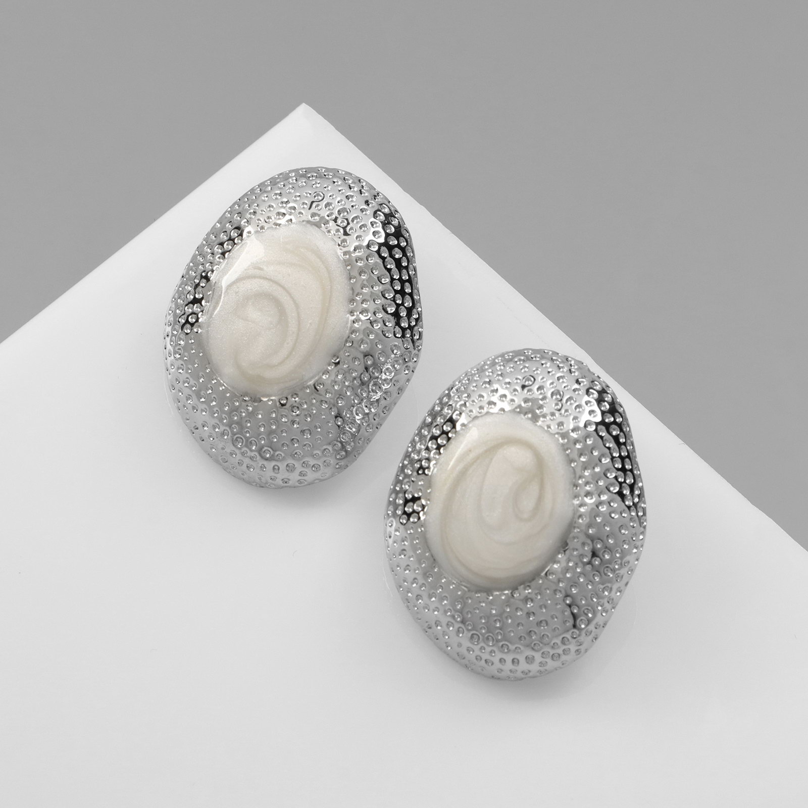 Серьги с жемчугом "Абстракция" жемчужная ракушка, цвет белый в серебре, 2.1x3.3x0.5 см., QF, Китай
