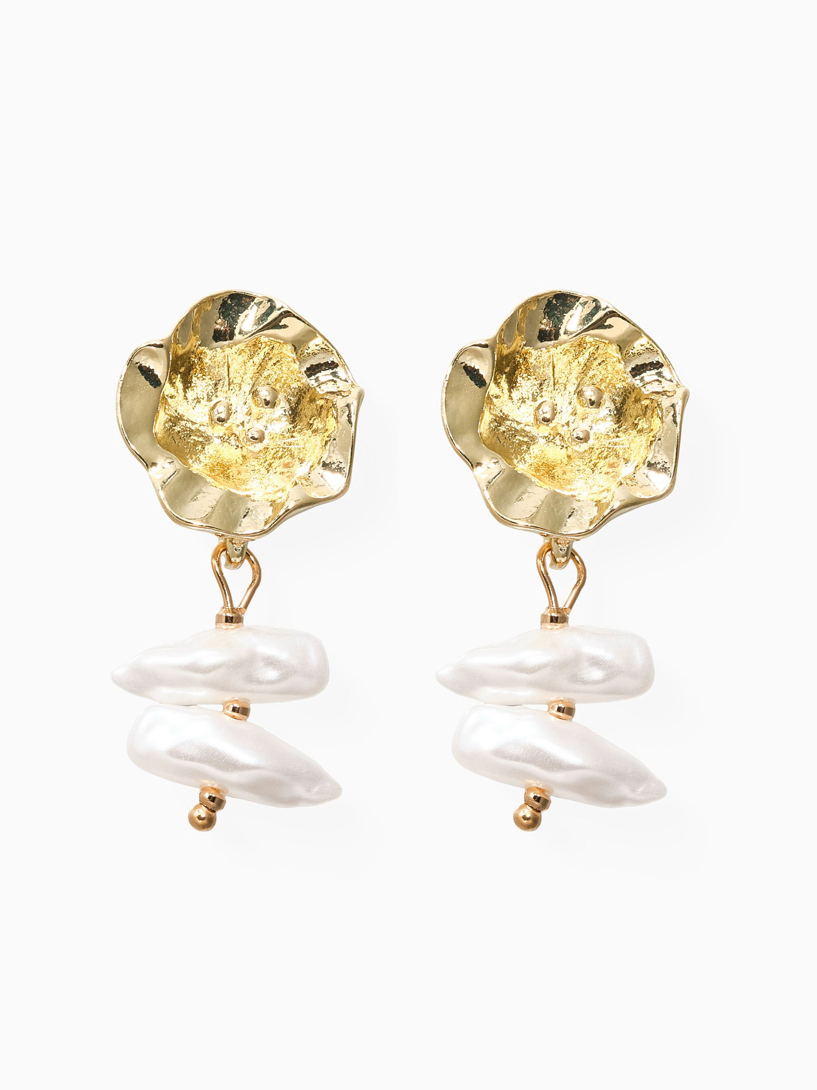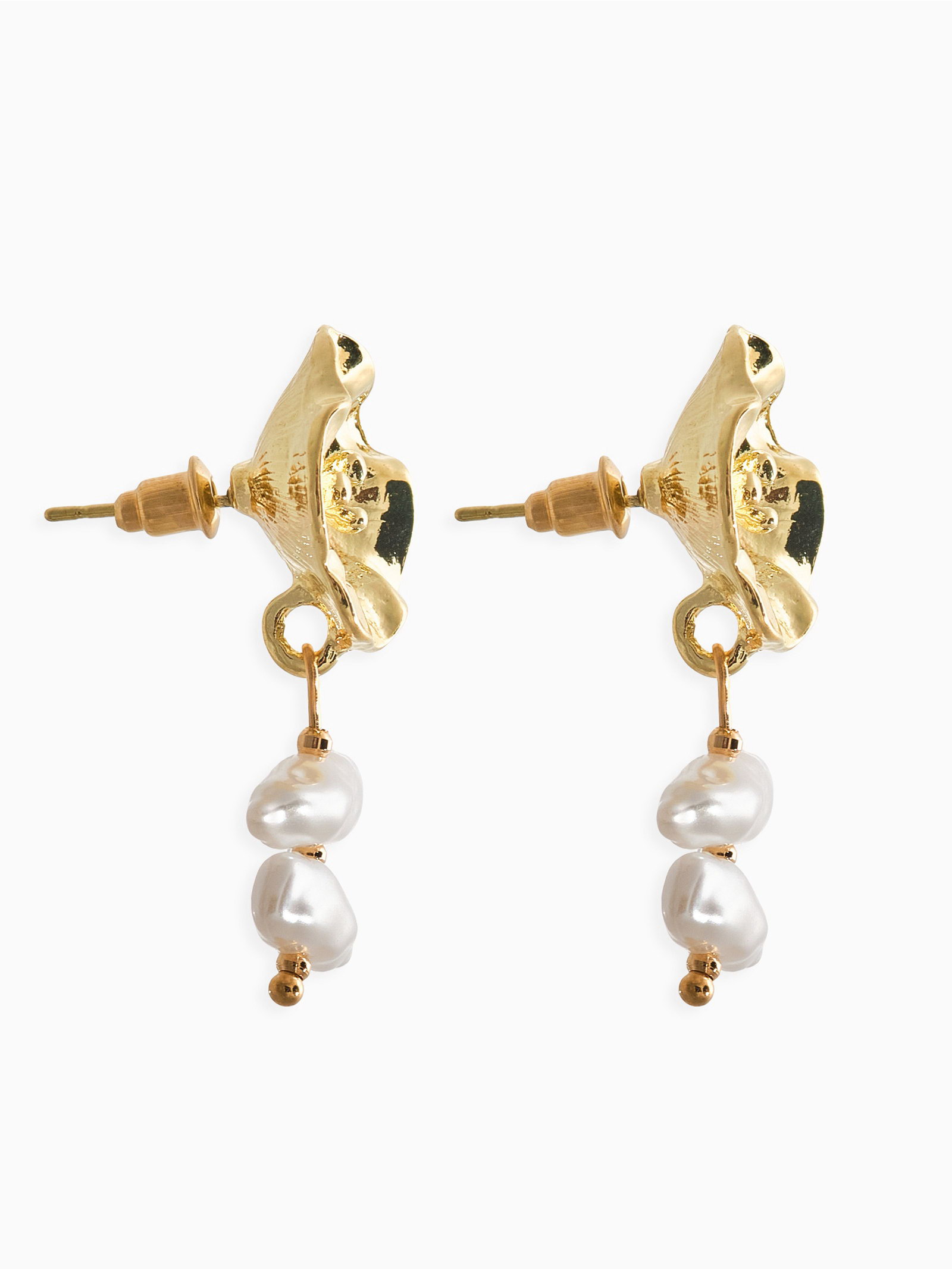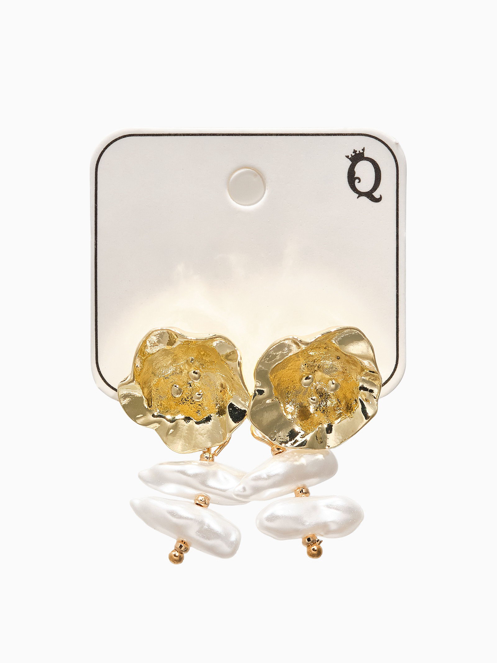 Серьги жемчуг "Цветы кувшинки", белые в золоте, 1.7x3.3x1 см., QF, Китай