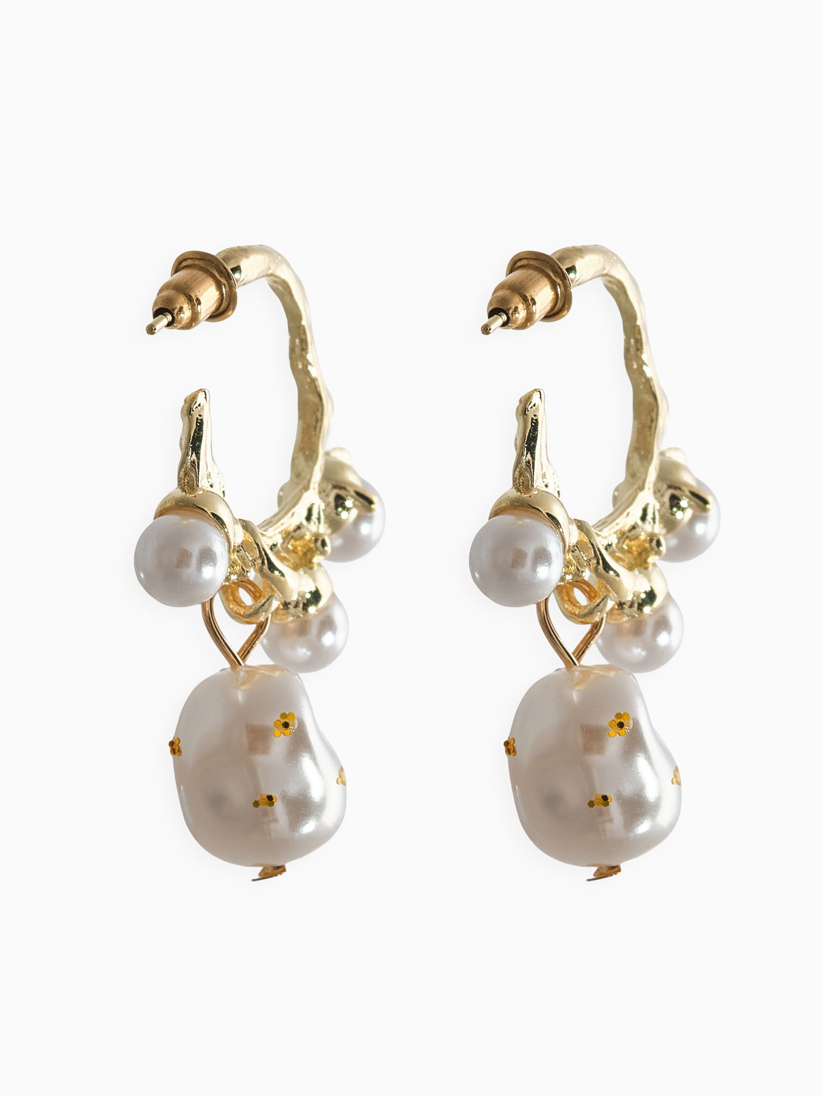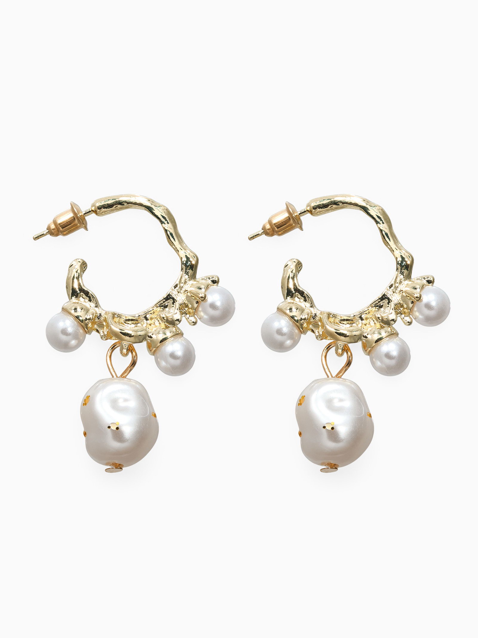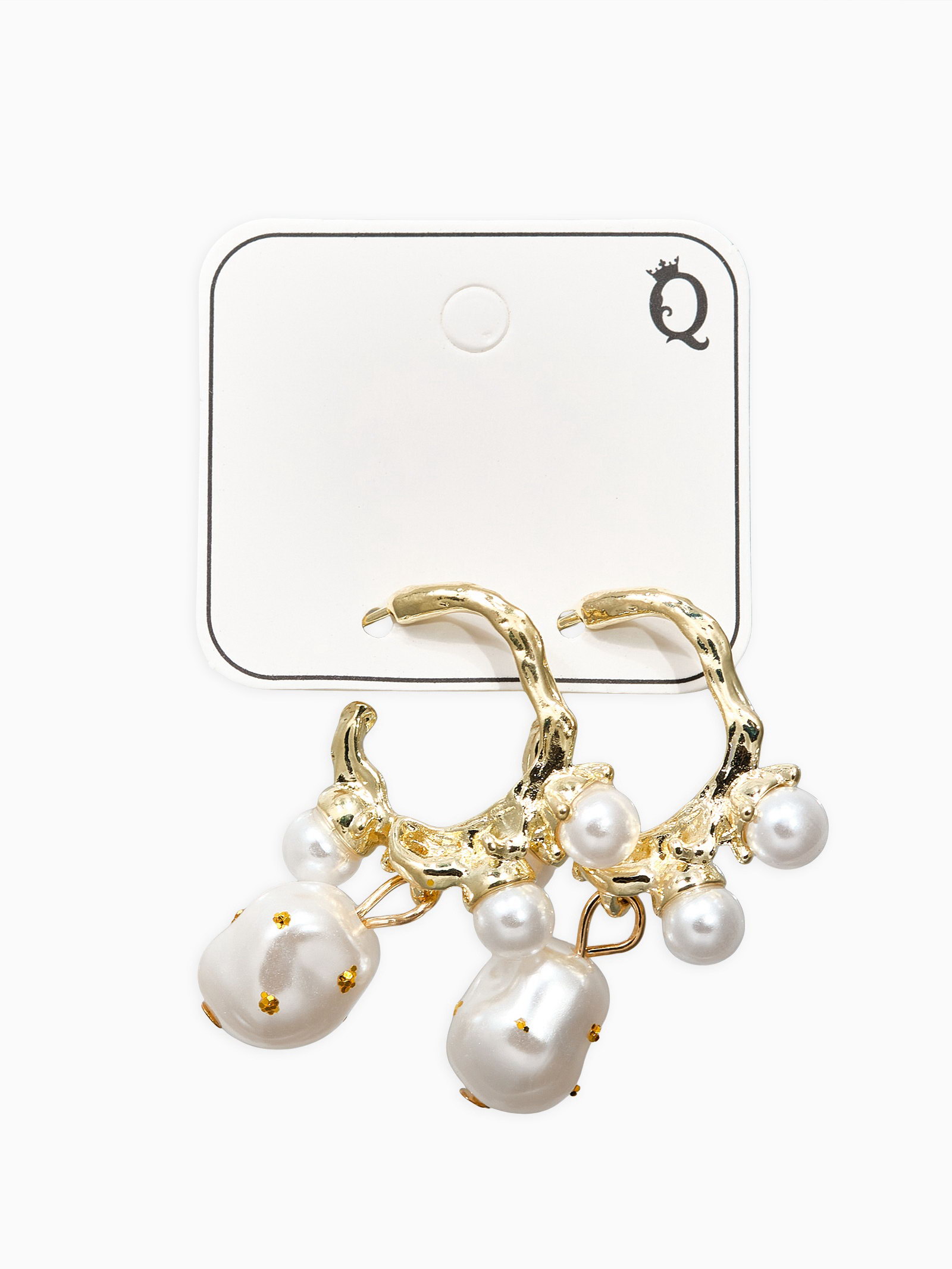 Серьги-кольца с жемчугом "Бусинки в крапинку", белые в золоте, 2x4x1 см., QF, Китай