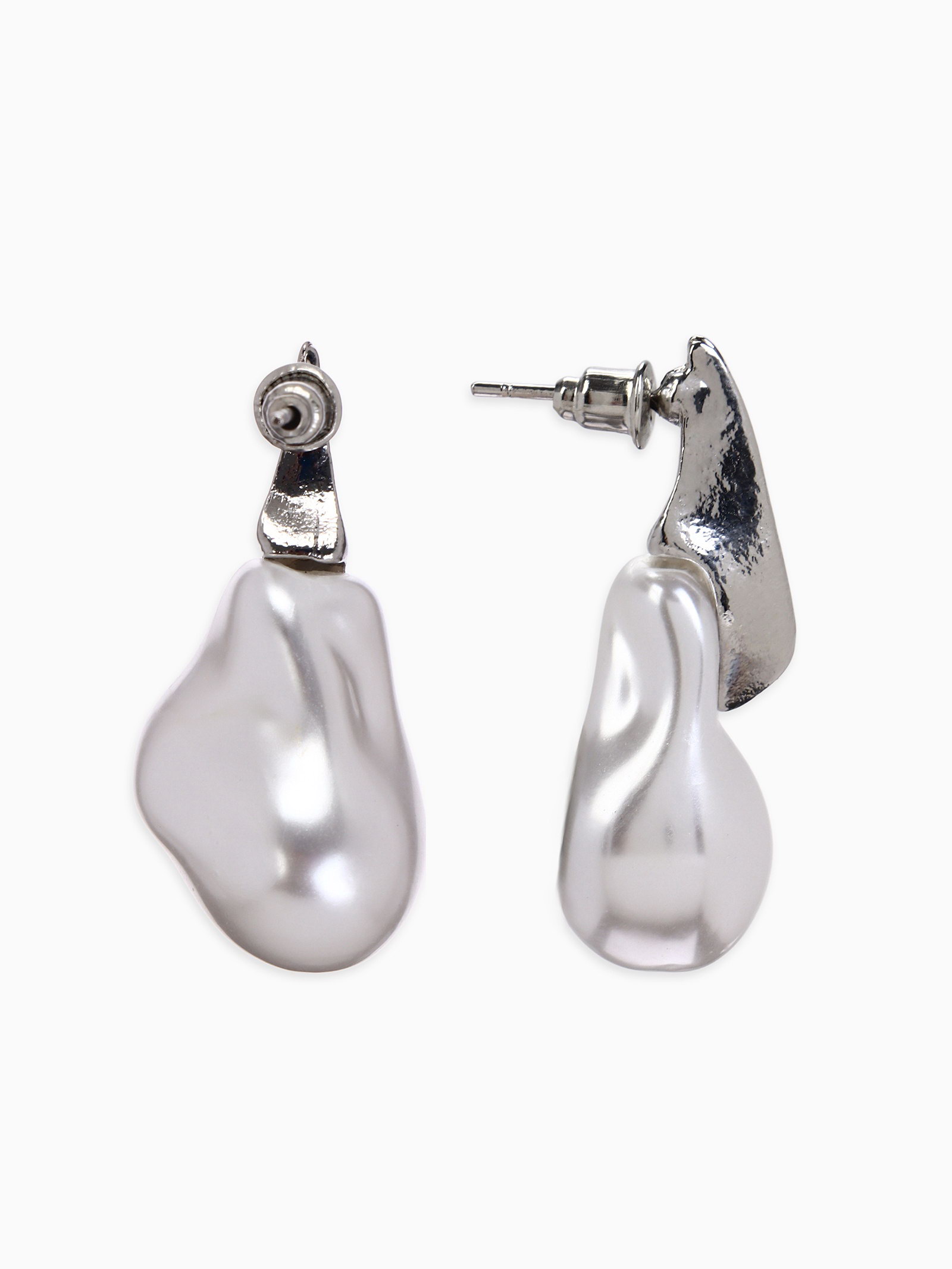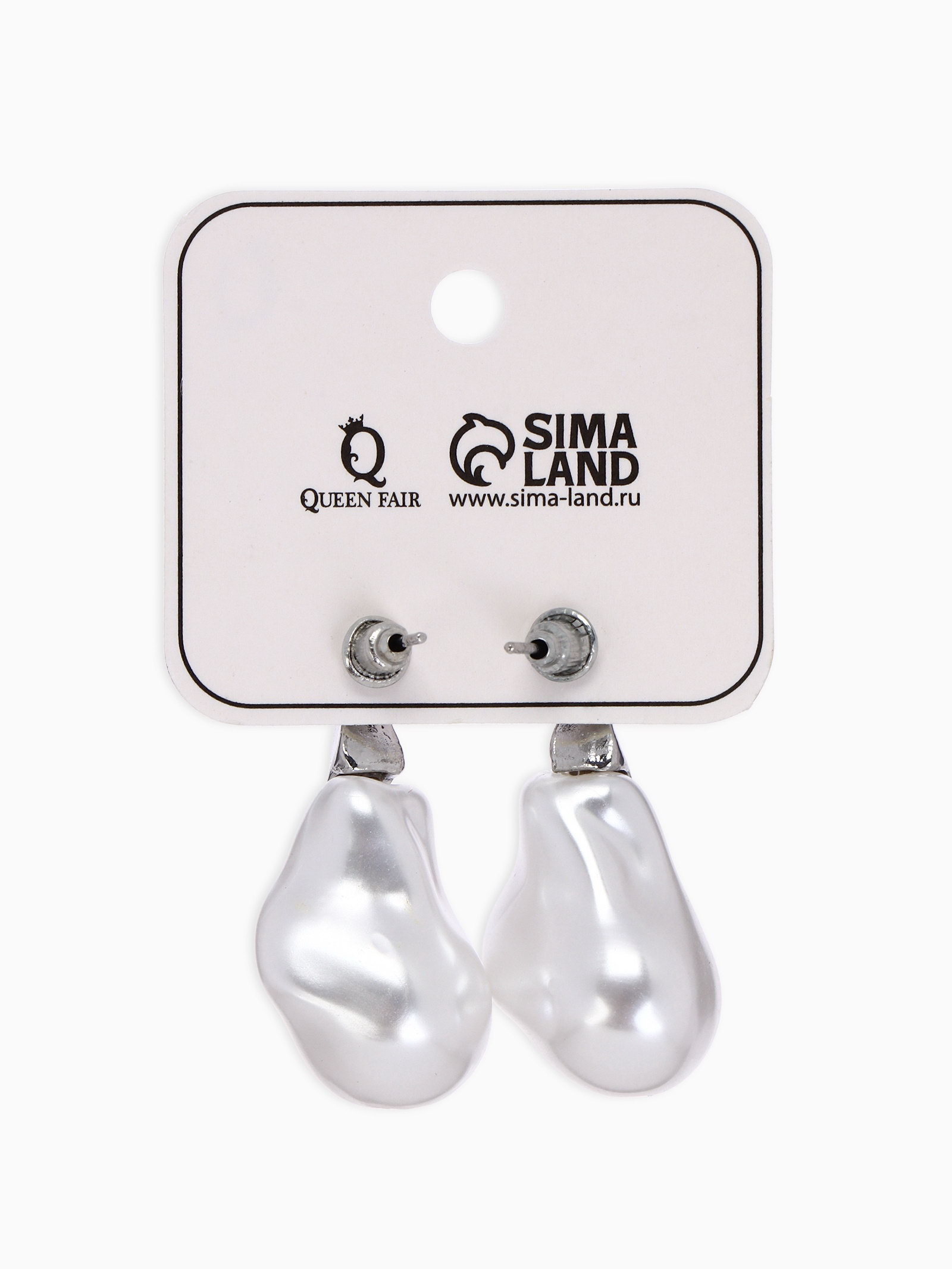 Серьги жемчуг "Капля борроко", белые в серебре, 1x2x1 см., QF, Китай