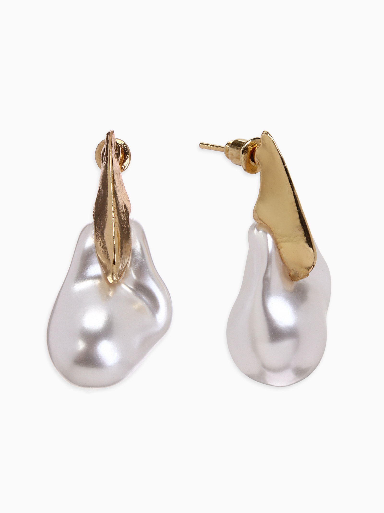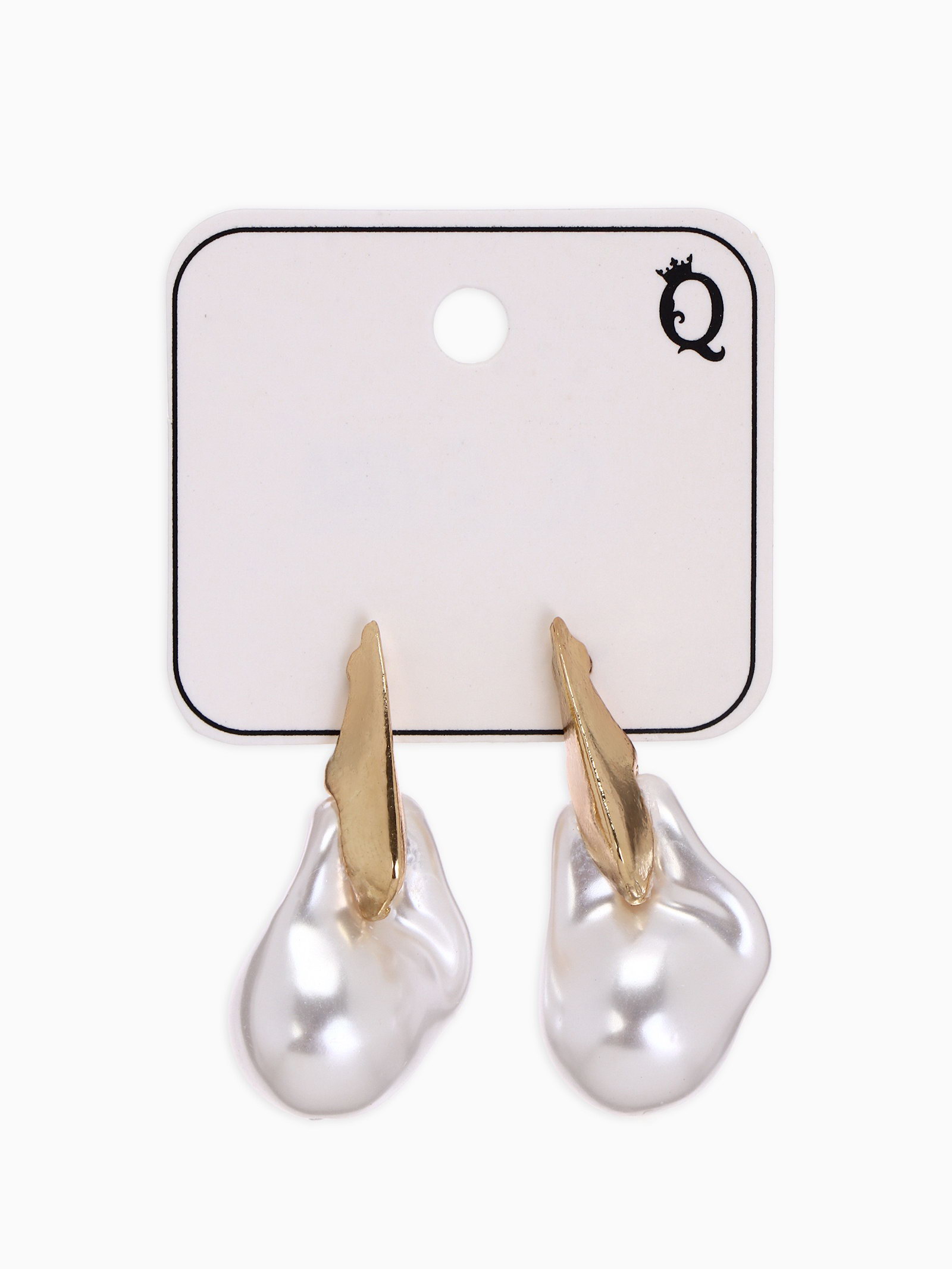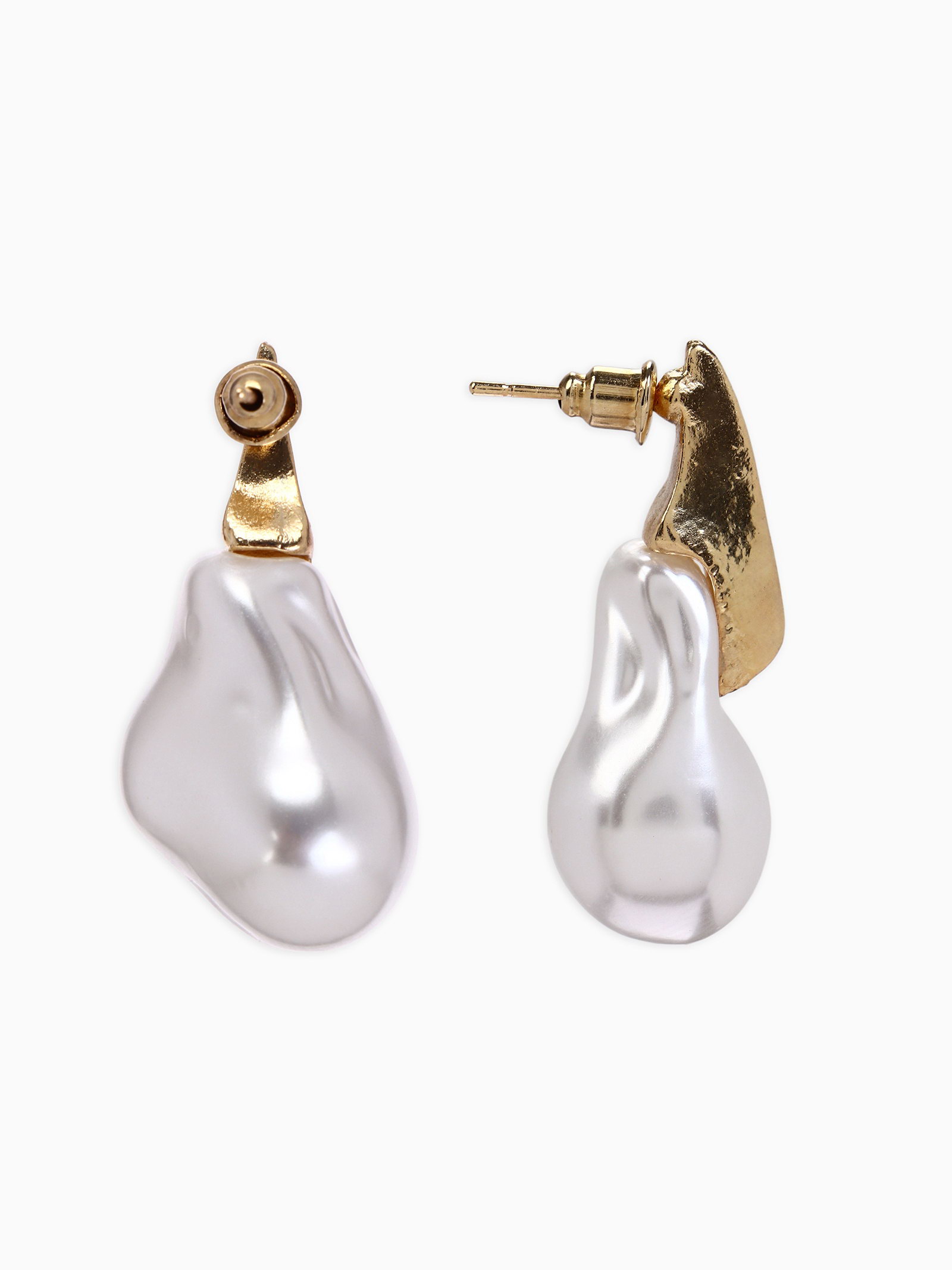 Серьги жемчуг "Капля борроко", белые в золоте, 1x2x1 см., QF, Китай