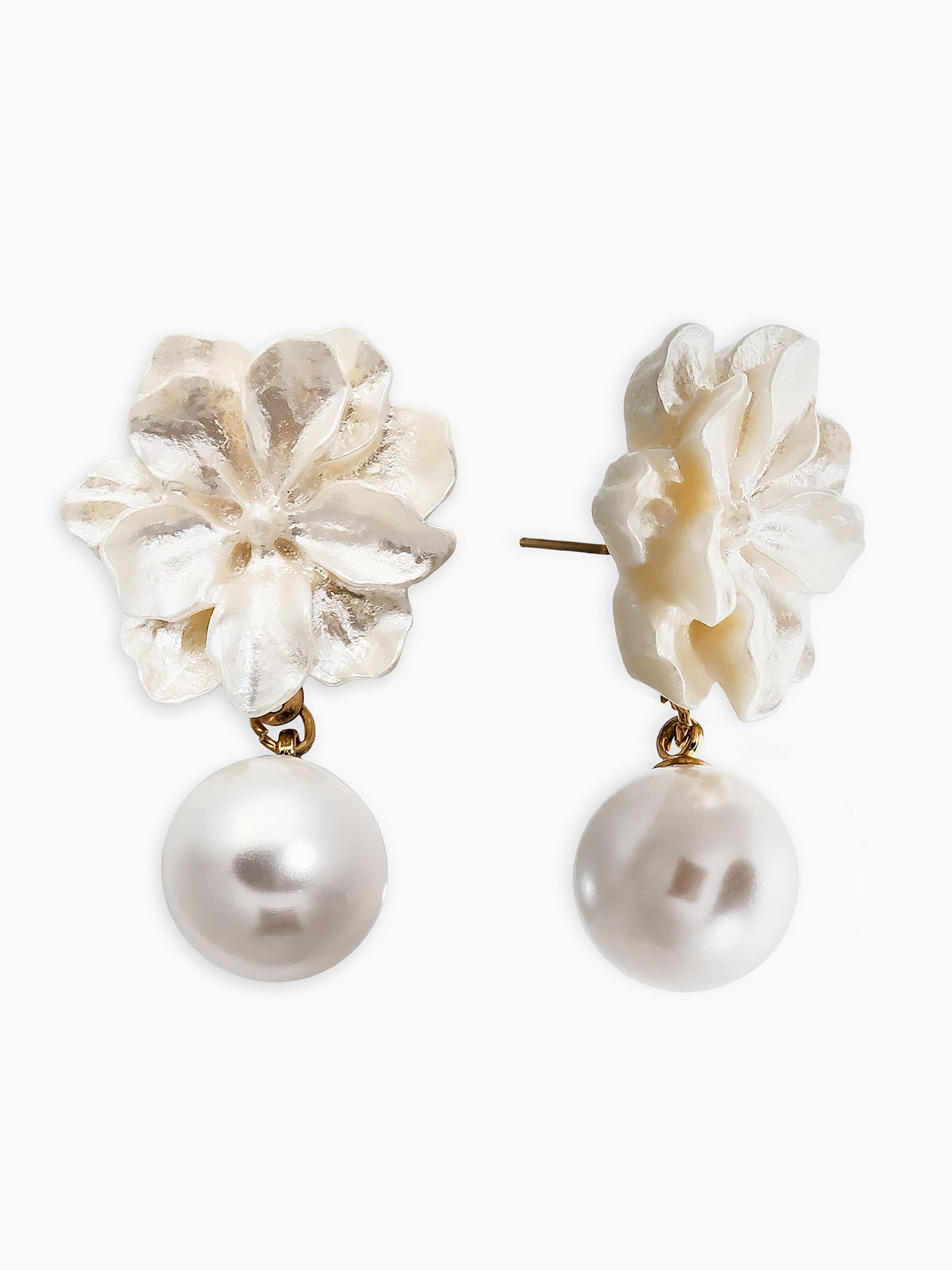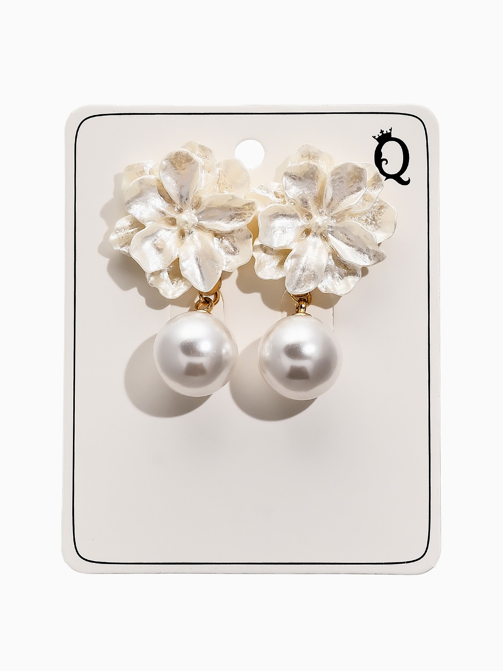 Серьги "Цветок с жемчугом", цвет молочный в золоте, 2.2x4x1.5 см., QF, Китай