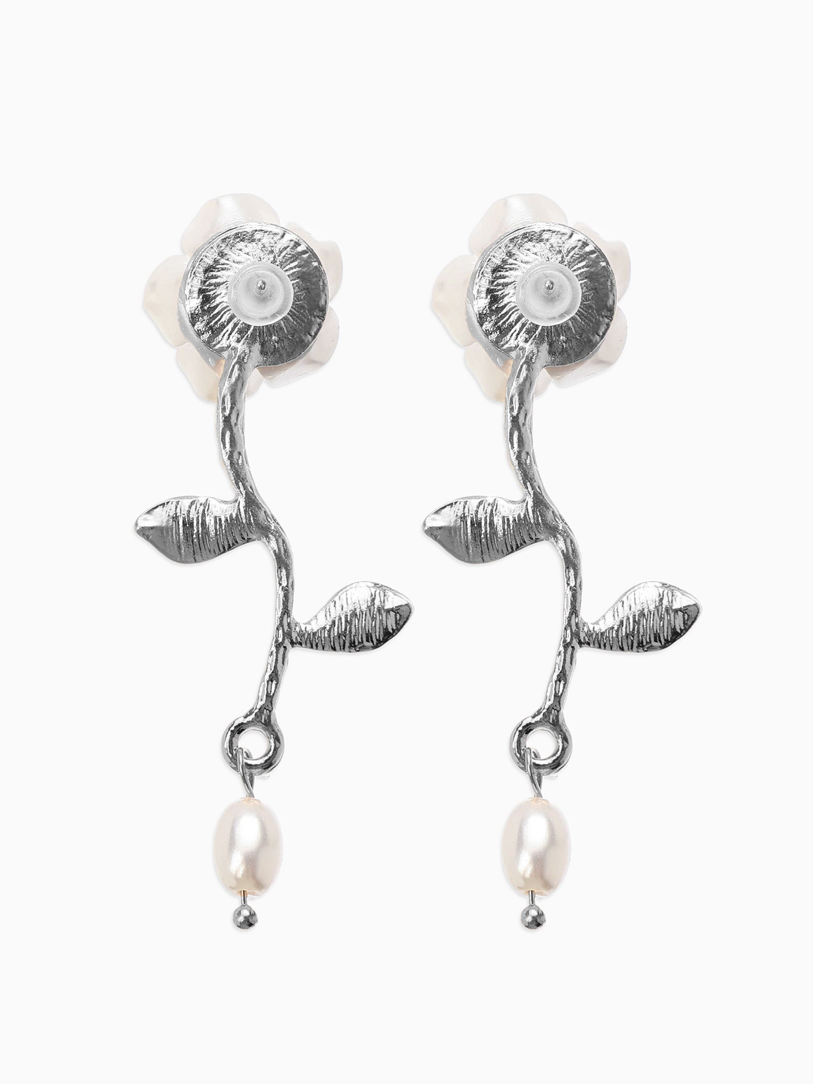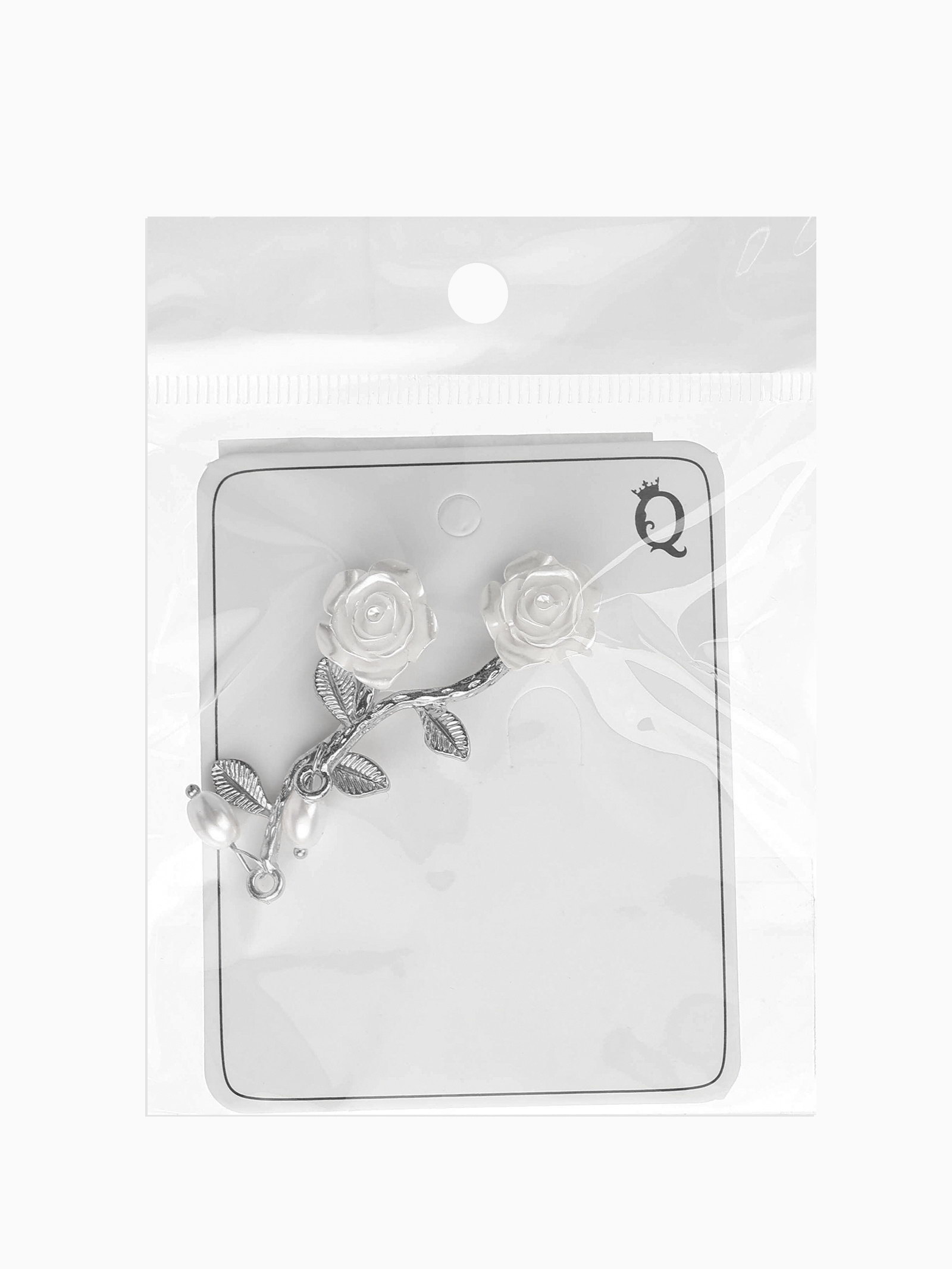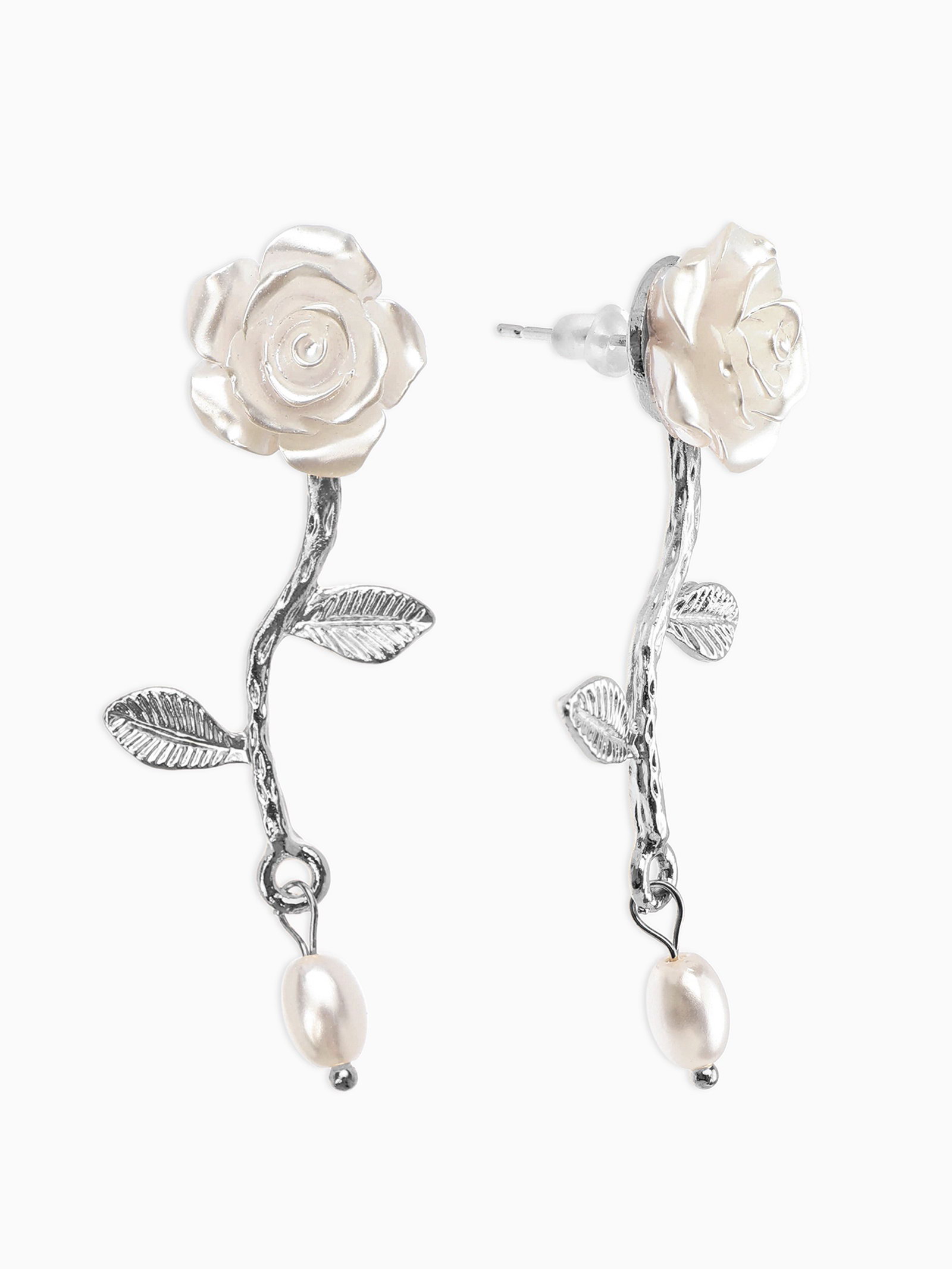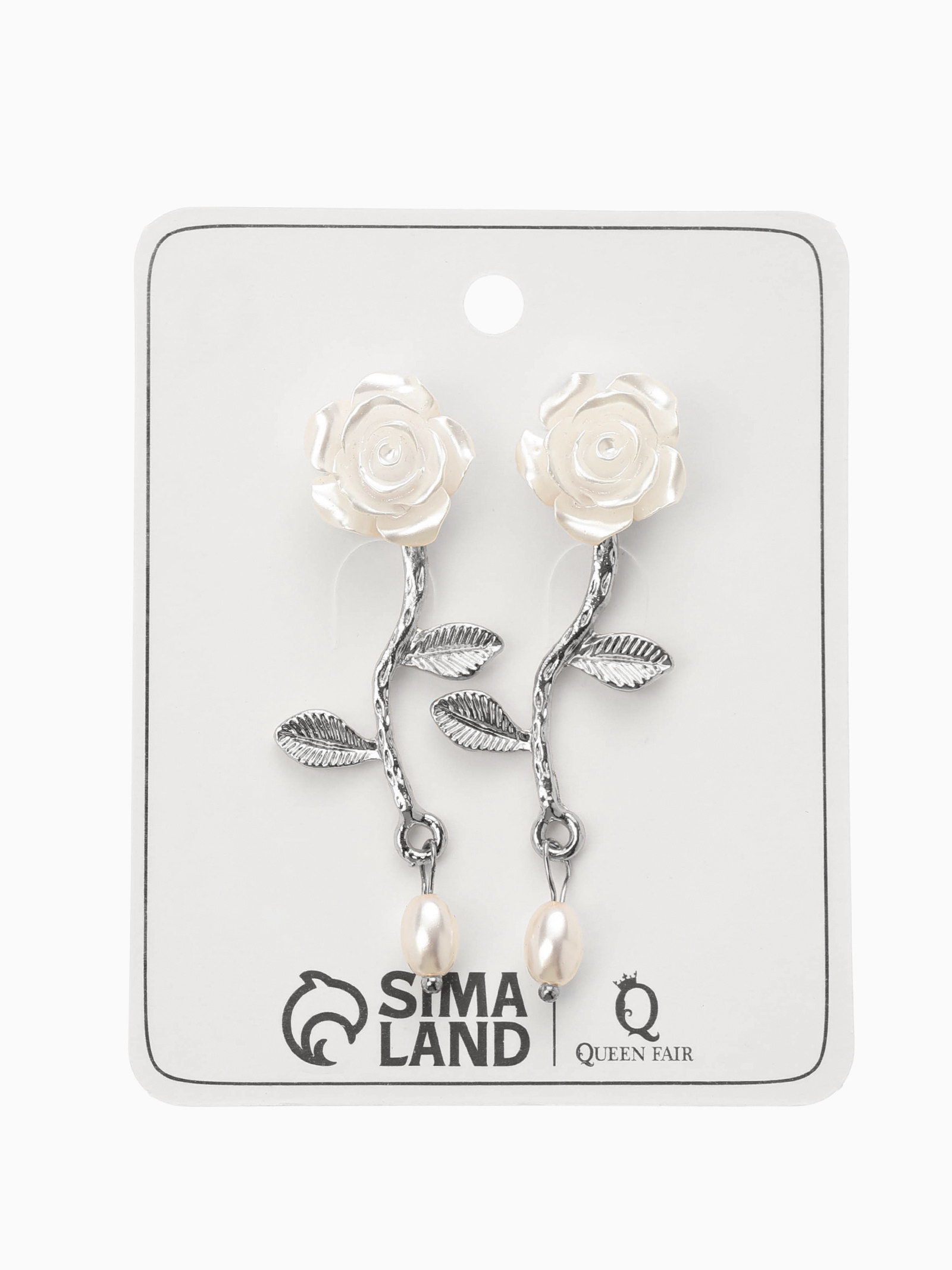Серьги "Цветок розы", белые в серебре, 1.5x5x1 см., QF, Китай