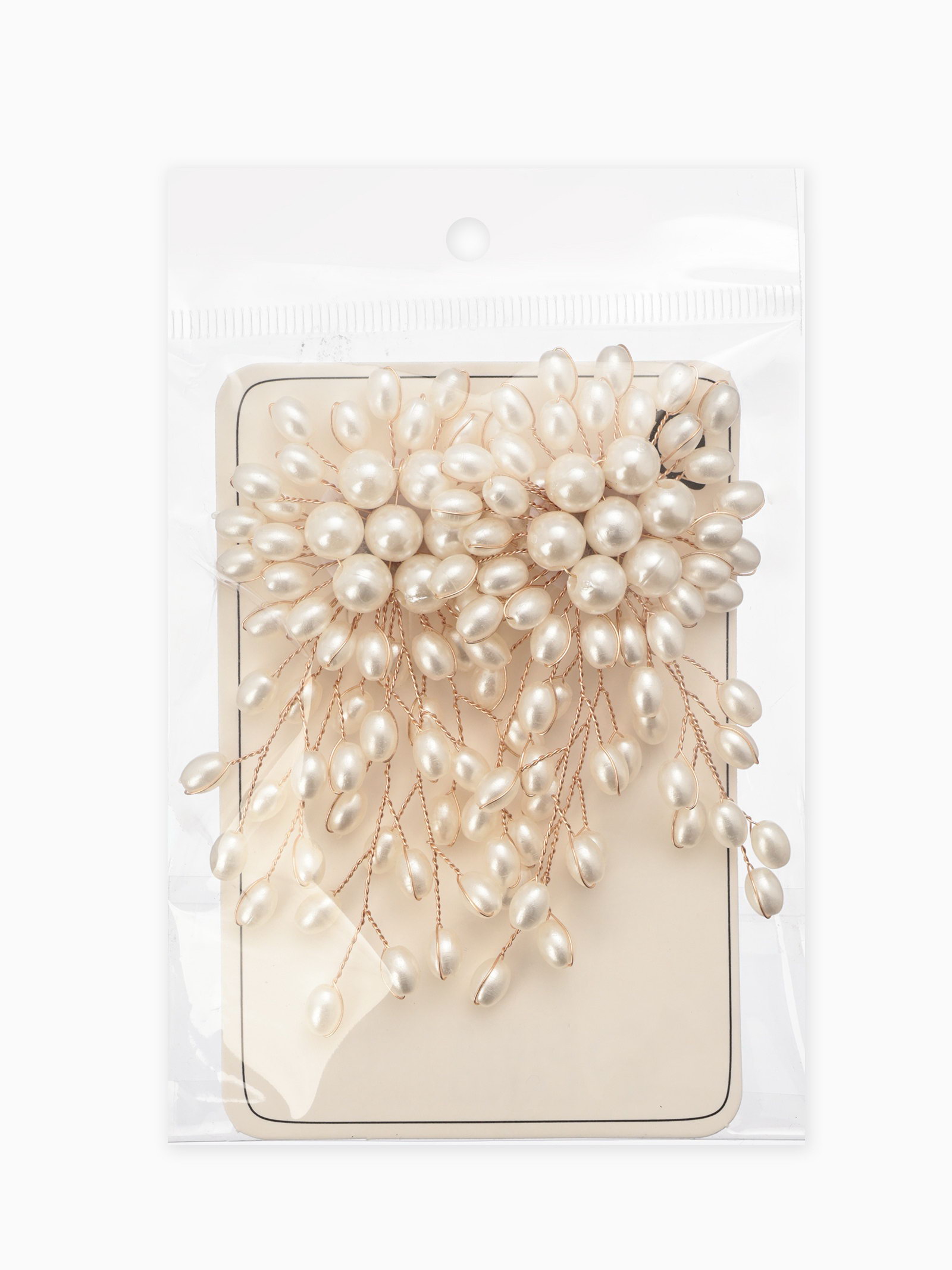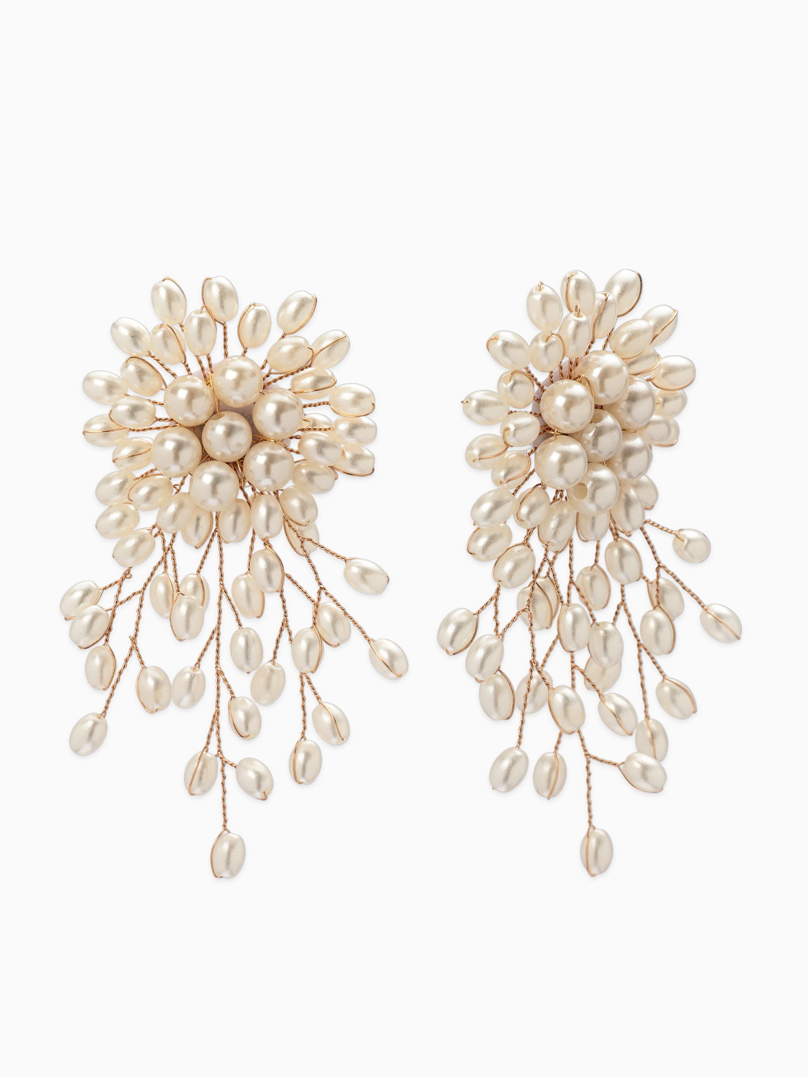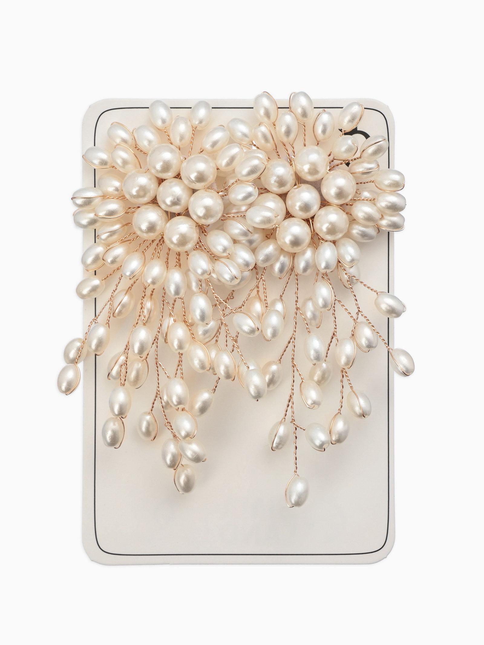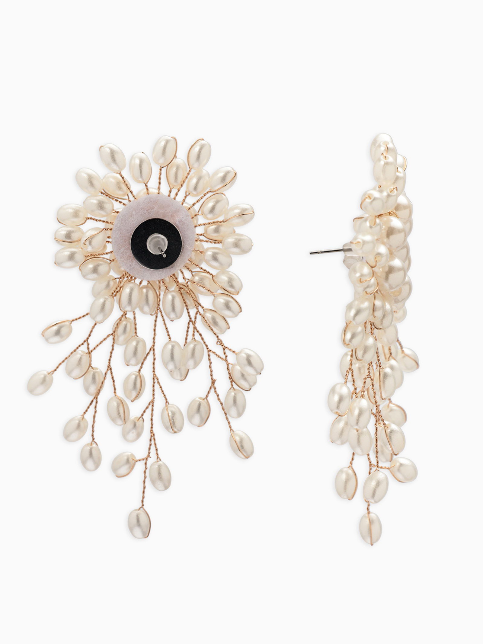 Серьги жемчуг "Россыпь в цветке", белые в золоте, 6x9x1 см., QF, Китай