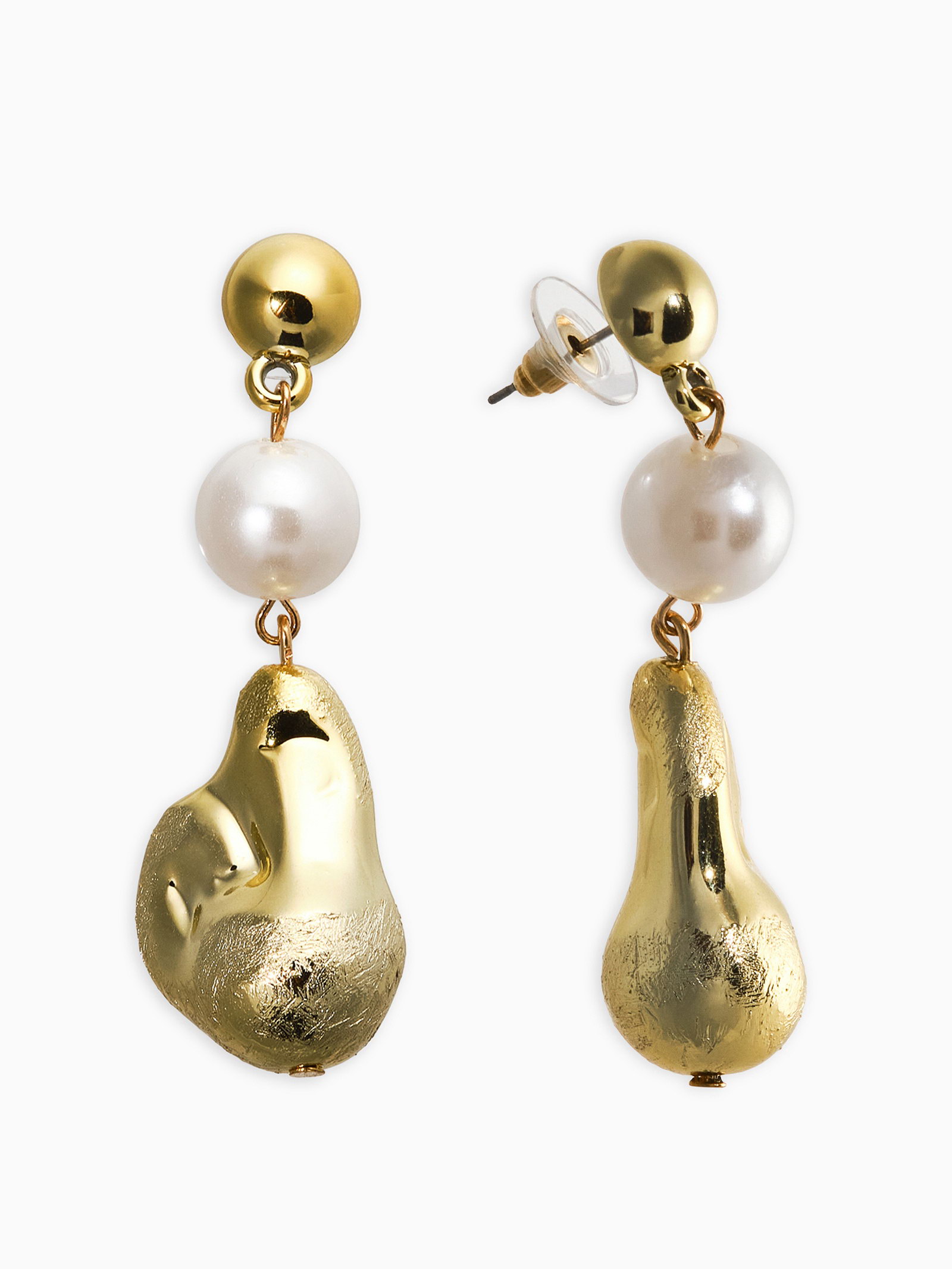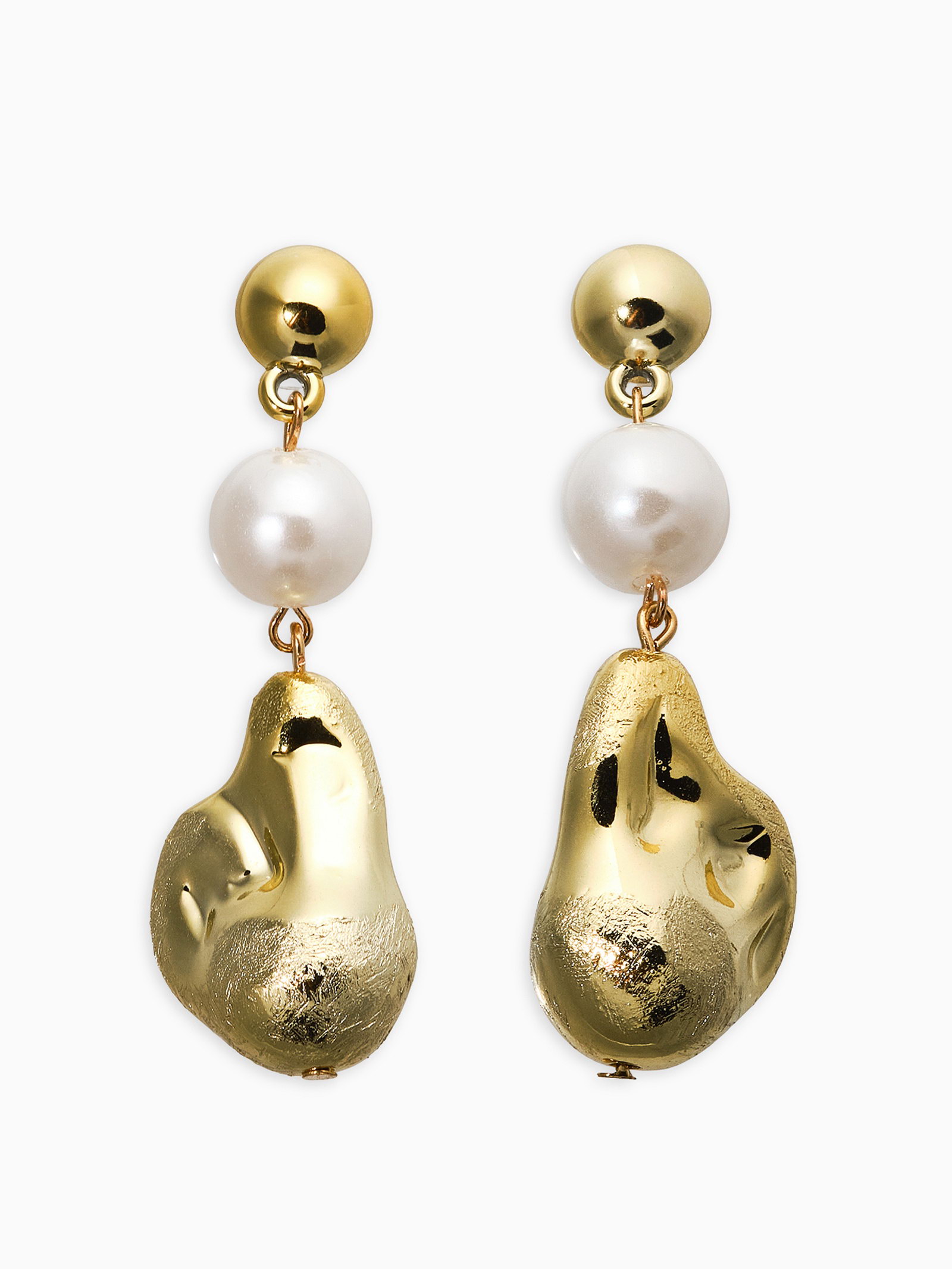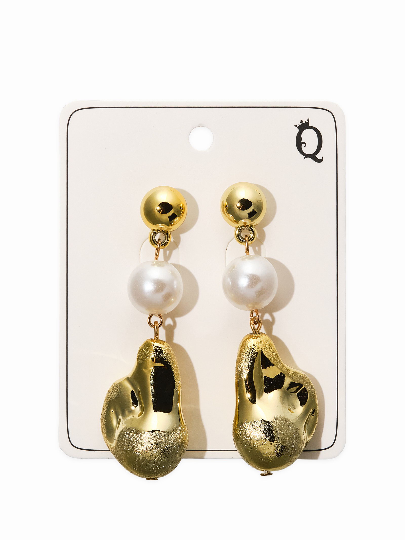 Серьги "Жемчуг барокко". белые в золоте, 2x6x1.5 см., QF, Китай