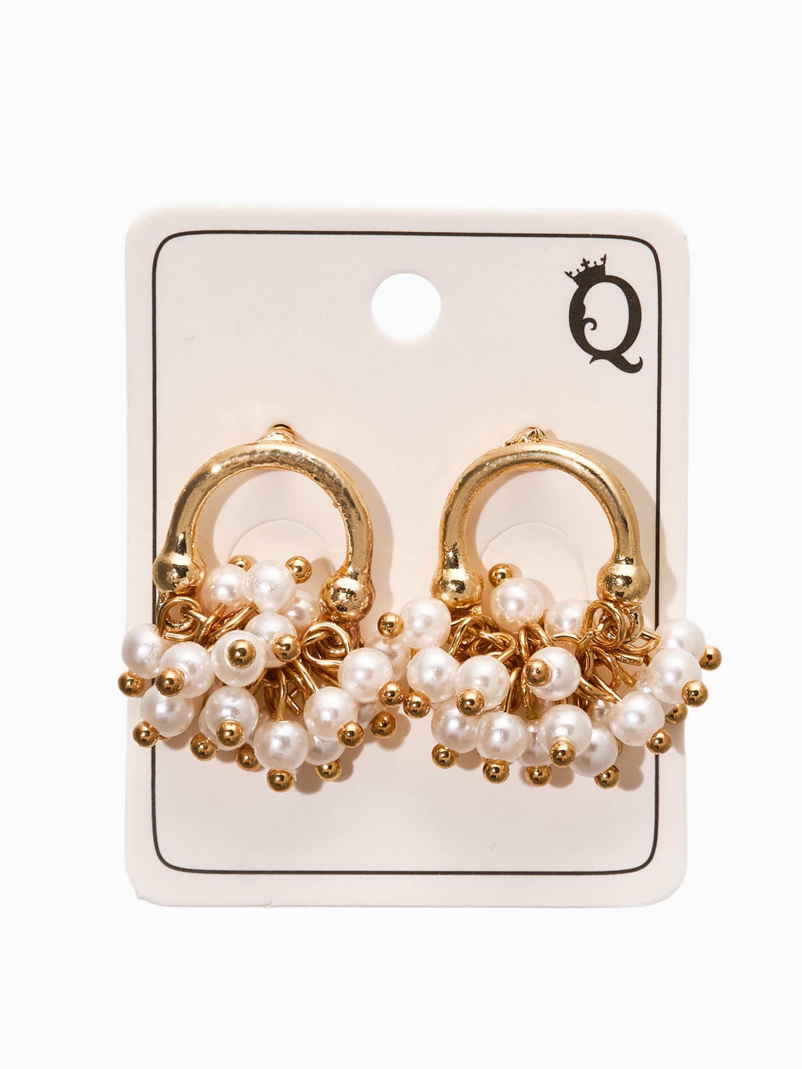 Серьги "Жемчужный виноград", белые в золоте, 3x3x1.5 см., QF, Китай