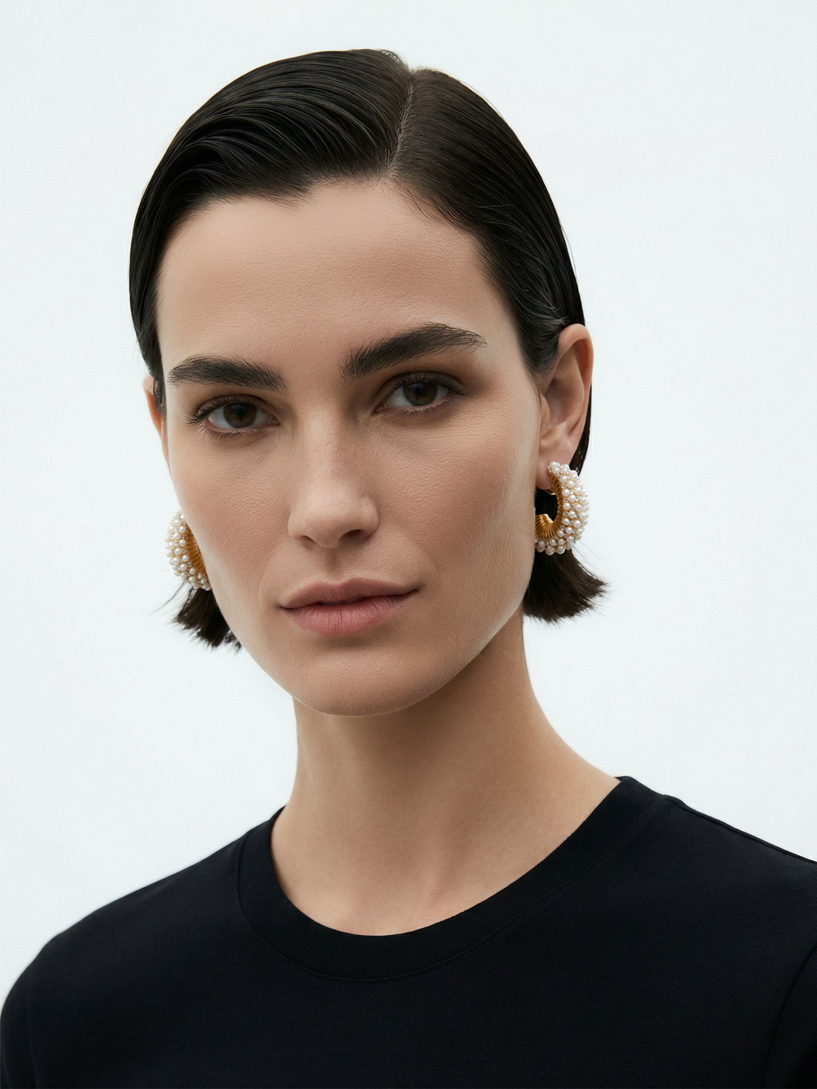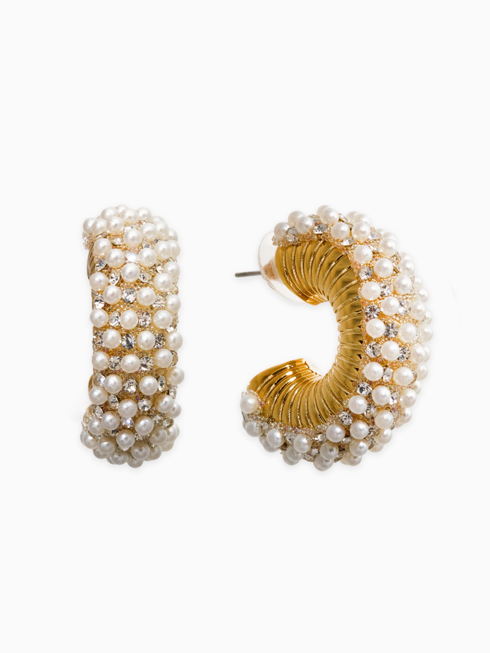 Серьги кольца "Жемчужная россыпь", белые в золоте, 3.3x3.3x1.2 см., QF, Китай