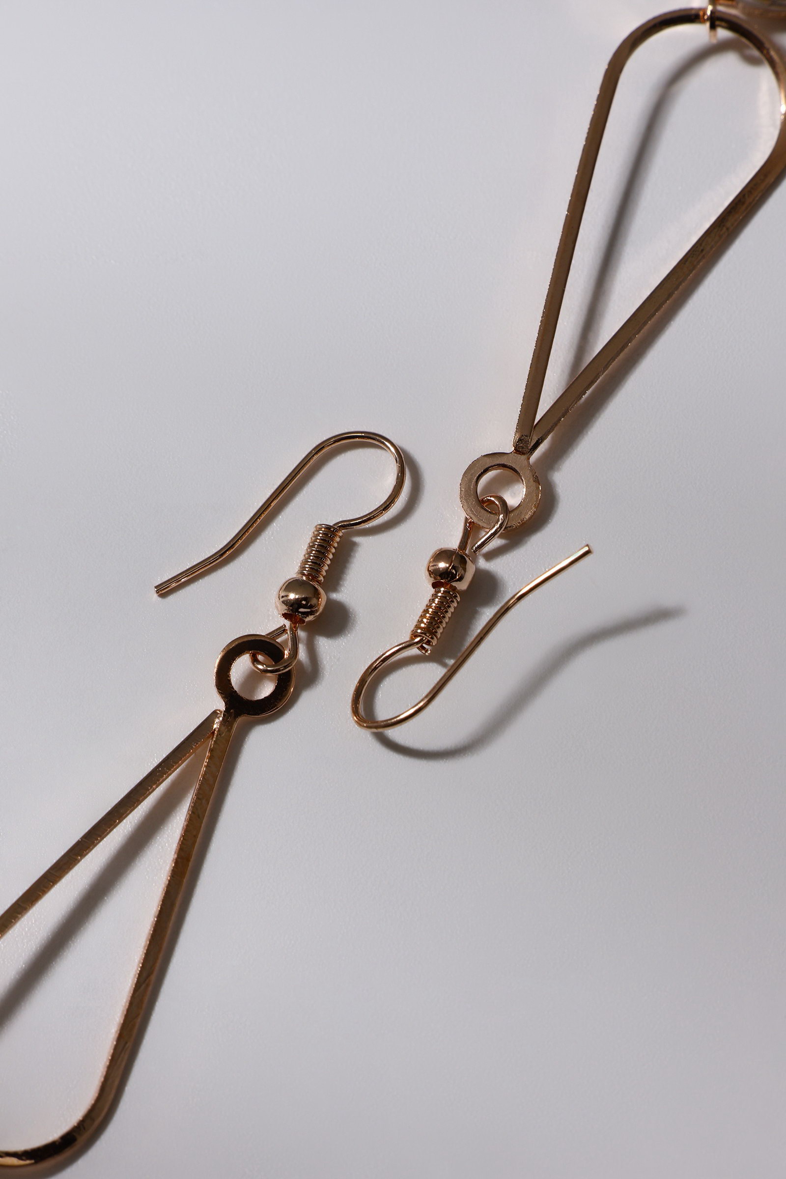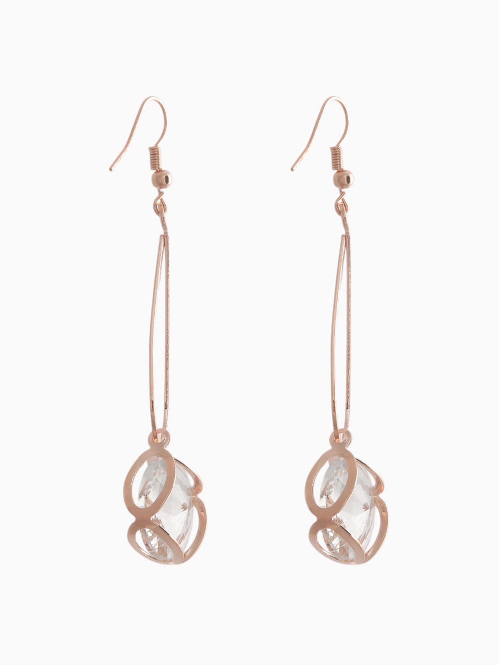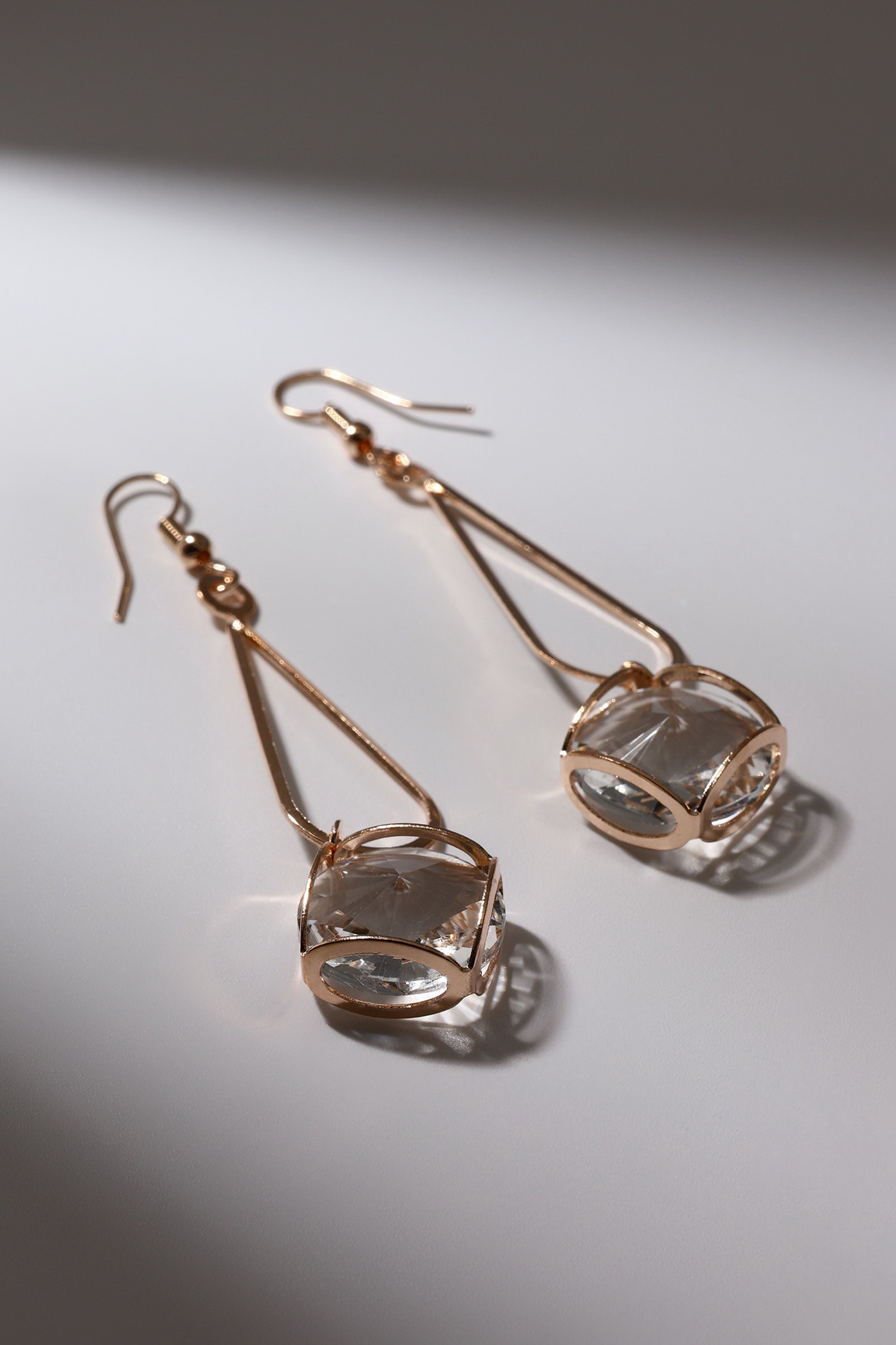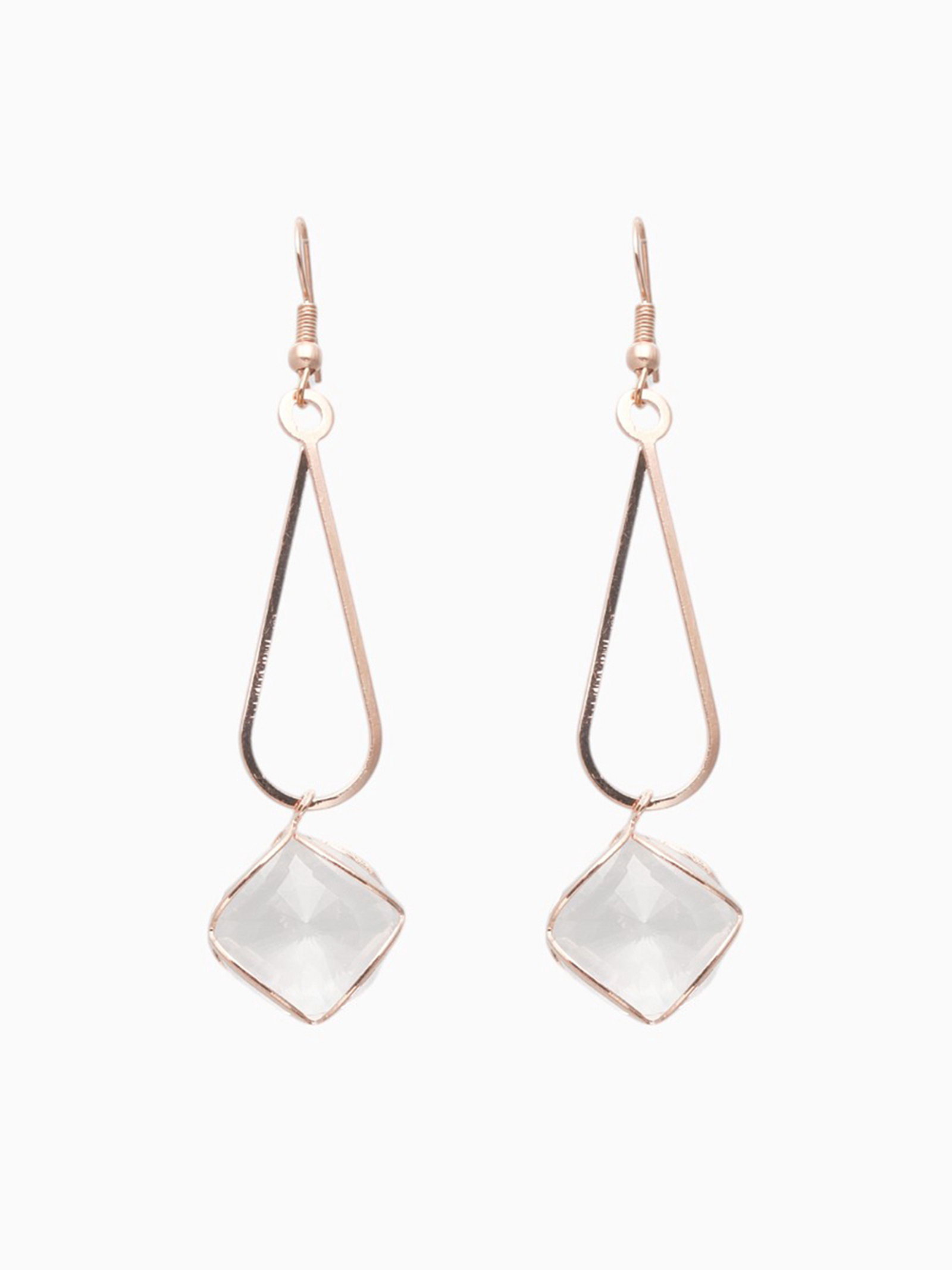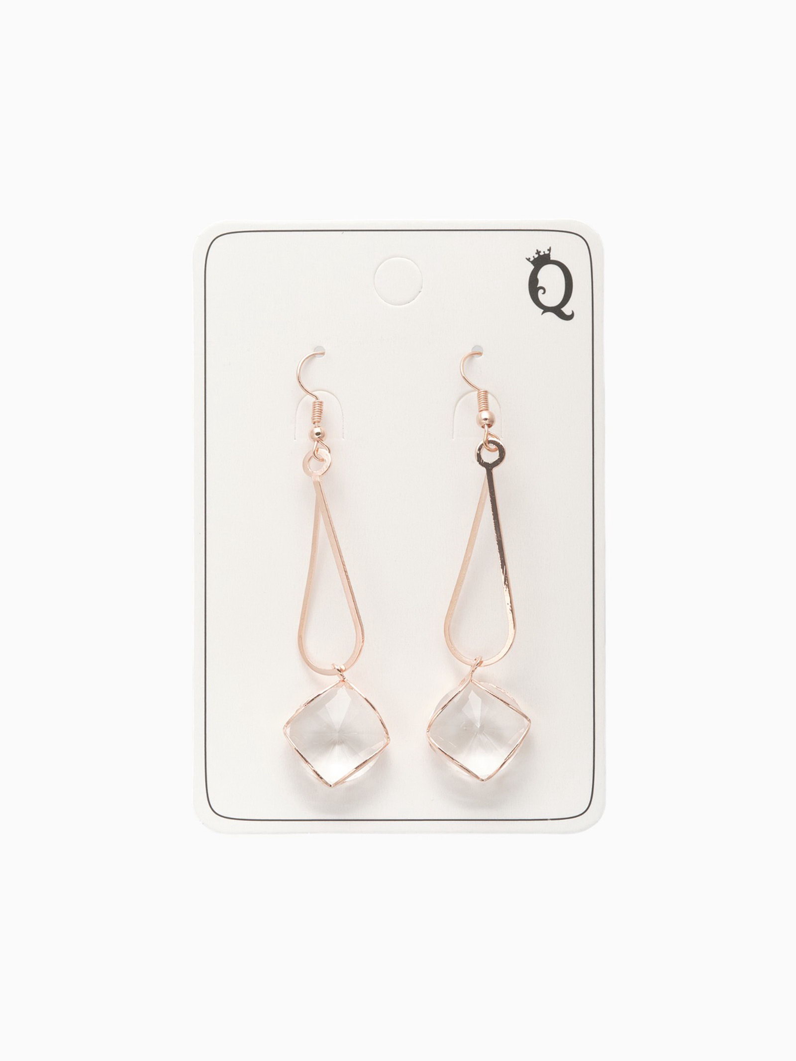 Серьги висячие со стразами "Капля с ромбом", цвет белый в розовом золоте, 7.2 см, 2x4.2x1.5 см., QF, Китай