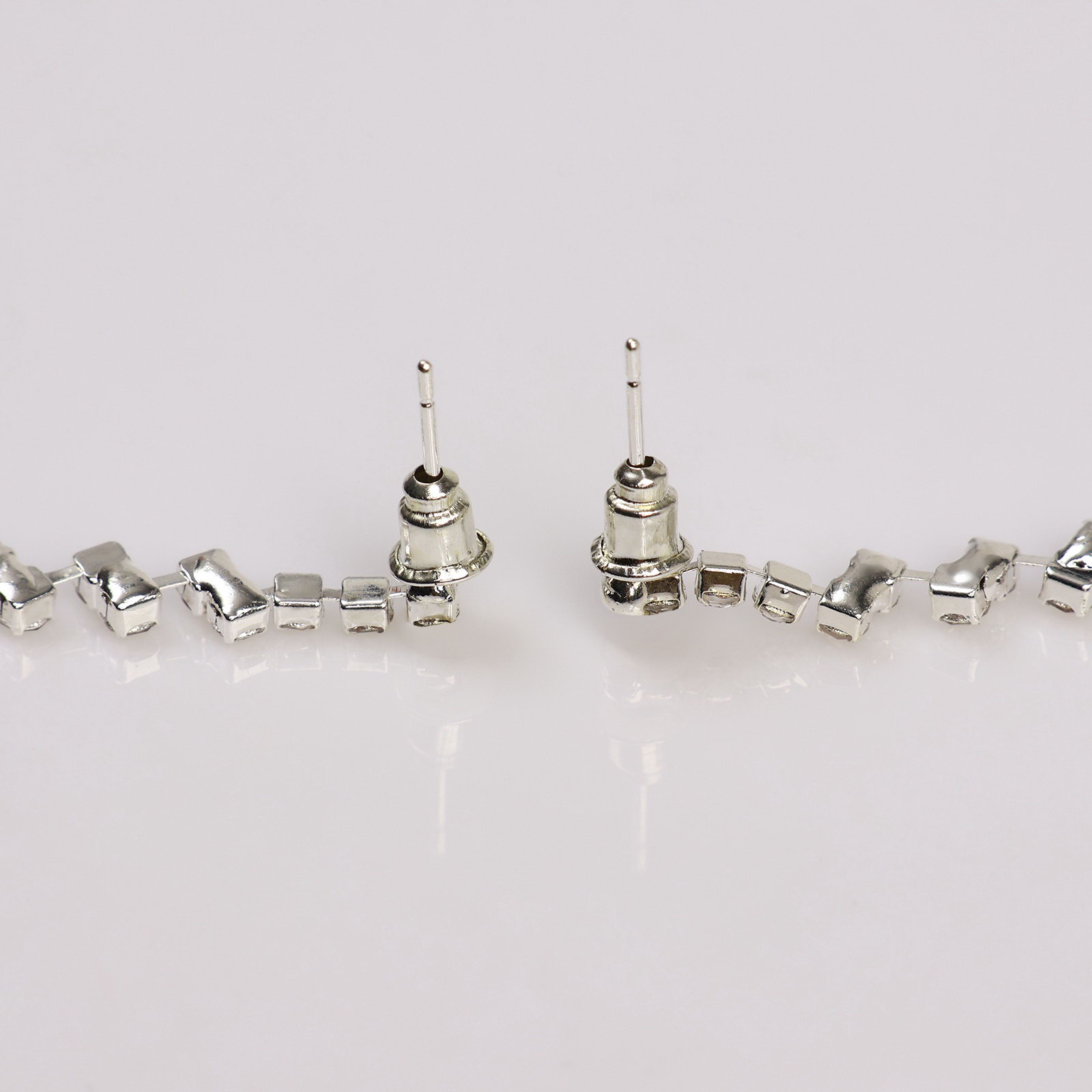 Серьги висячие со стразами Princess дорожка утончённая, белые в серебре,8 см, 0.7x8x0.5 см., QF, Китай