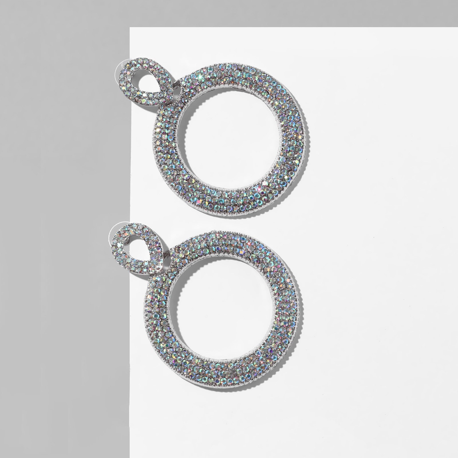 Серьги висячие со стразами "Эдем" кольцо, радужный в серебре, 6.5 см, 5.8x6.5x1 см., QF, Китай