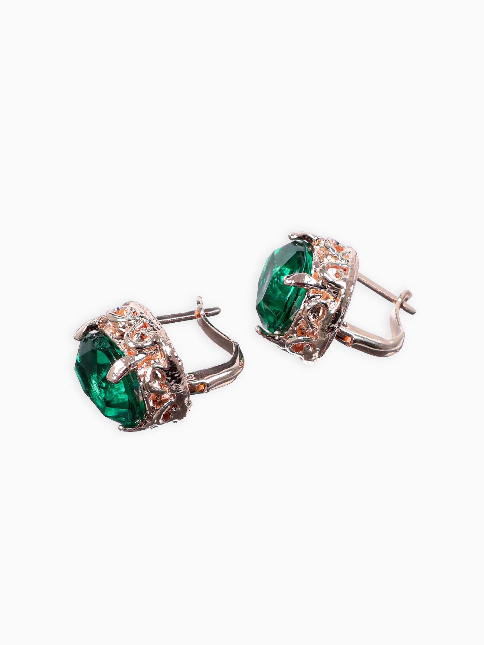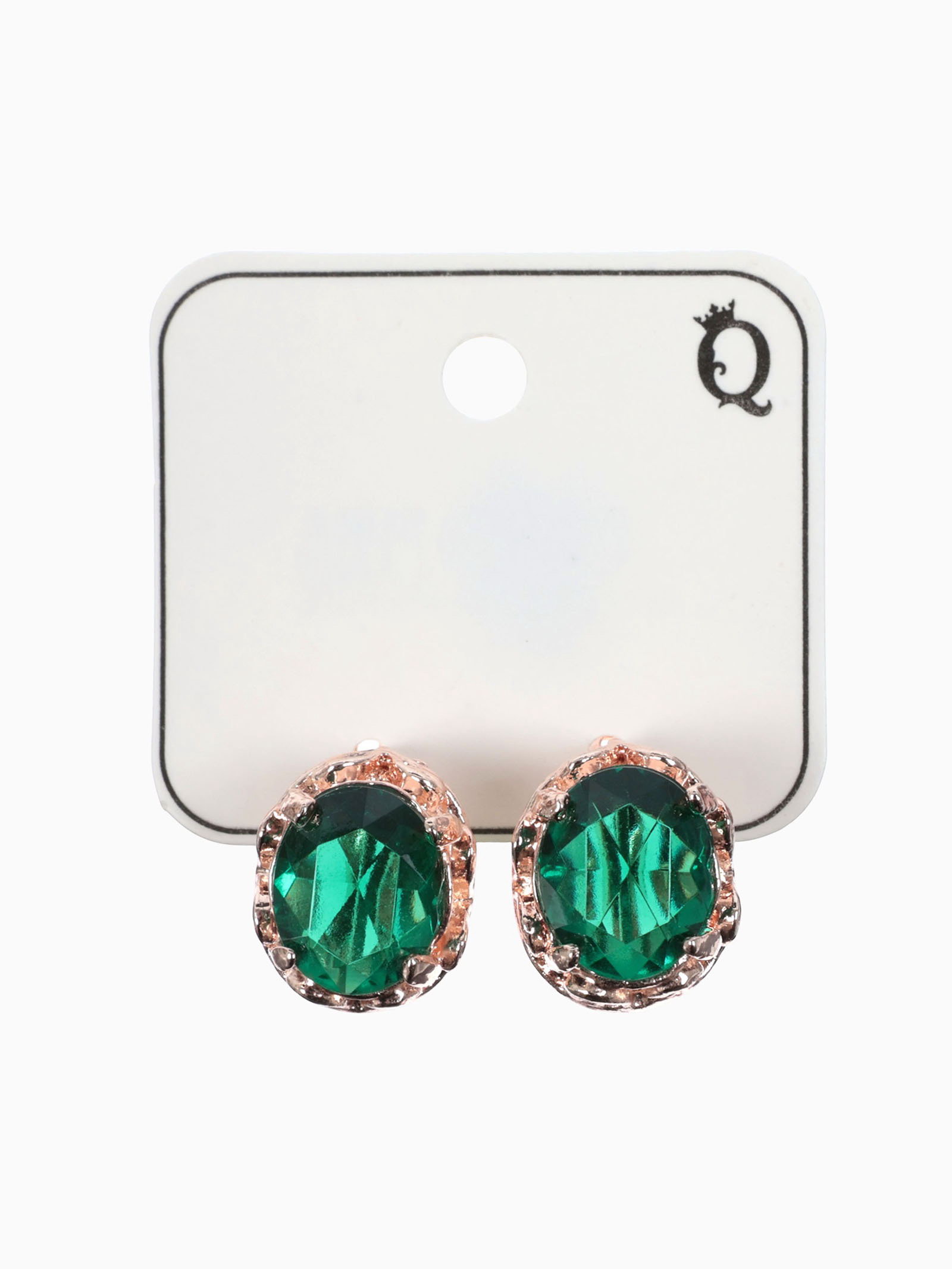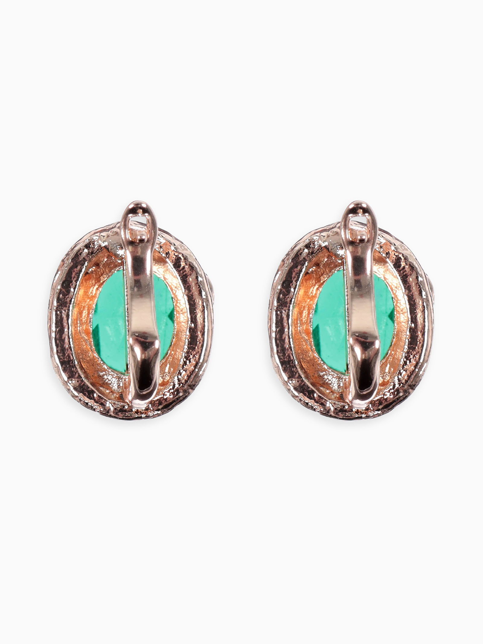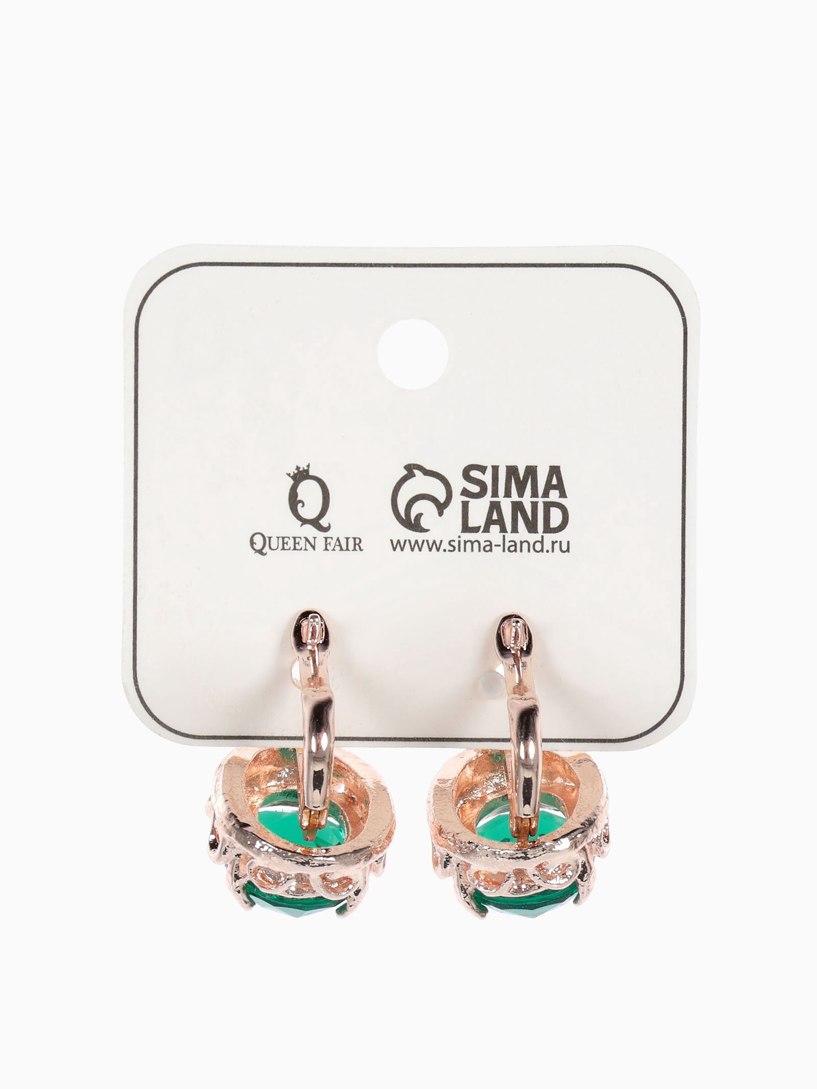 Серьги со стразами "Эдель" овал классика, цвет изумрудный в розовом золоте, 1x1.7x1 см., QF, Китай