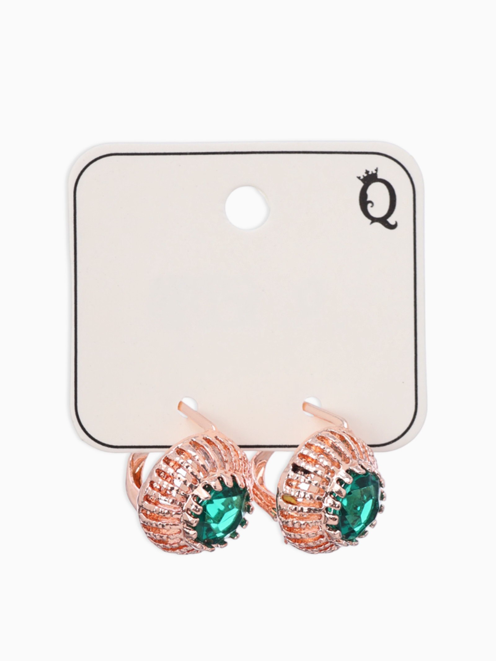 Серьги со стразами "Эдель" круг, цвет изумрудный в розовом золоте, 1x1.7x1 см., QF, Китай
