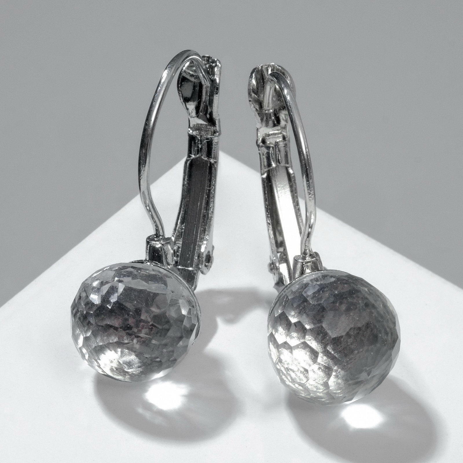 Серьги со стразами "Радужный день" шарик гранёный, миксы, 1x2.5x1.2 см., QF, КИТАЙ