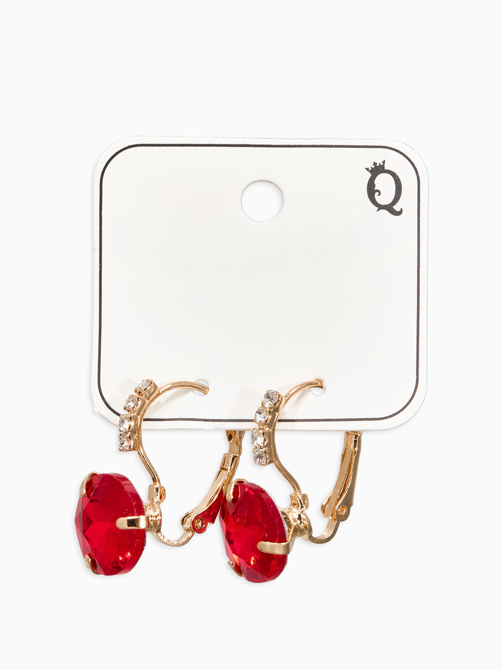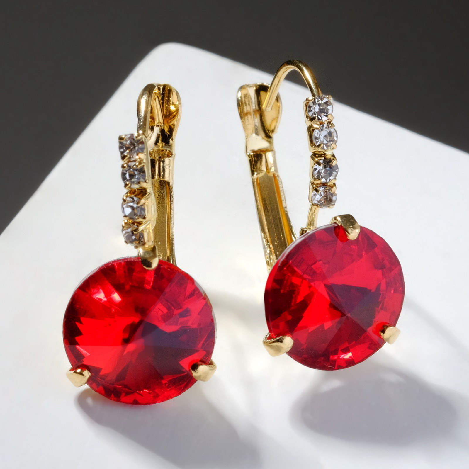 Серьги со стразами "Кристалл" яркий, цвет бело-красный в золоте, 1x2.2x1 см., QF, Китай