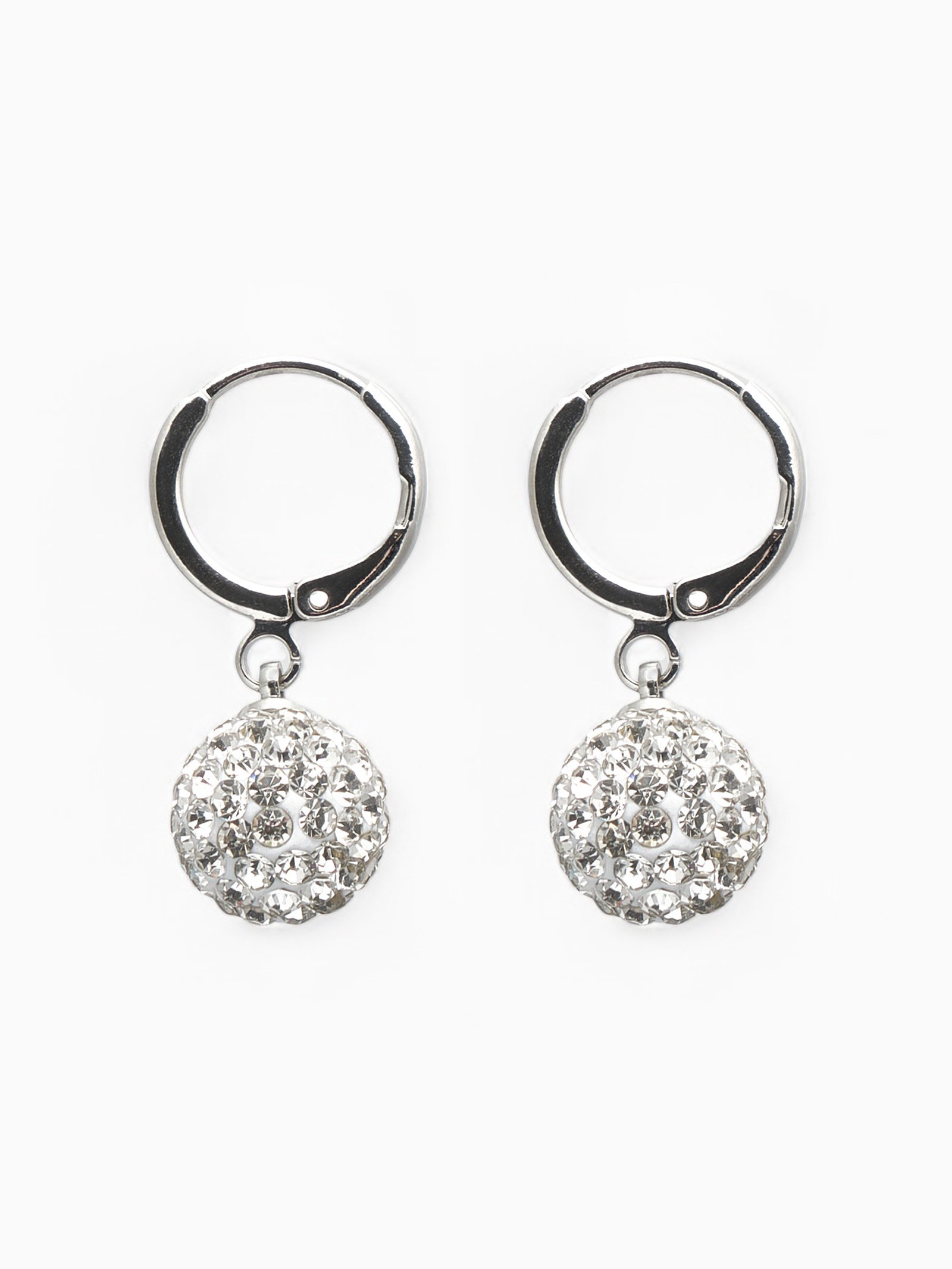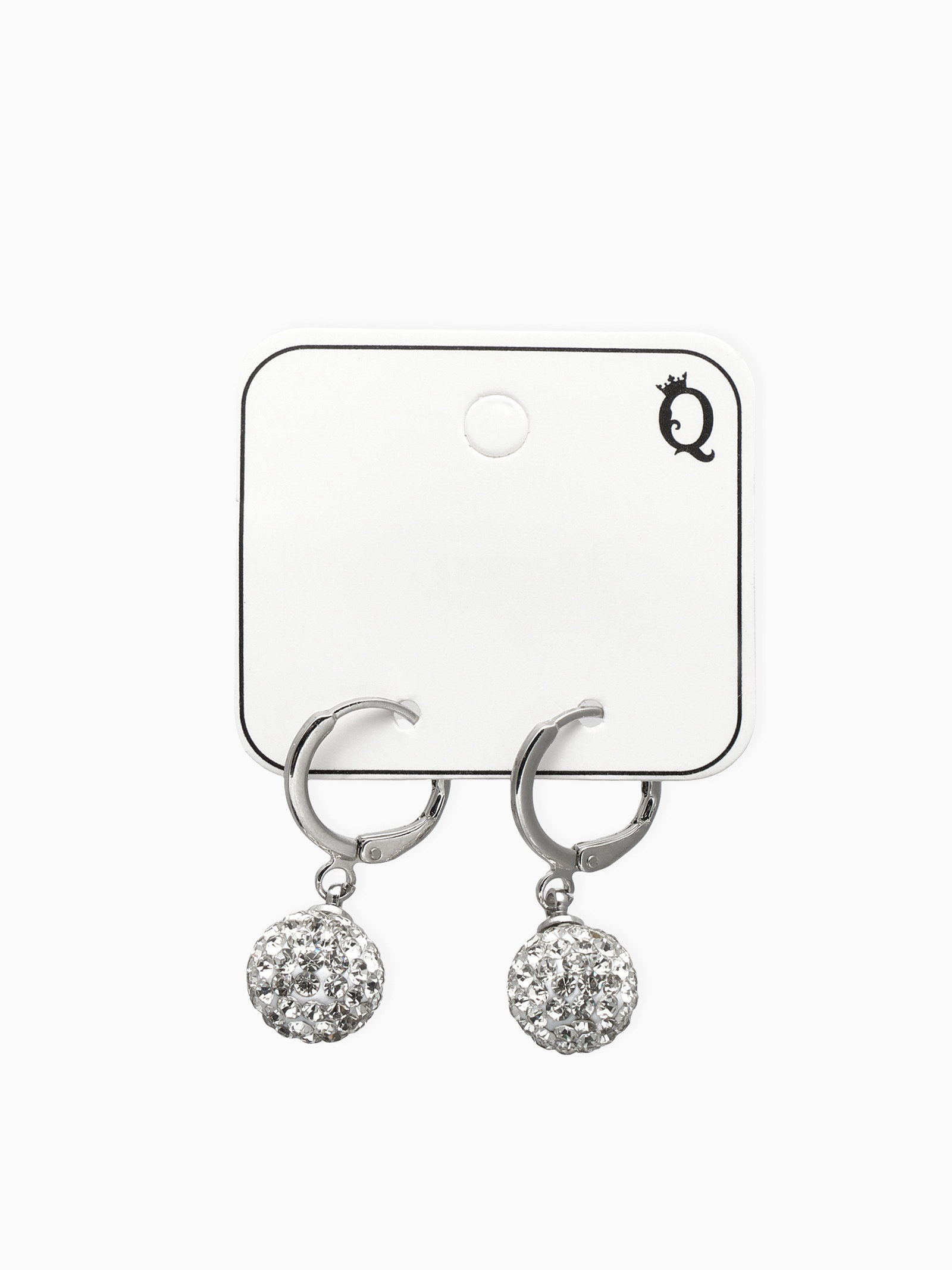Серьги со стразами "Шамбала" сияние, белые в серебре, 1x3x1 см., QF, Китай