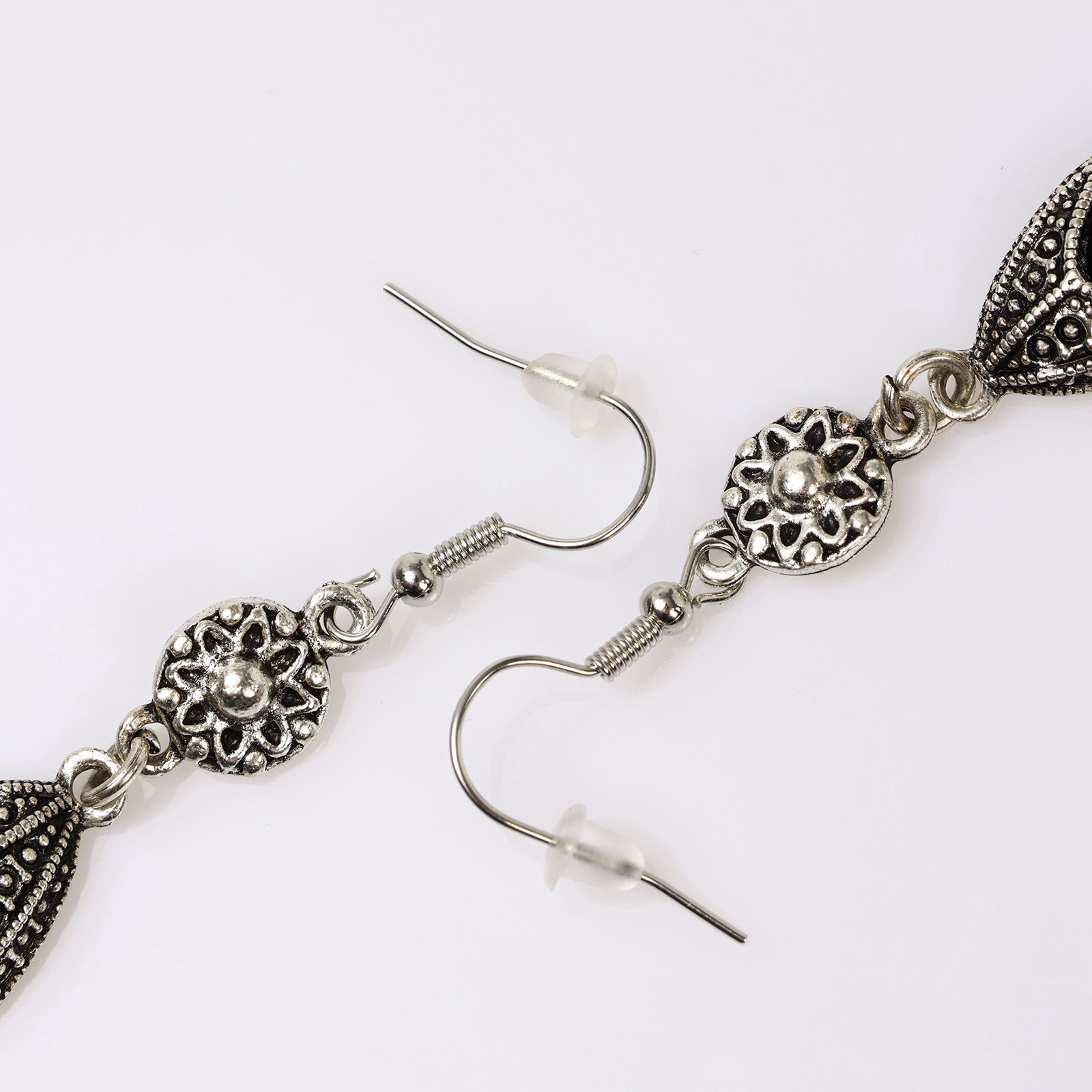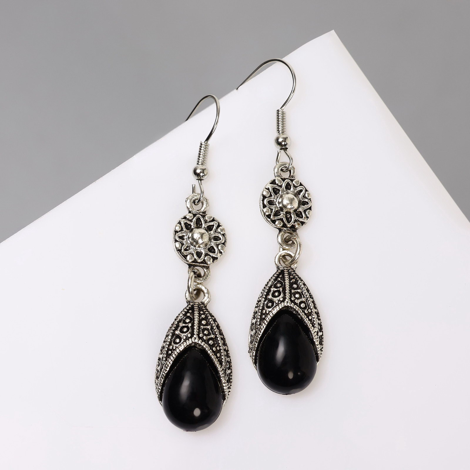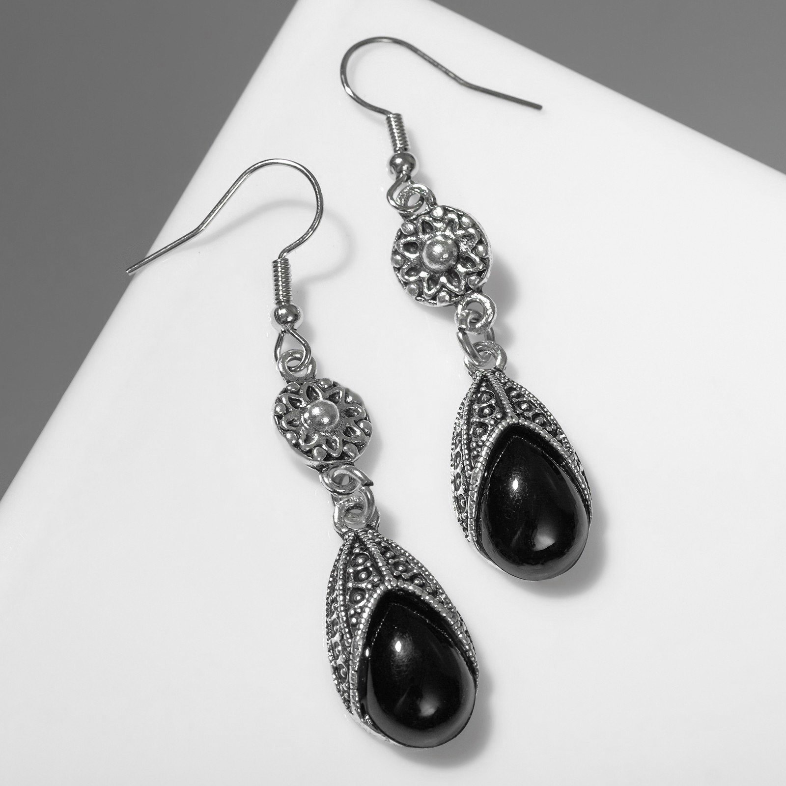 Серьги со стразами "Капля" изящность, чёрные в чернёном серебре, 1.4x1.5x0.5 см., QF, Китай
