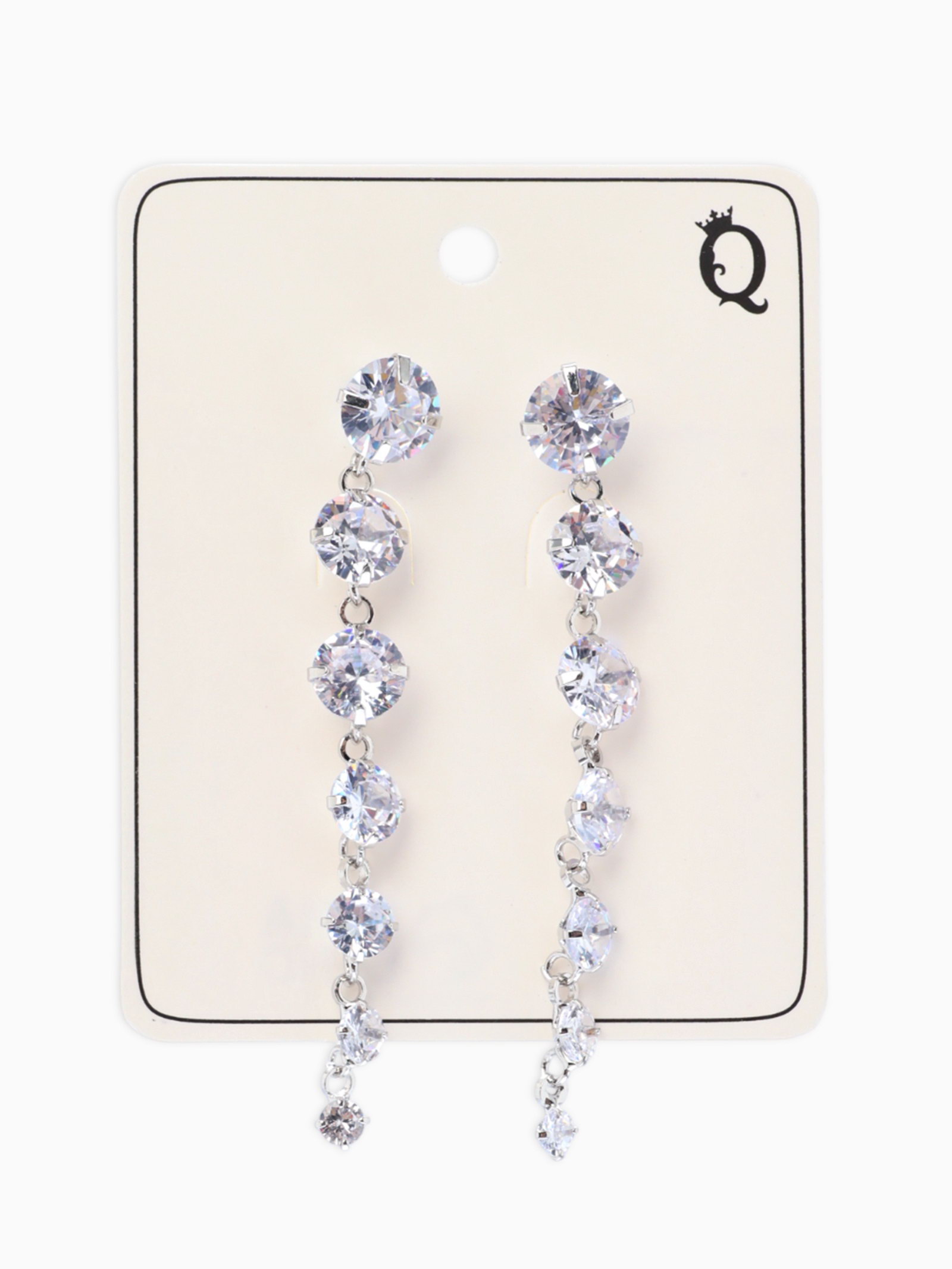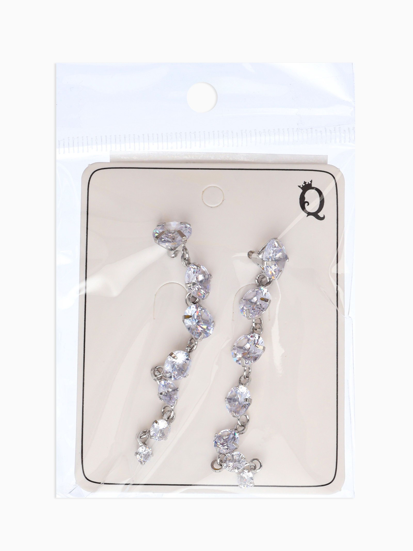 Серьги висячие со стразами "Змейка" L= 7.6 см, цвет белый в серебре, 1.5x6.5x1 см., QF, Китай