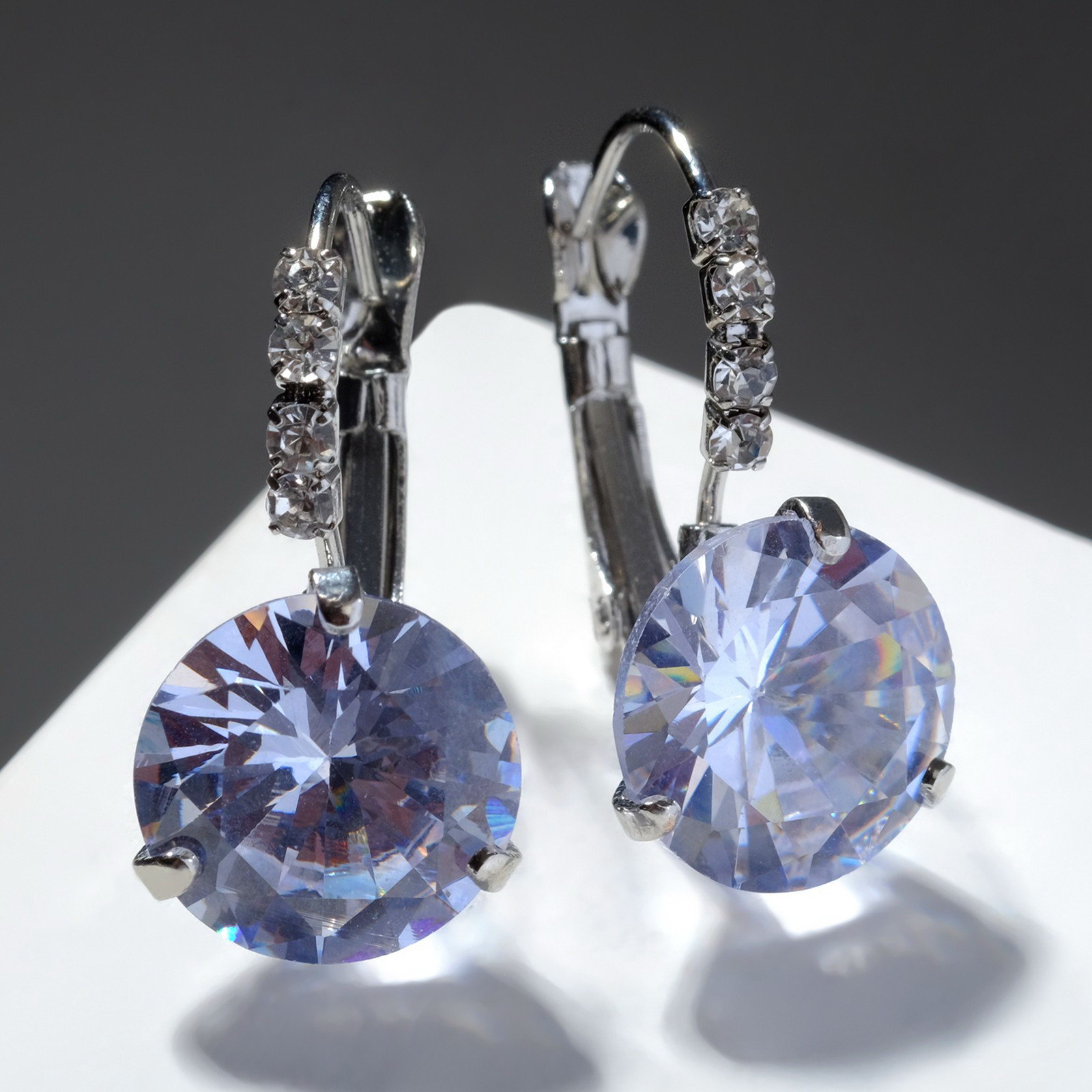 Серьги со стразами "Циркония" love you, голубые в серебре, 1x2.7x1 см., QF, Китай