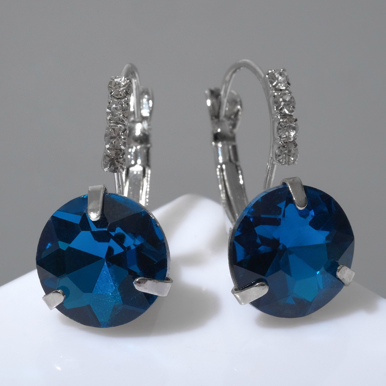 Серьги со стразами "Подари нежность" кристалл, синие в серебре, 1.3x2.2x1 см., QF, Китай