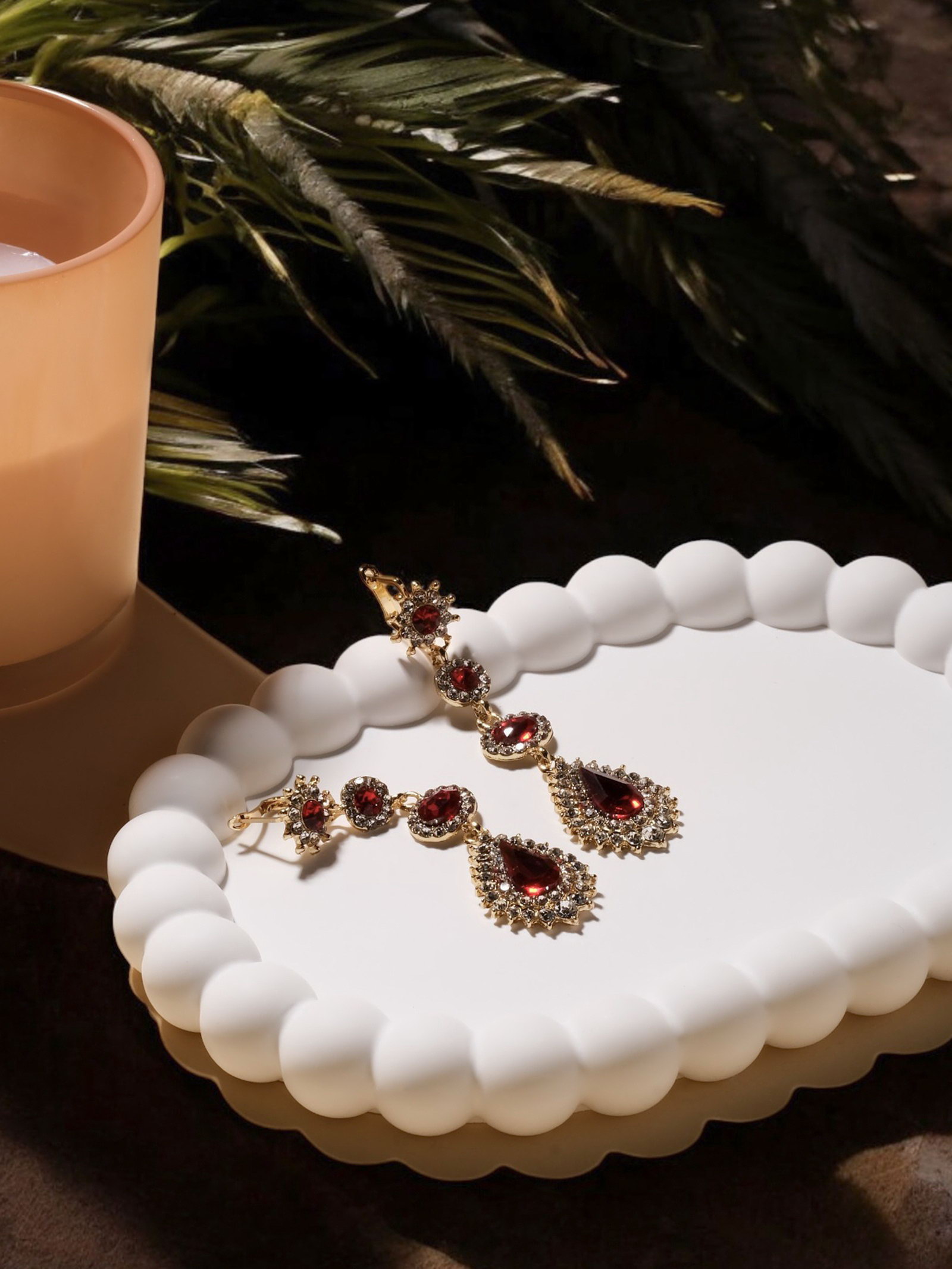 Серьги висячие со стразами "Вечерние" мадам, цвет бело-красный в золоте, 7 см, 2x7x1 см., QF, Китай