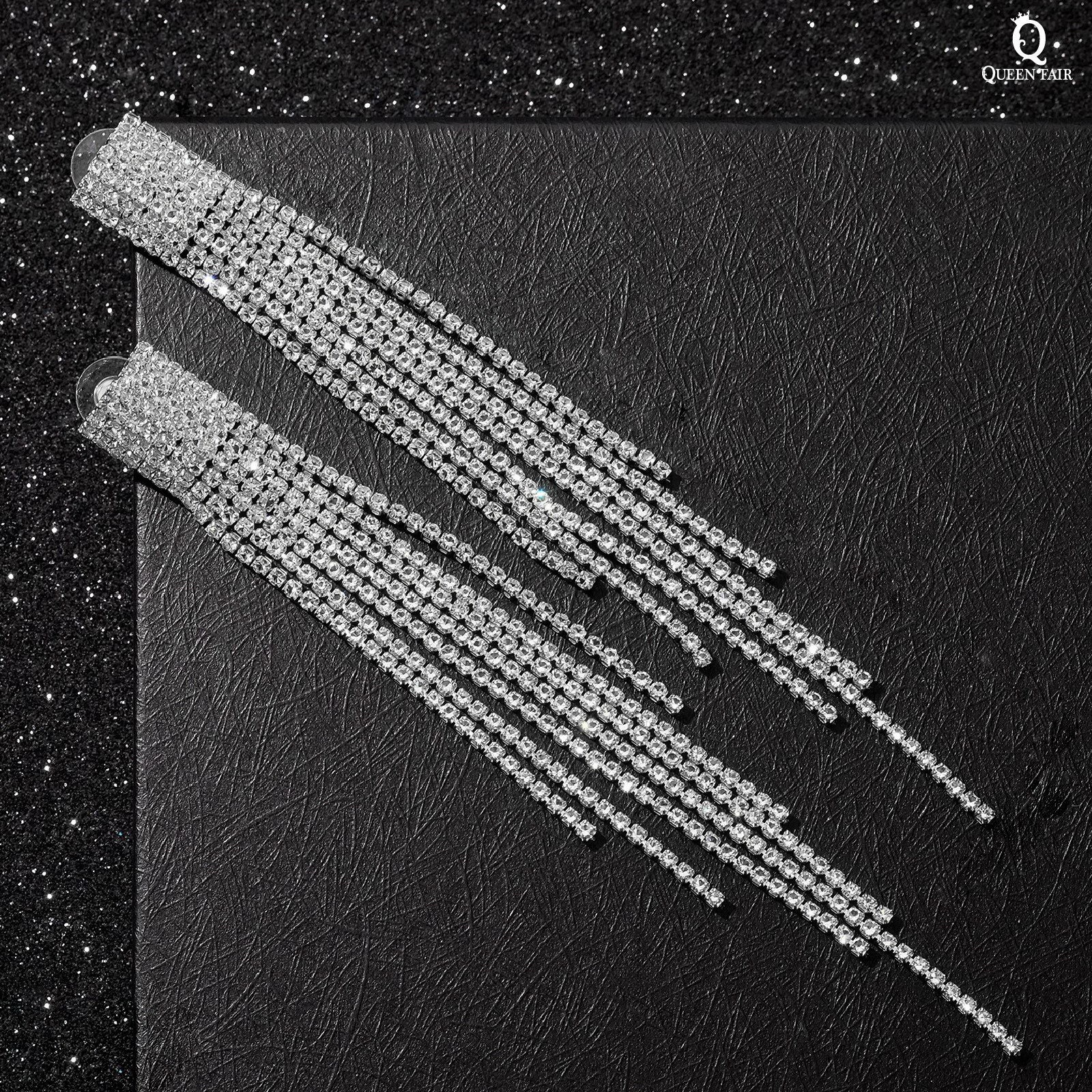 Серьги висячие со стразами "Водопад" мини квадрат, цвет белый в серебре, 14 см, 1.5x14x1 см., QF, Китай