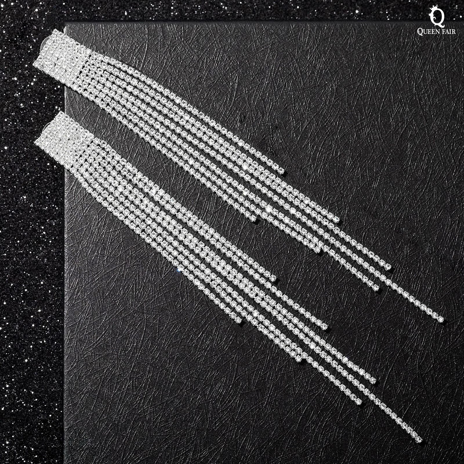 Серьги висячие со стразами "Водопад" ступенчатые, белые в серебре, 17 см, 1.5x17x1 см., QF, Китай