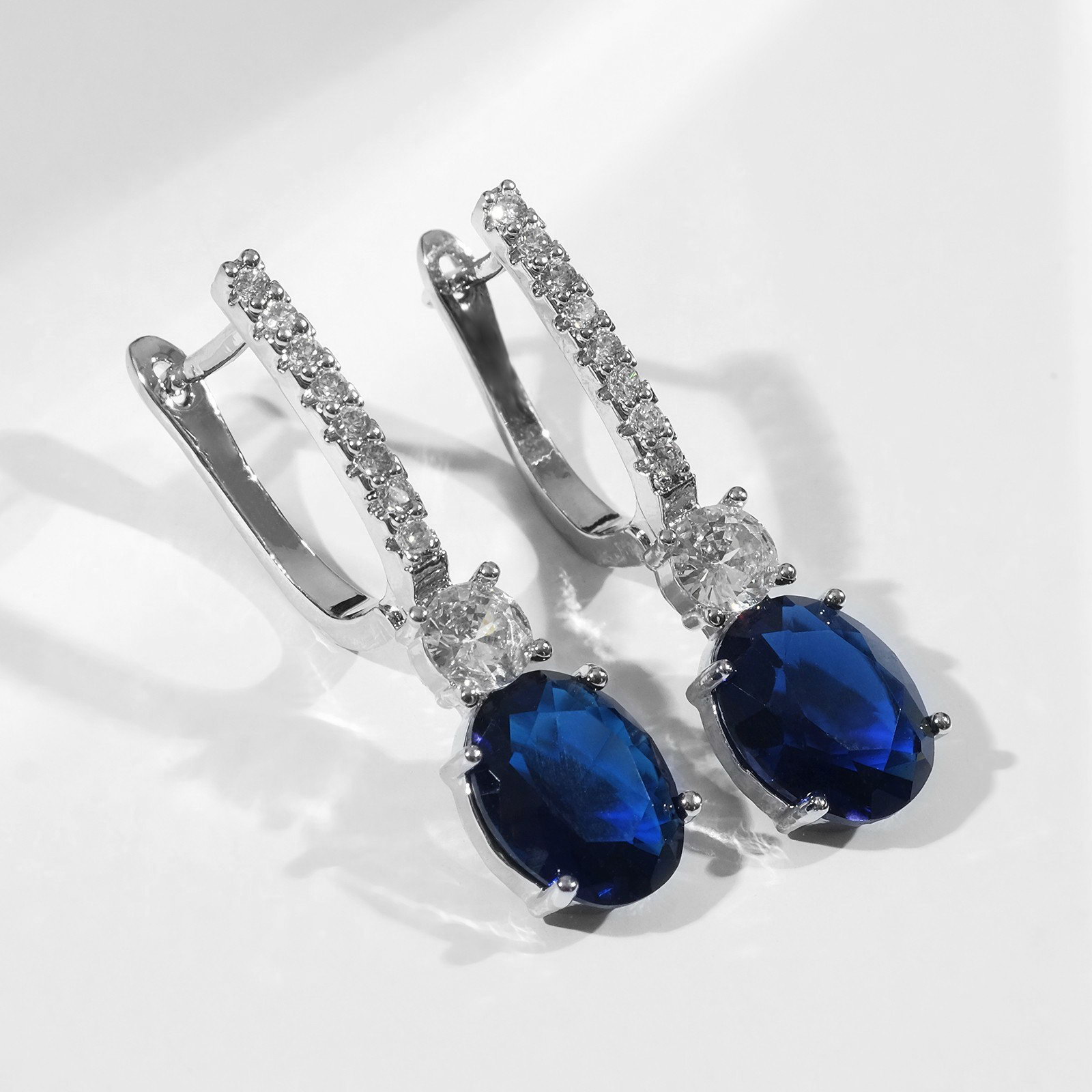 Серьги со стразами "Блиц", бело-синие в серебре, 0.8x3x1 см., QF, Китай