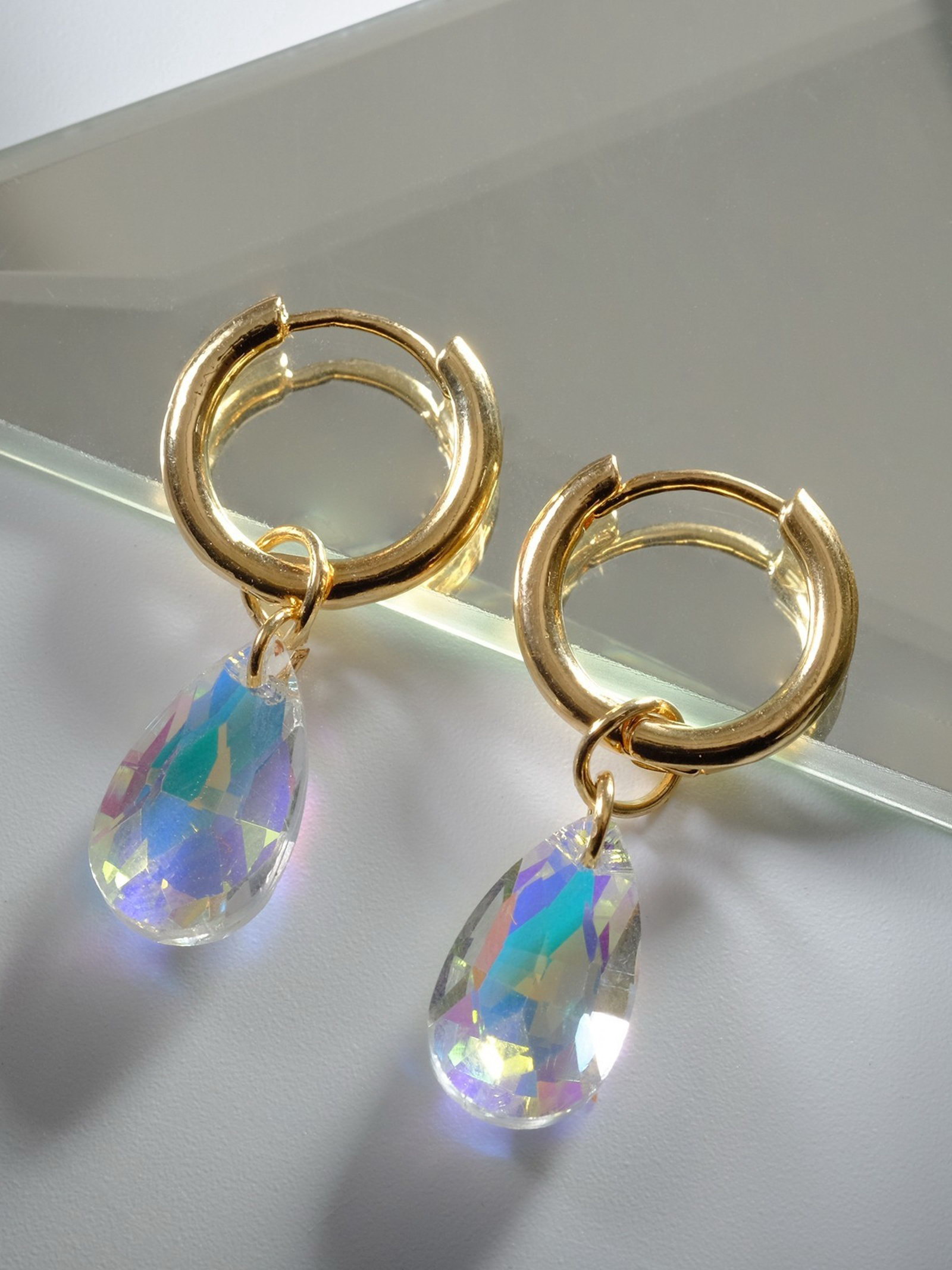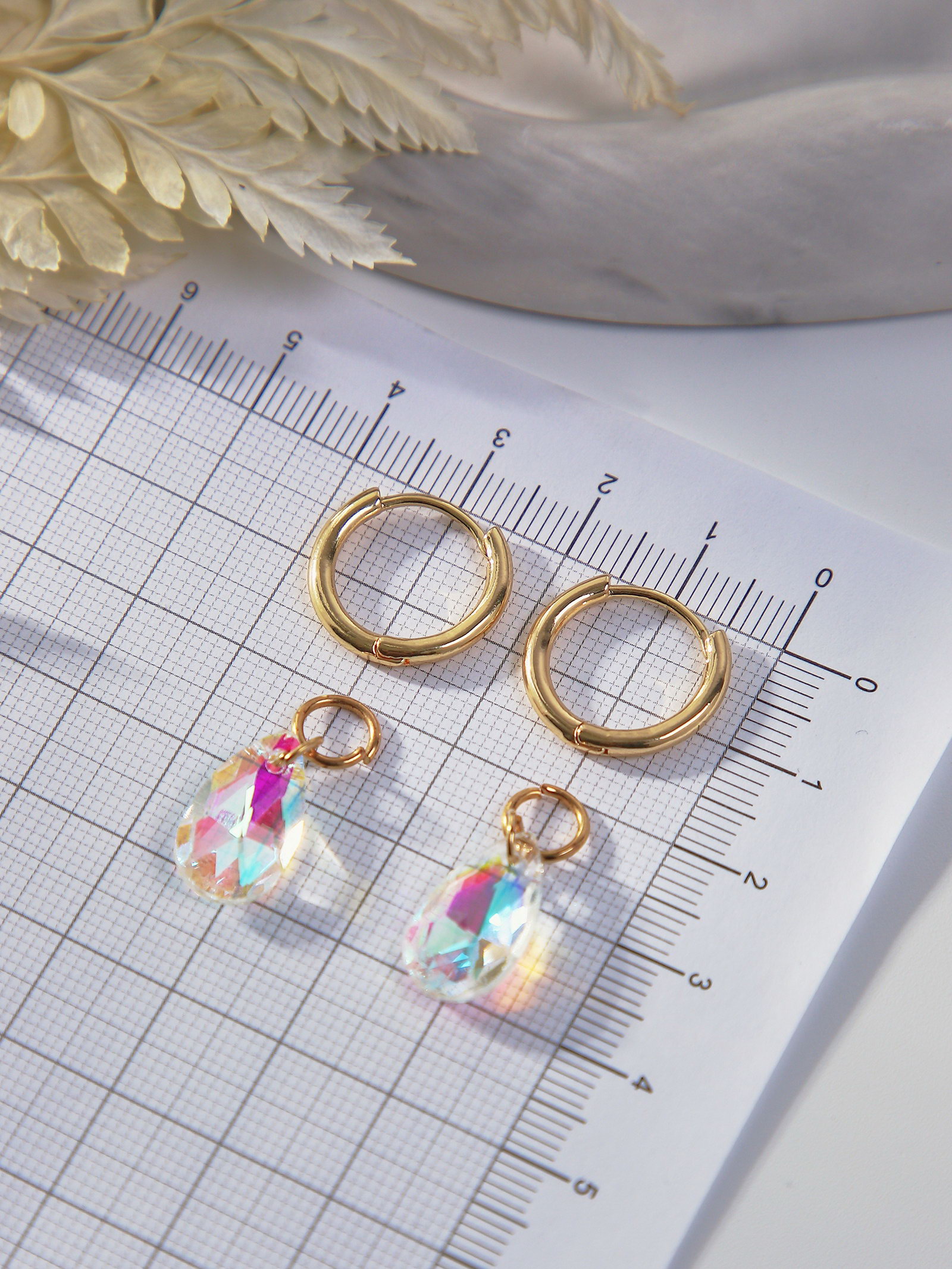 Серьги со съёмным элементом "Трансформер" кристаллик капля, радужные в золоте, 1x3x1.6 см., QF, Китай