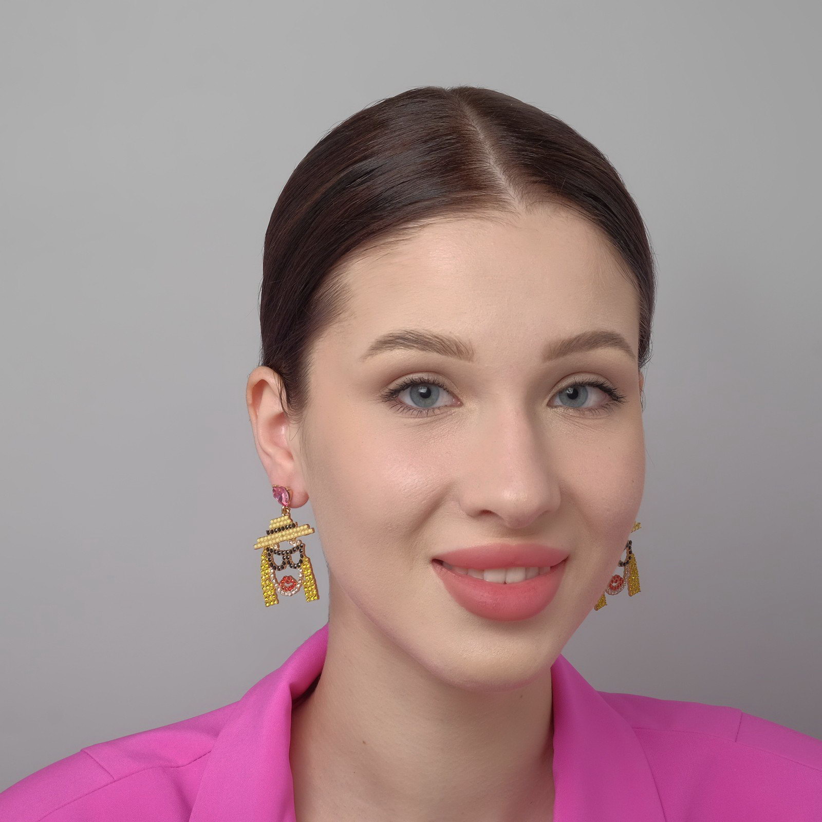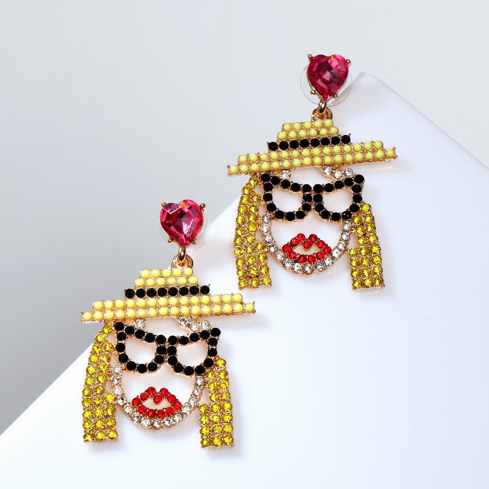 Серьги со стразами "Модница" в очках, цвет жёлто-красный в золоте, 3.3x5x1 см., Queen fair, Китай
