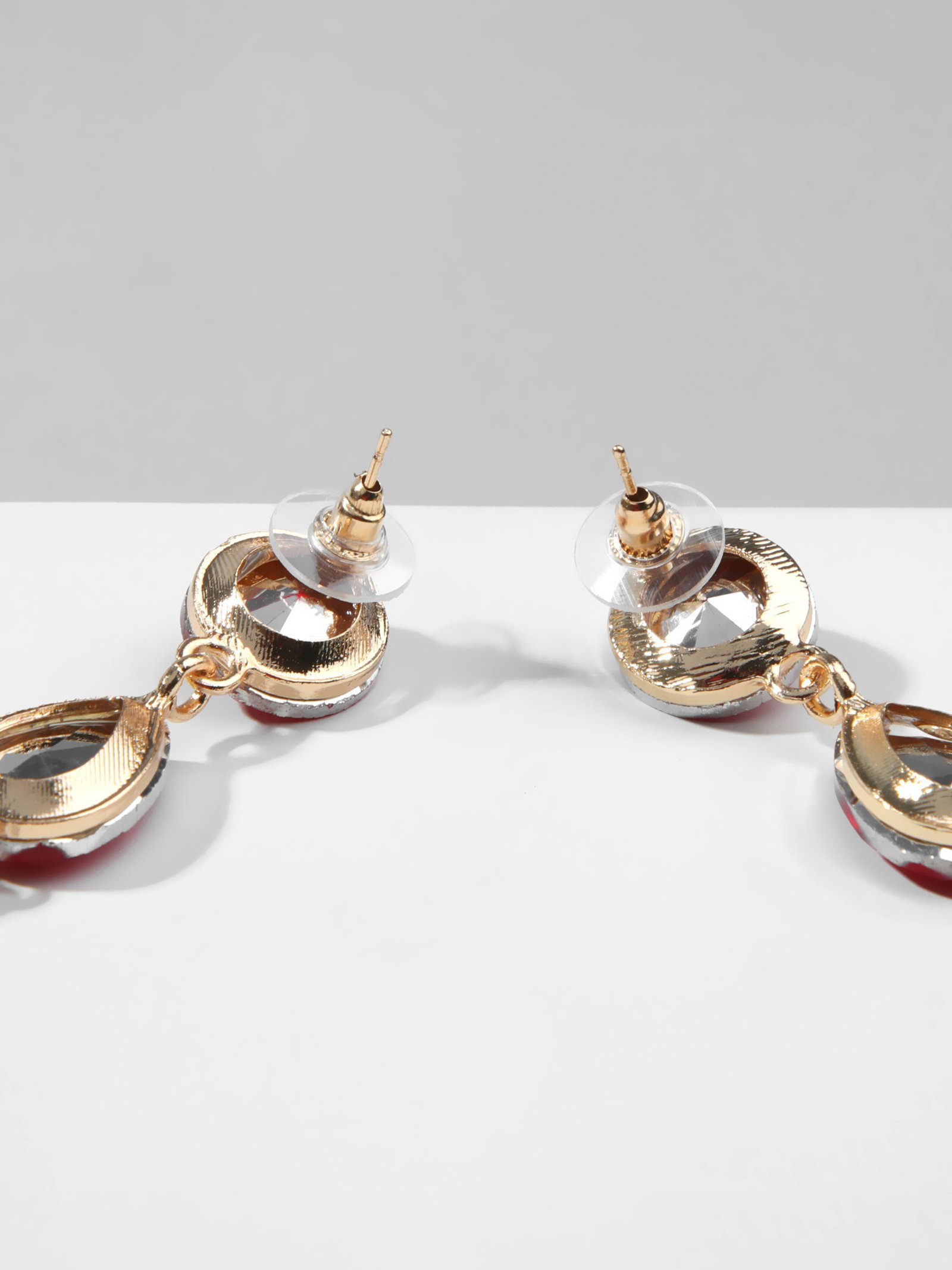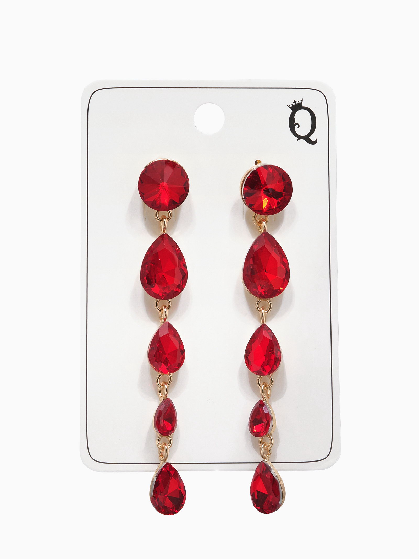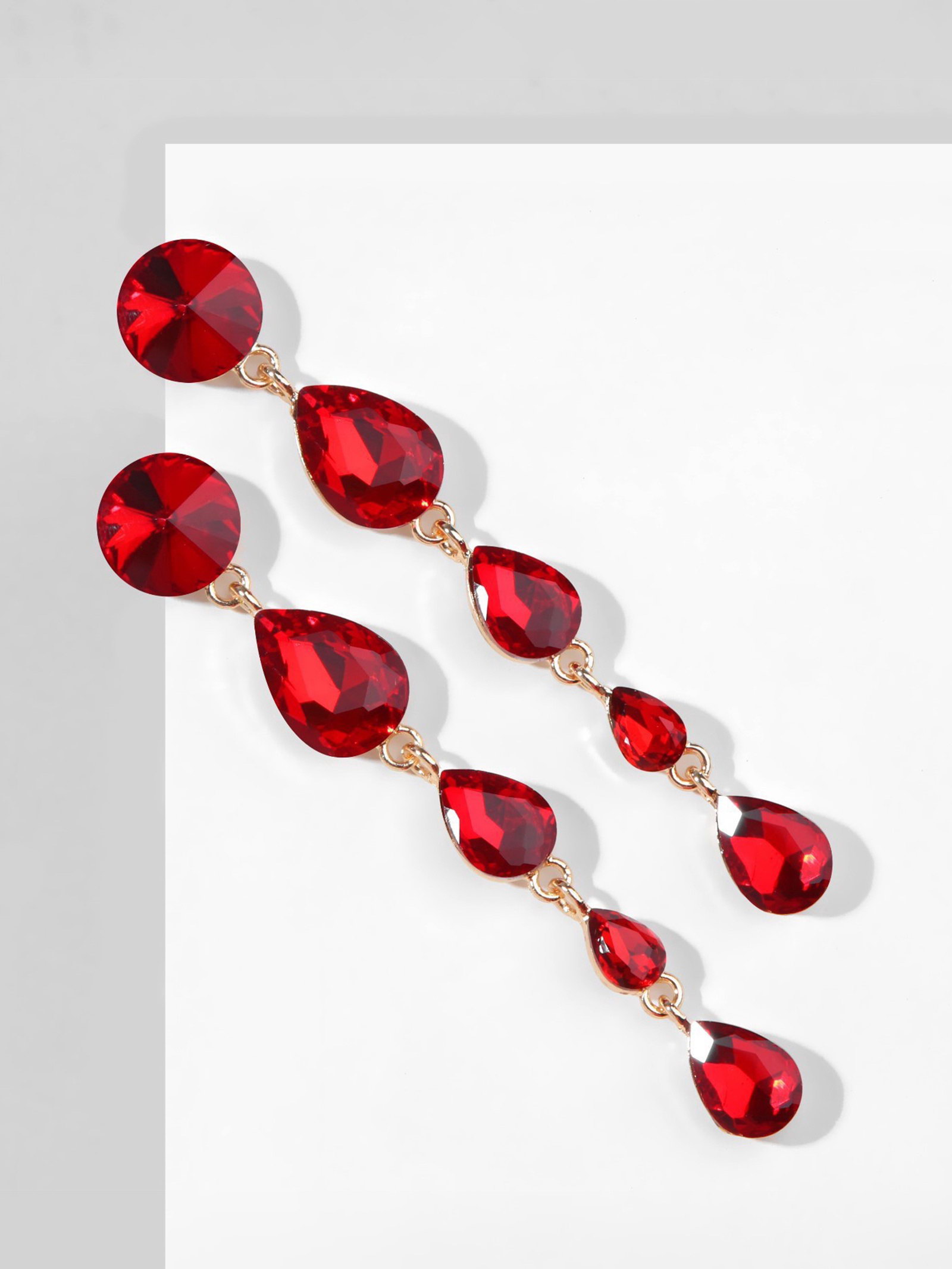 Серьги висячие со стразами "Драгоценность" капли, красные в золоте, 9.5 см, 1.2x9.5x0.5 см., QF, Китай