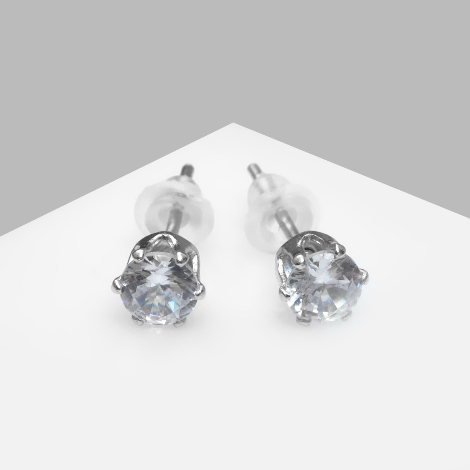 Серьги со стразами "Пусеты" сияние, круг, d=0.4, белые в серебре, 0.4x0.4x0.3 см., QF, Китай