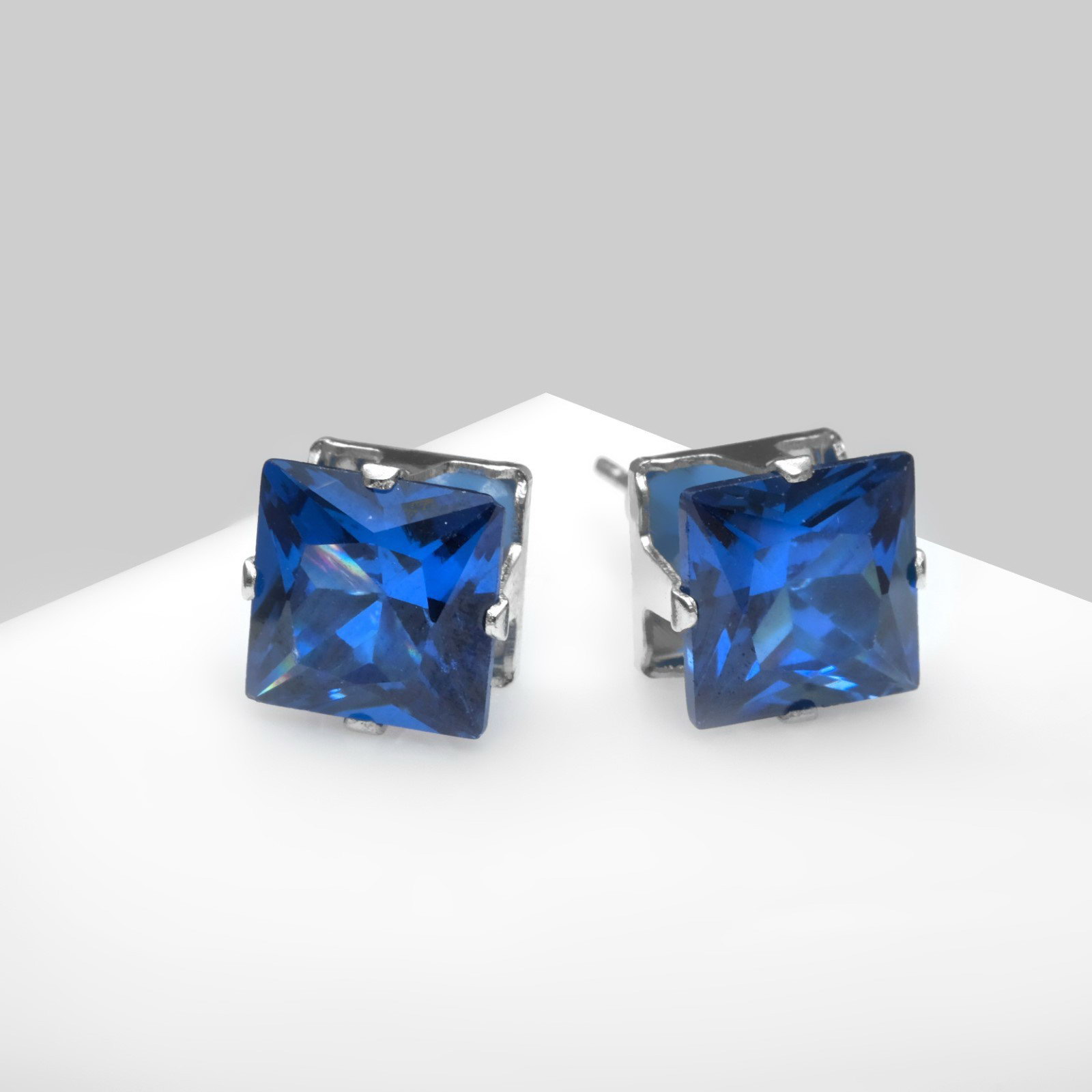 Серьги со стразами "Пусеты" сияние, квадрат, d=0.8, синие в серебре, 0.8x0.8x0.3 см., QF, Китай