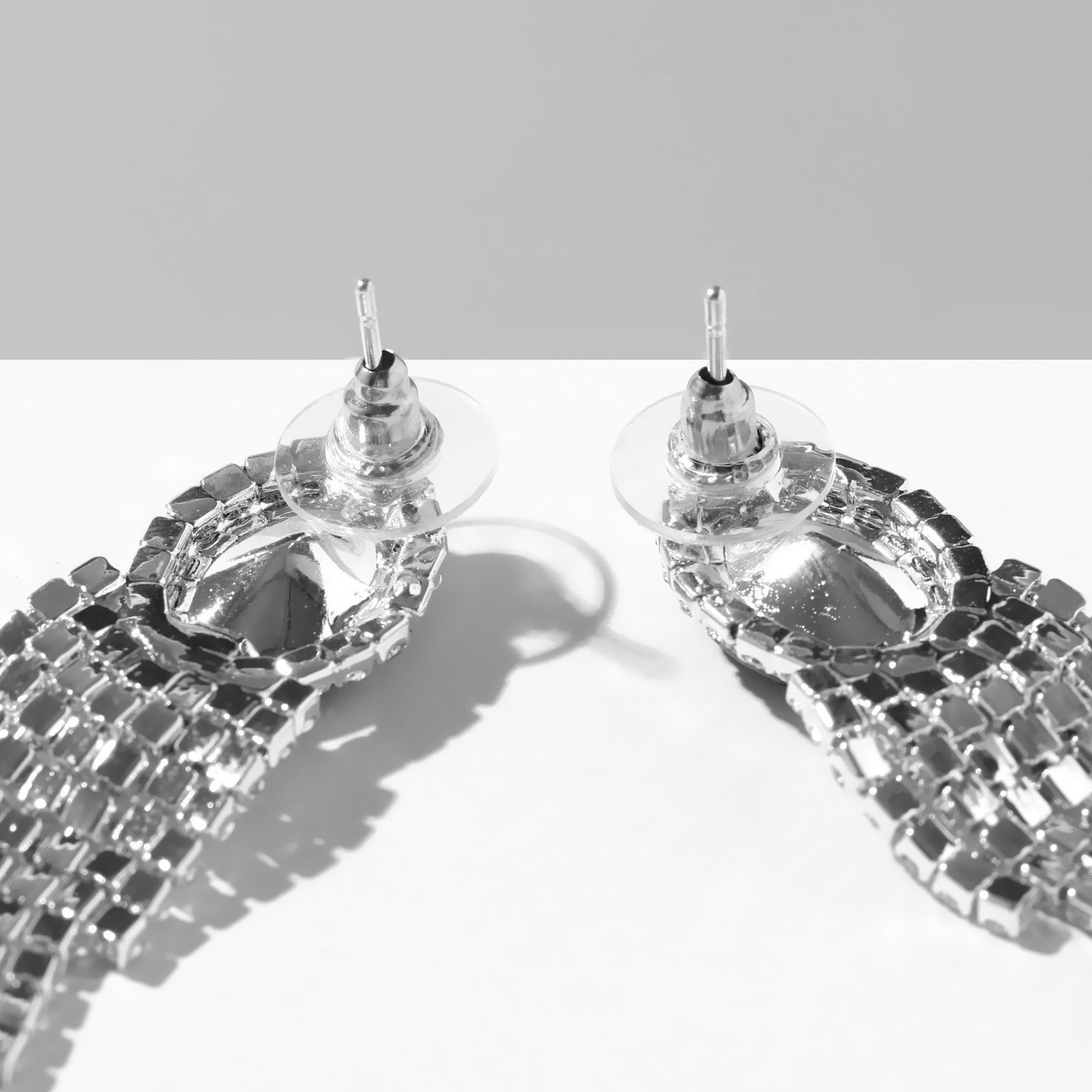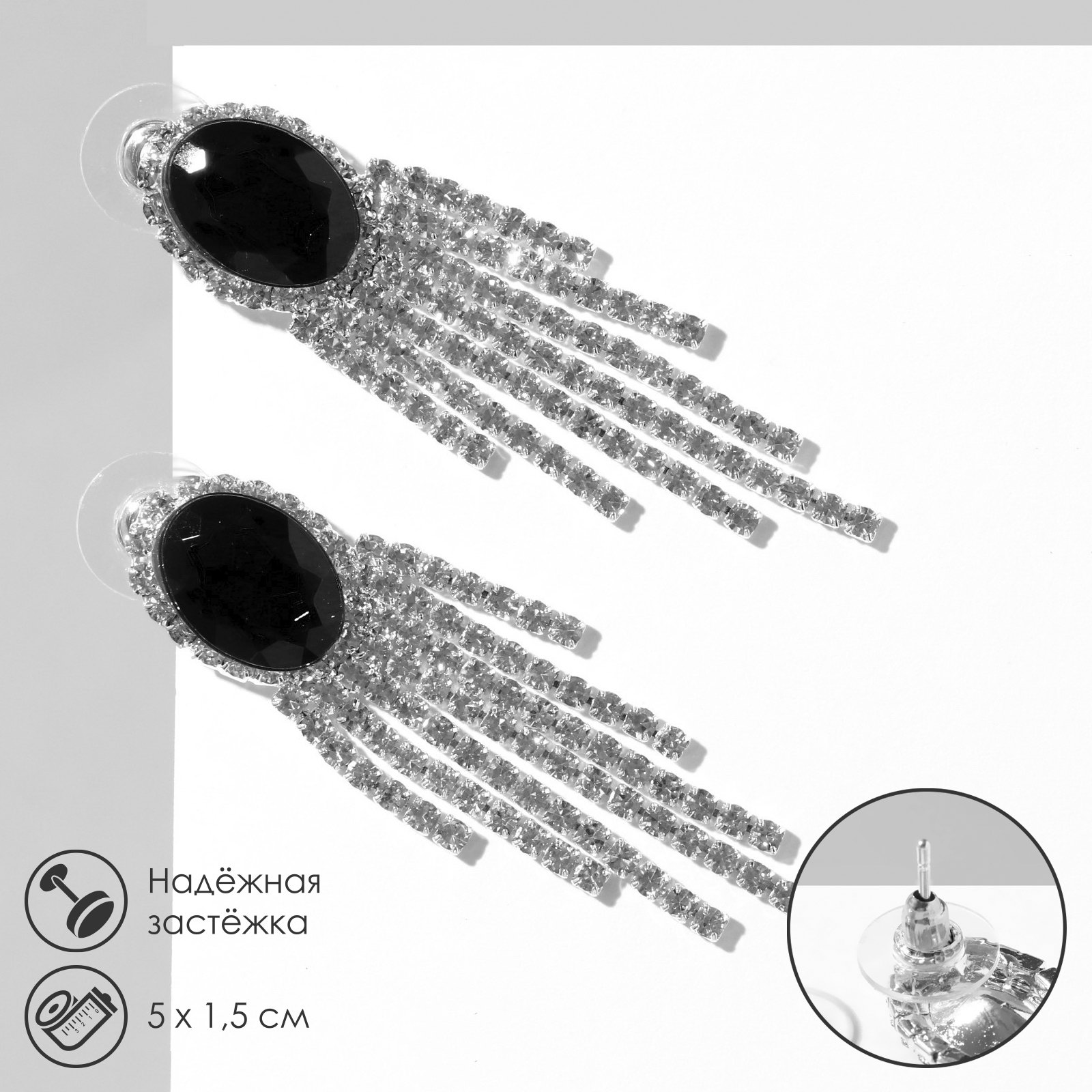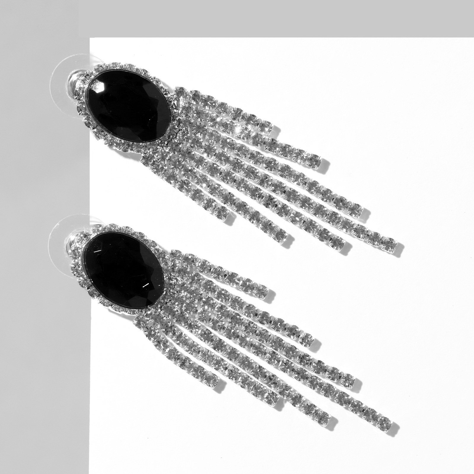Серьги со стразами "Водопад" овал, цвет чёрно-белый в серебре, 1.5x5x0.3 см., Queen fair, Китай