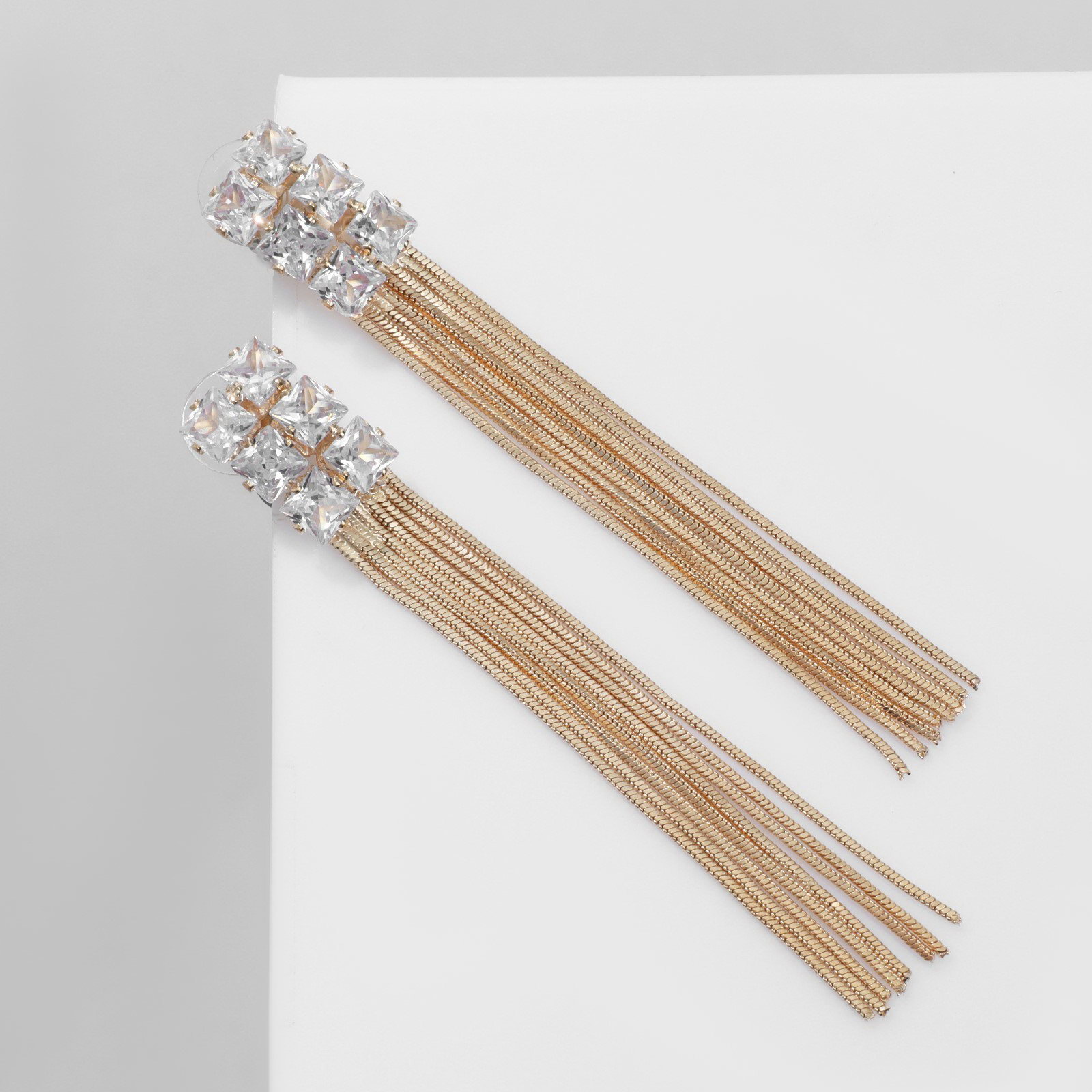 Серьги висячие со стразами "Одиссея" прямоугольник, цвет белый в золоте, 1x8x1 см., QF, Китай