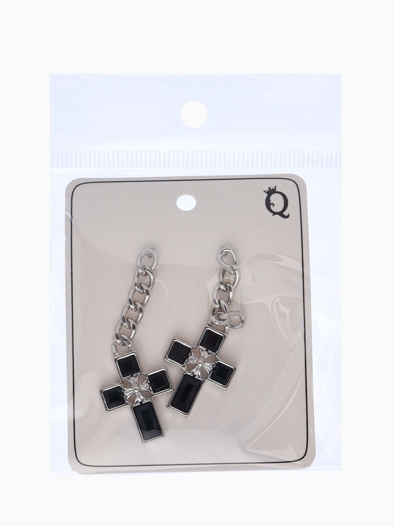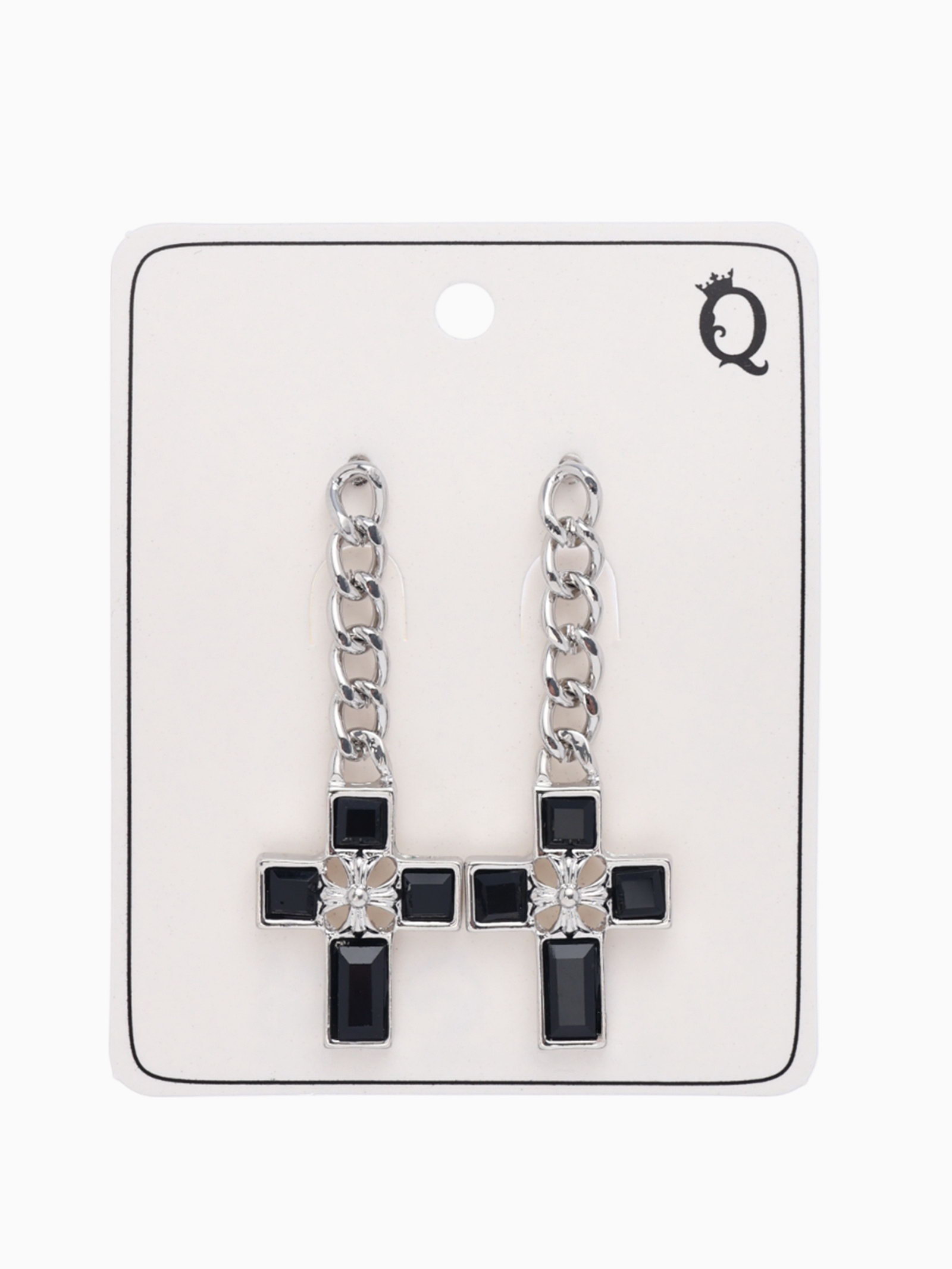 Серьги со стразами "Крестики" цепь, бело-чёрные в серебре, 2x5x0.5 см., QF, Китай