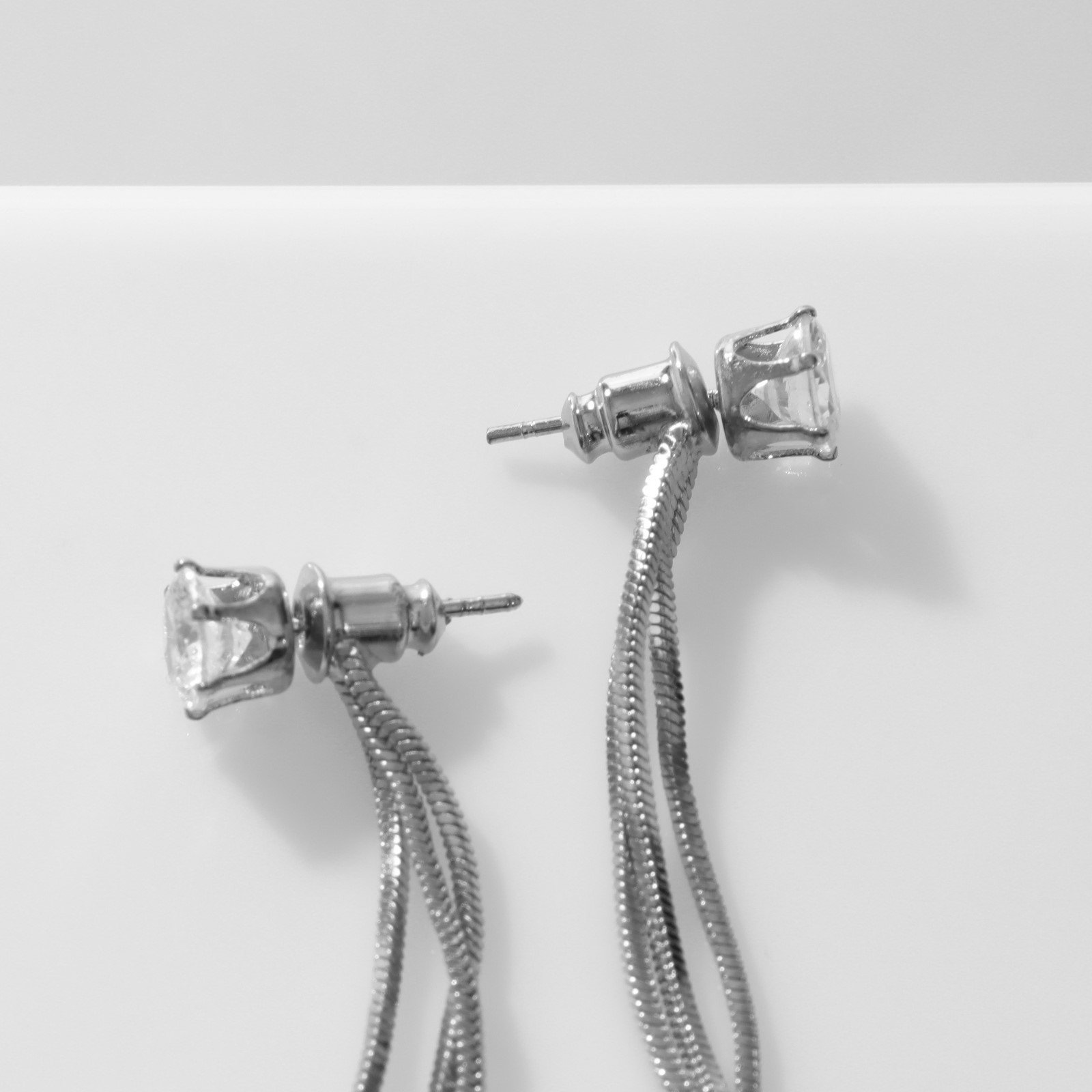 Серьги висячие со стразами "Цепочки" круг, цвет белый в серебре, 0.5x5x0.5 см., QF, Китай