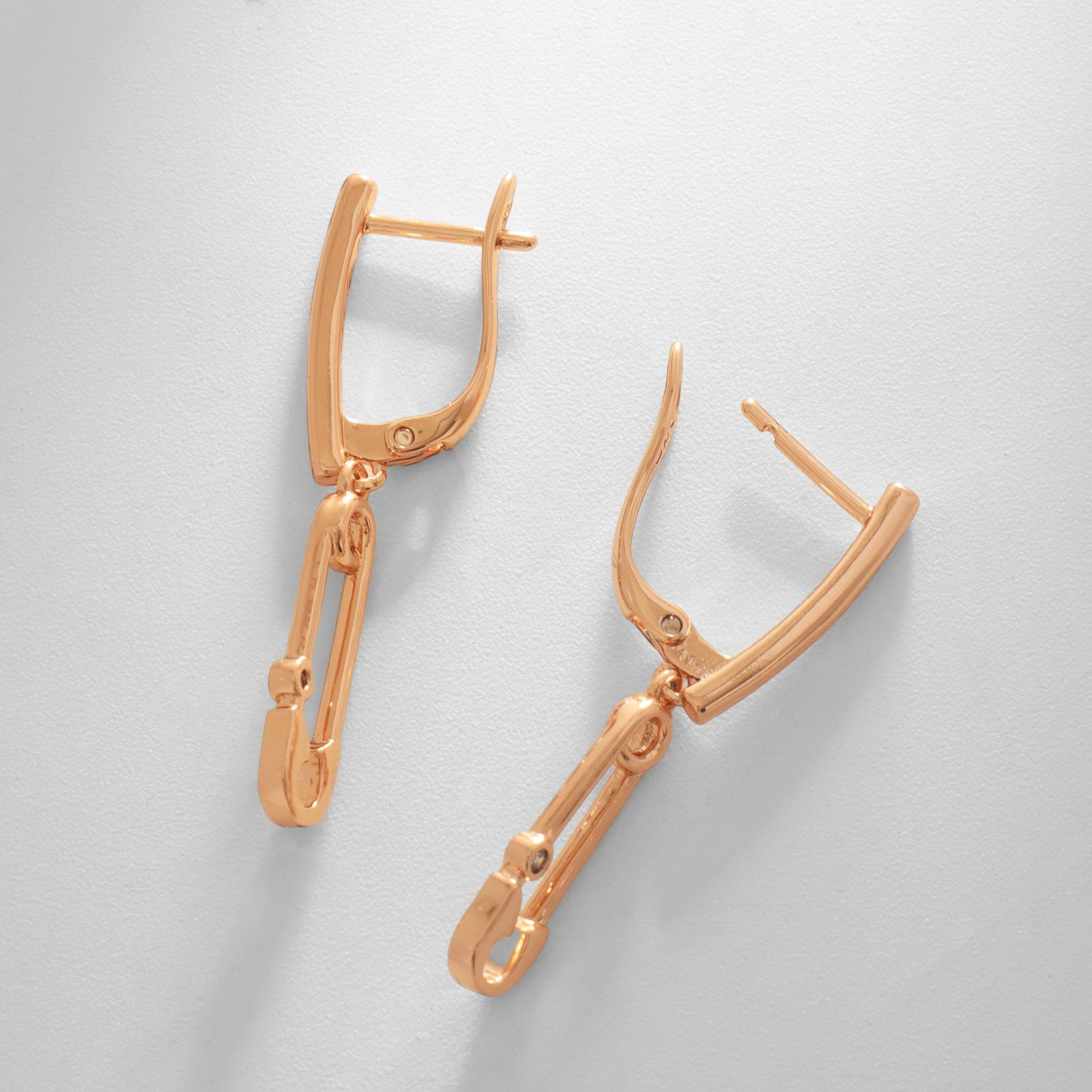 Серьги со стразами булавка, белые в розовом золоте, 0.5x3.5x1 см., XUPING, Китай