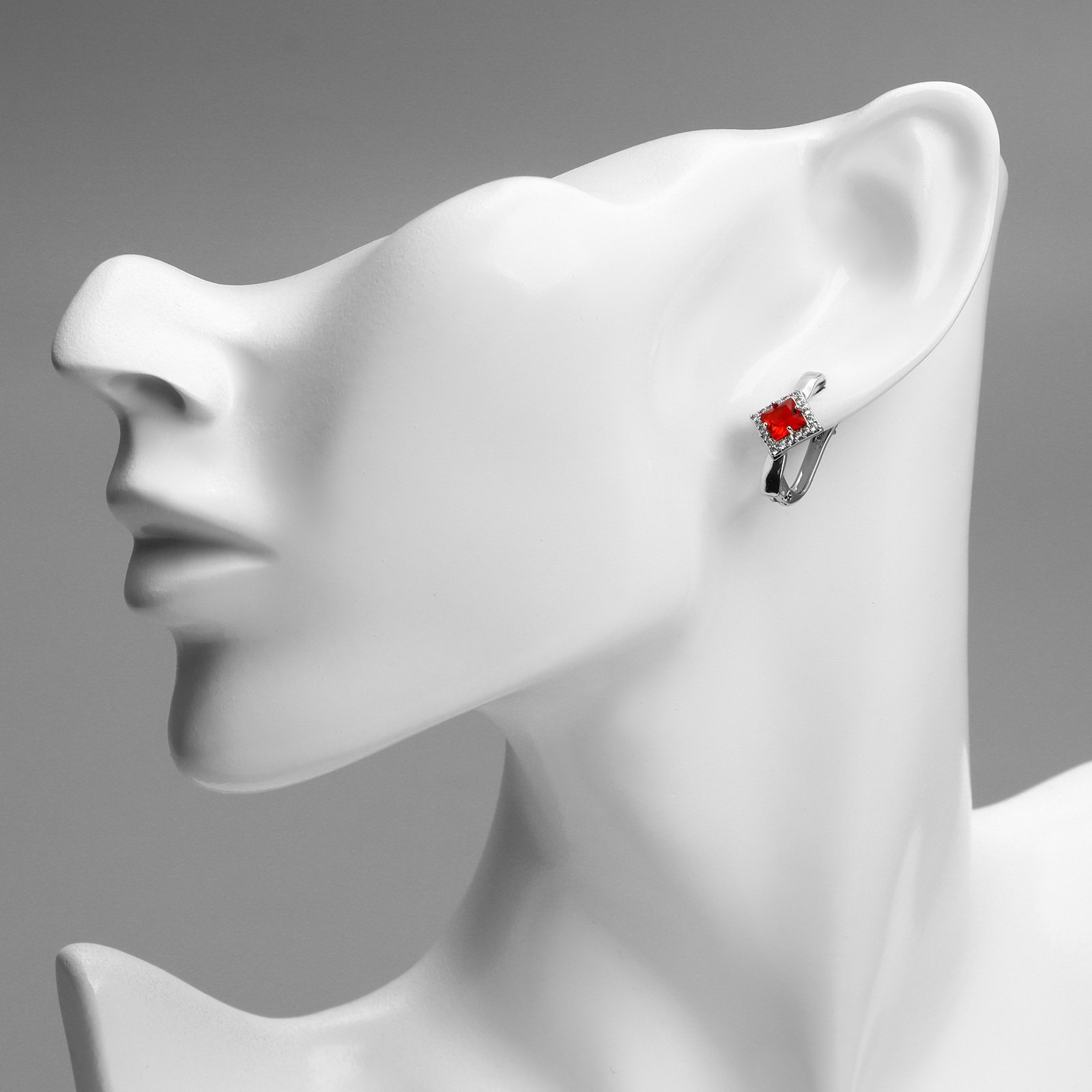 Серьги со стразами рай, красные в серебре, 1x2x1.5 см., XUPING, Китай