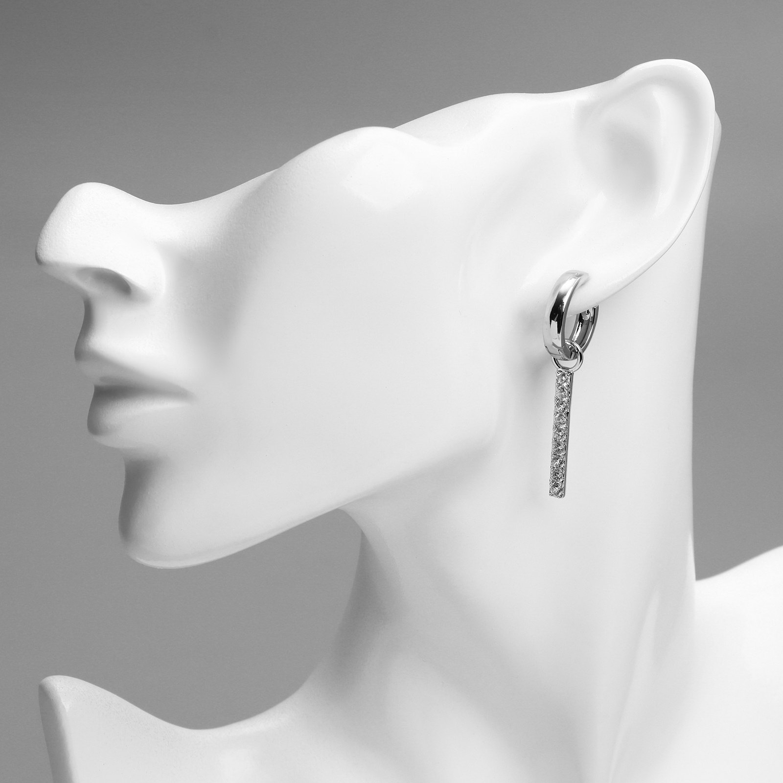 Серьги со стразами с подвеской, белые в серебре, 1.5x4.5x0.4 см., XUPING, Китай