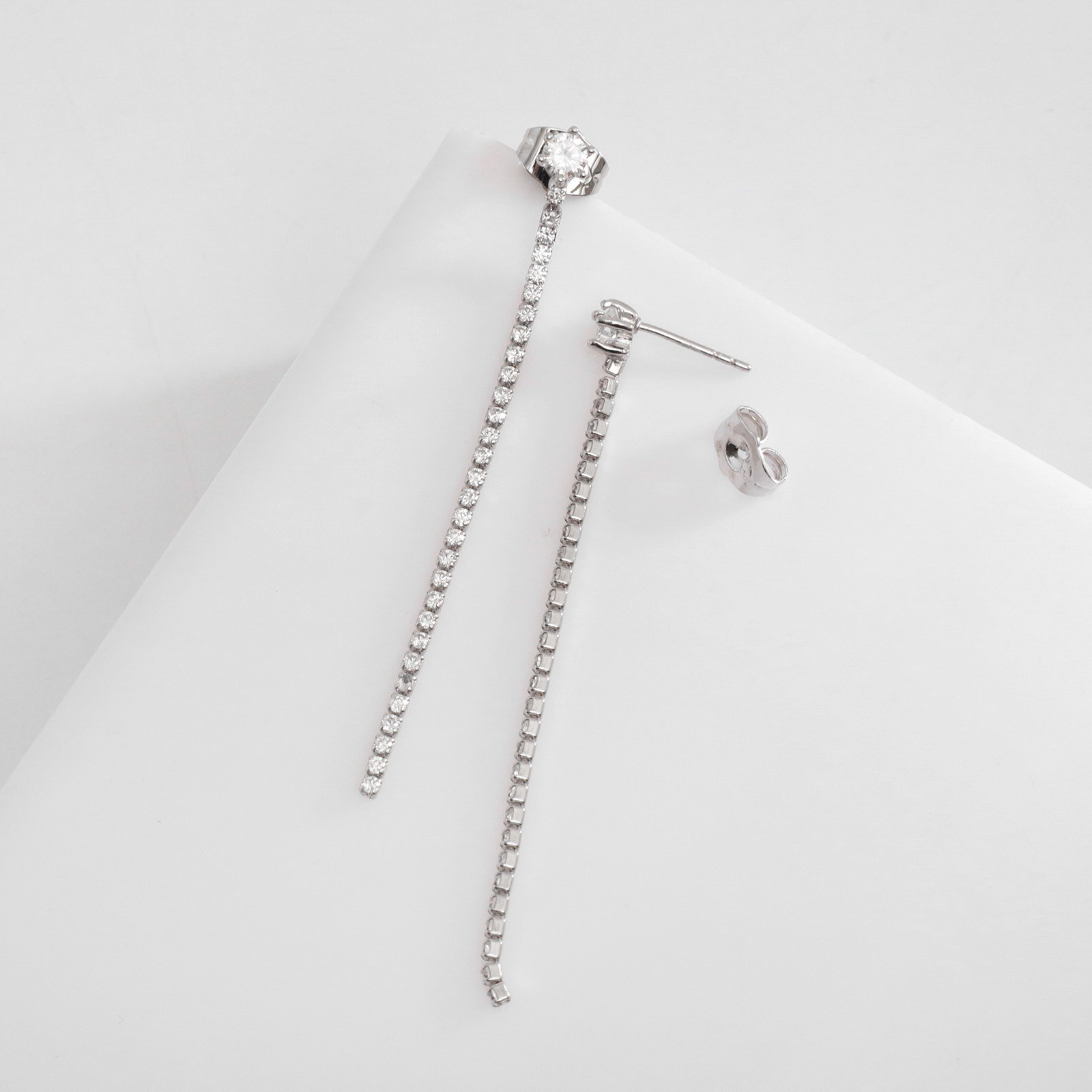 Серьги со стразами висячие, эскиз, белые в серебре, 0.3x6.5x0.4 см., XUPING, Китай