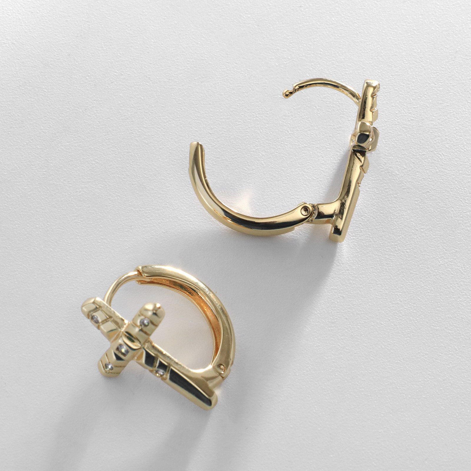 Серьги со стразами крест преображение, белые в золоте, 1.2x1.8x1.4 см., XUPING, Китай