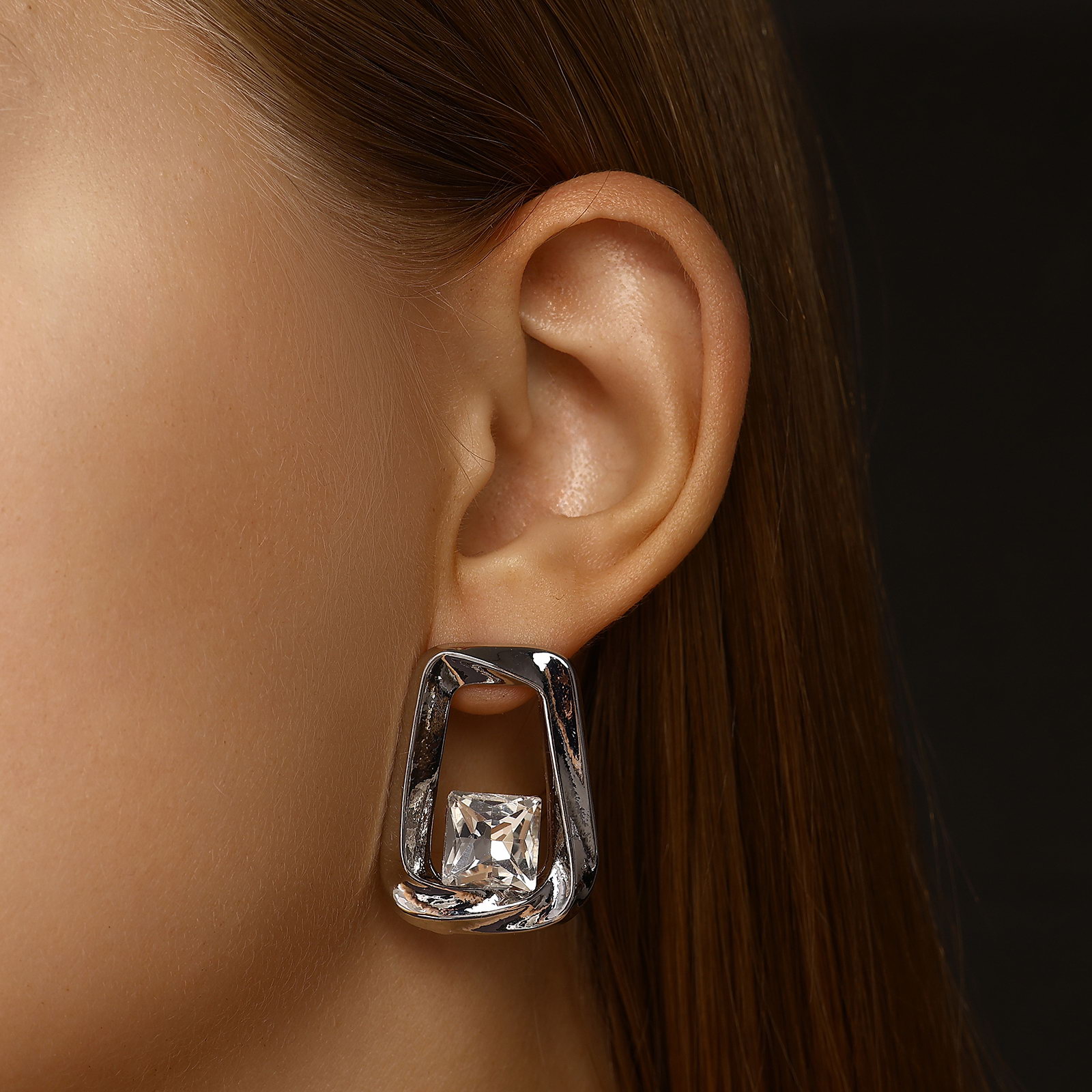 Серьги со стразами "Блеск вечера" первая леди, белые в серебре, 2.4x3.2x0.5 см., QF, Китай
