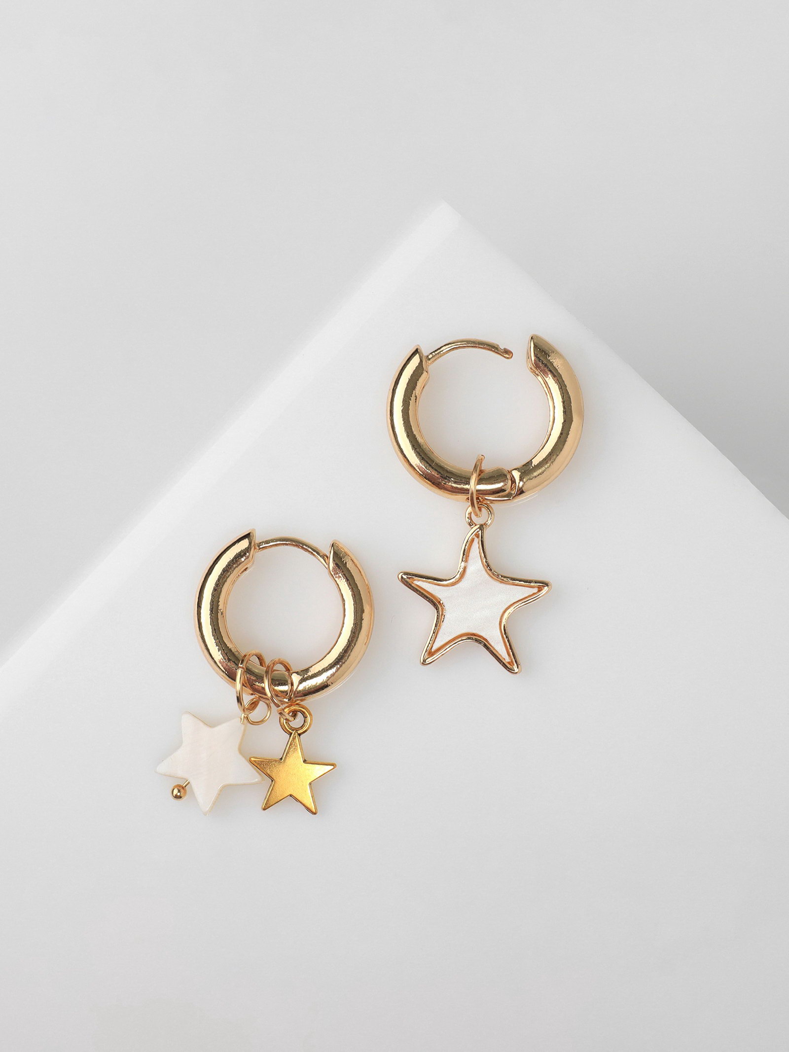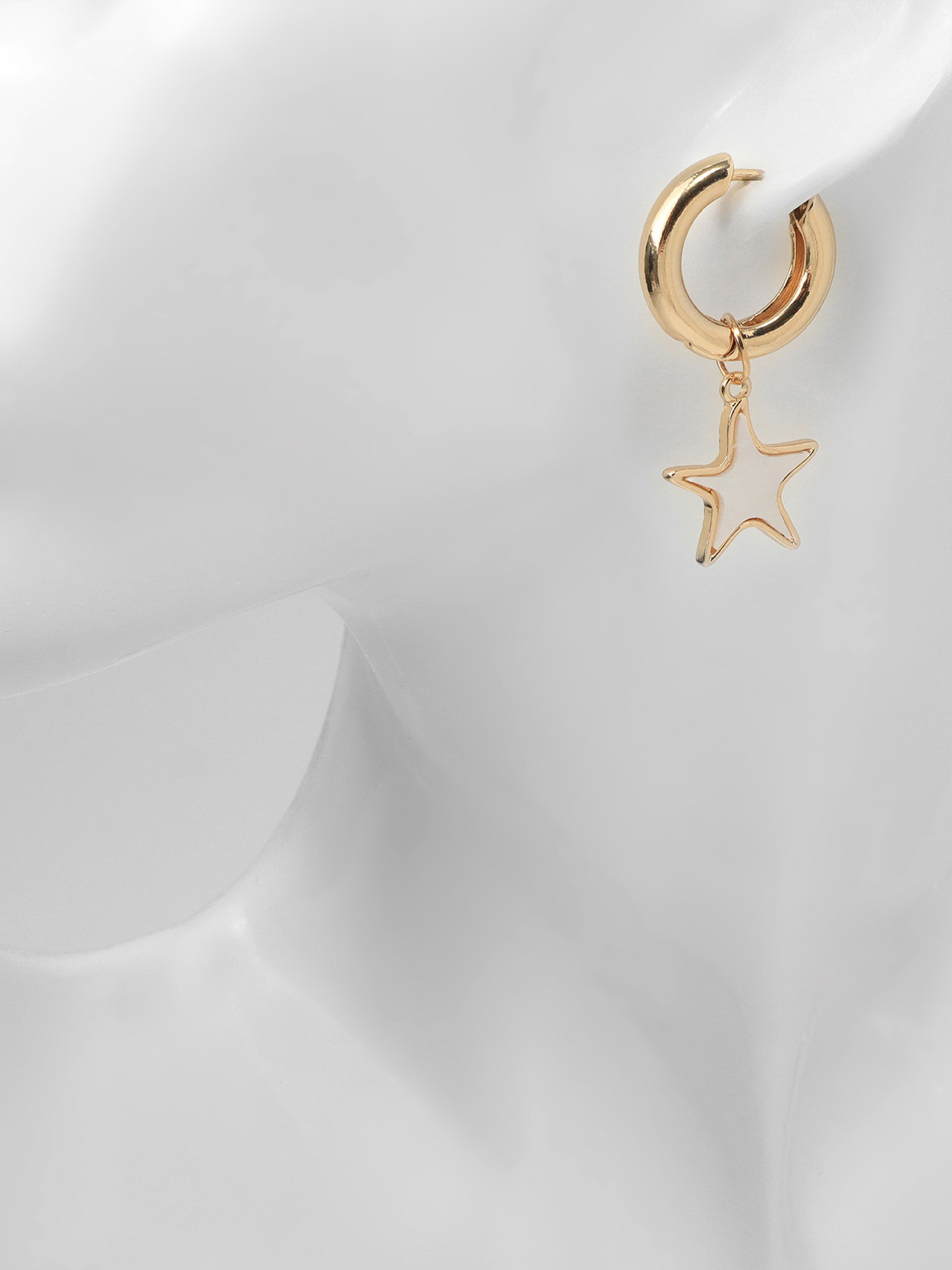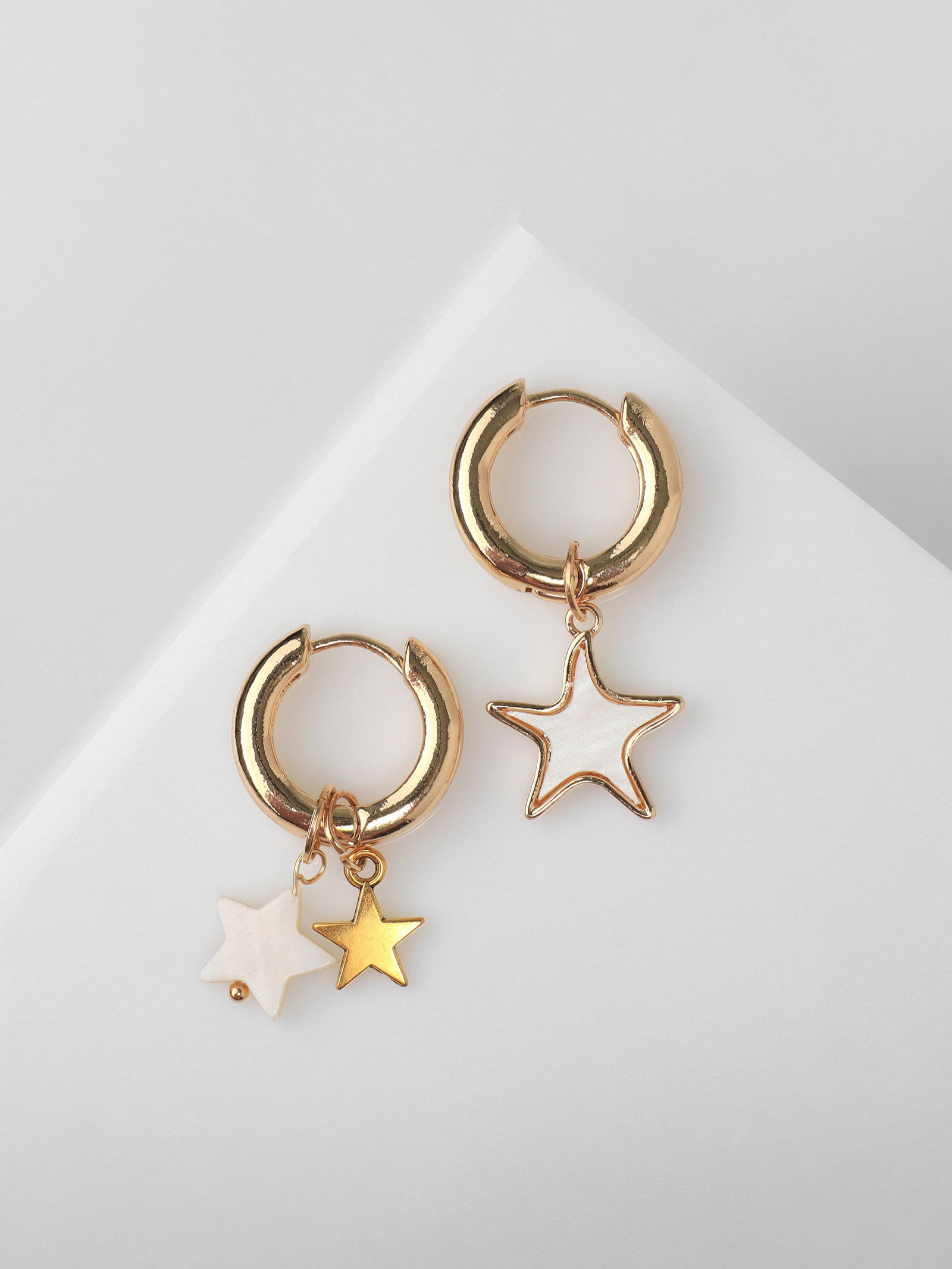 Серьги со съёмным элементом "Трансформер" звёзды, белые в золоте, 1x3.5x1 см., QF, Китай