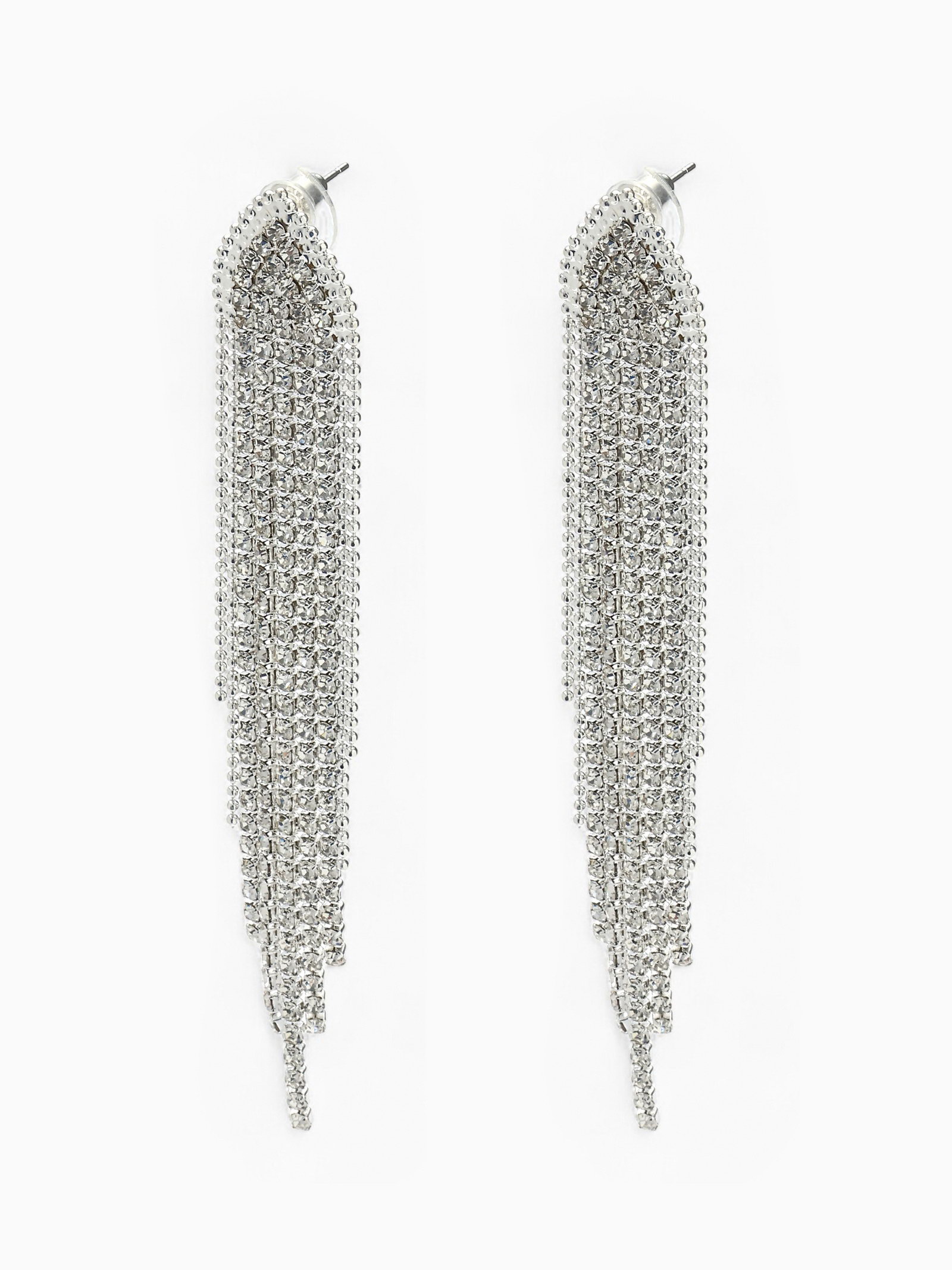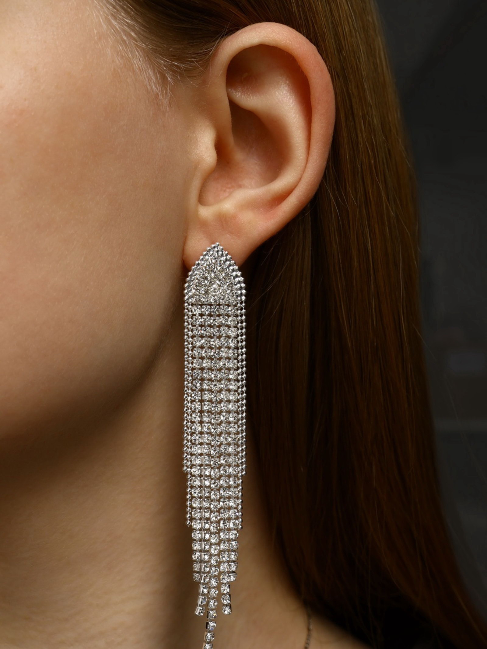 Серьги висячие со стразами "Вечное сияние" медуза, белые в серебре, 2x10x0.3 см., QF, Китай