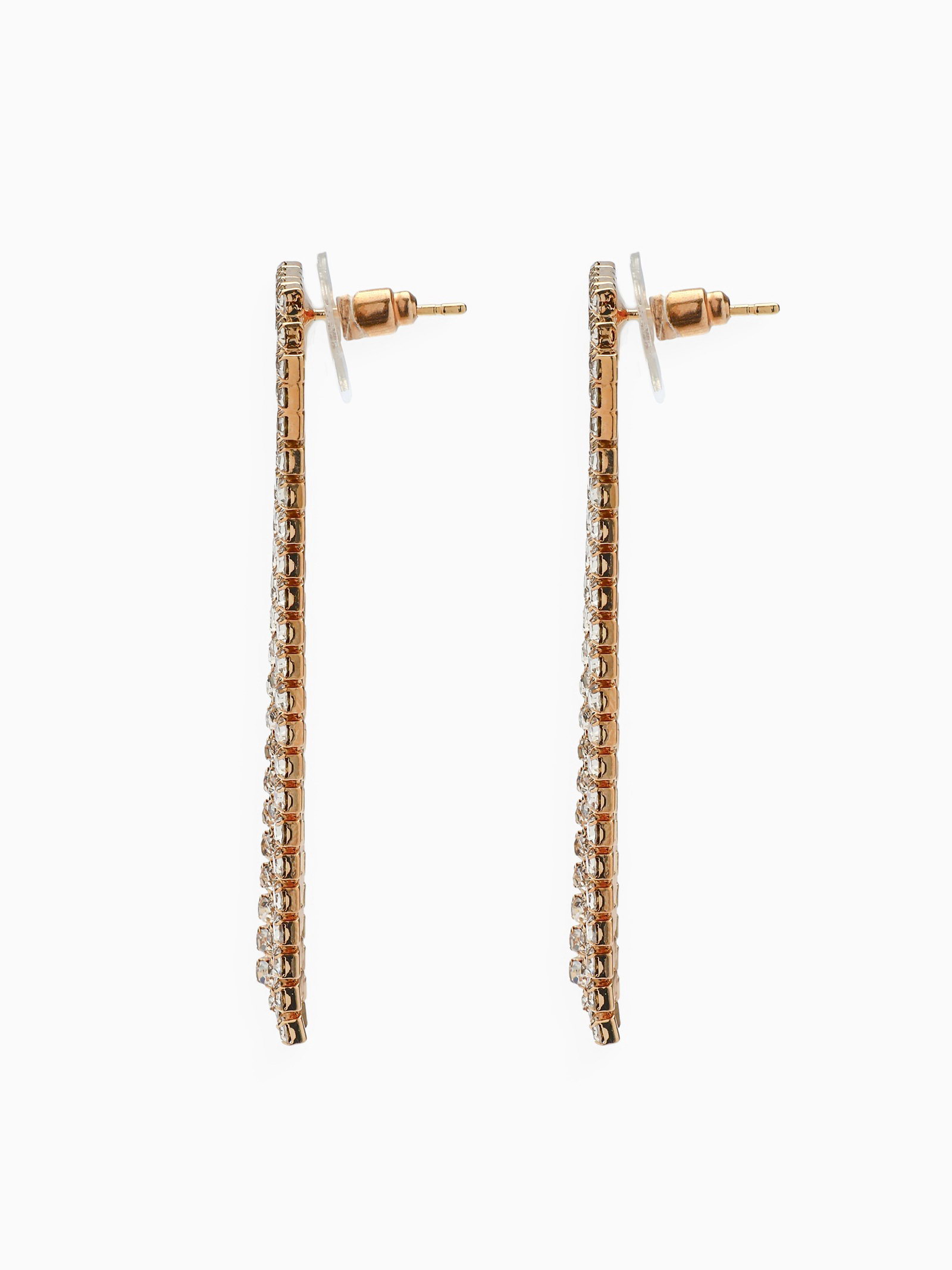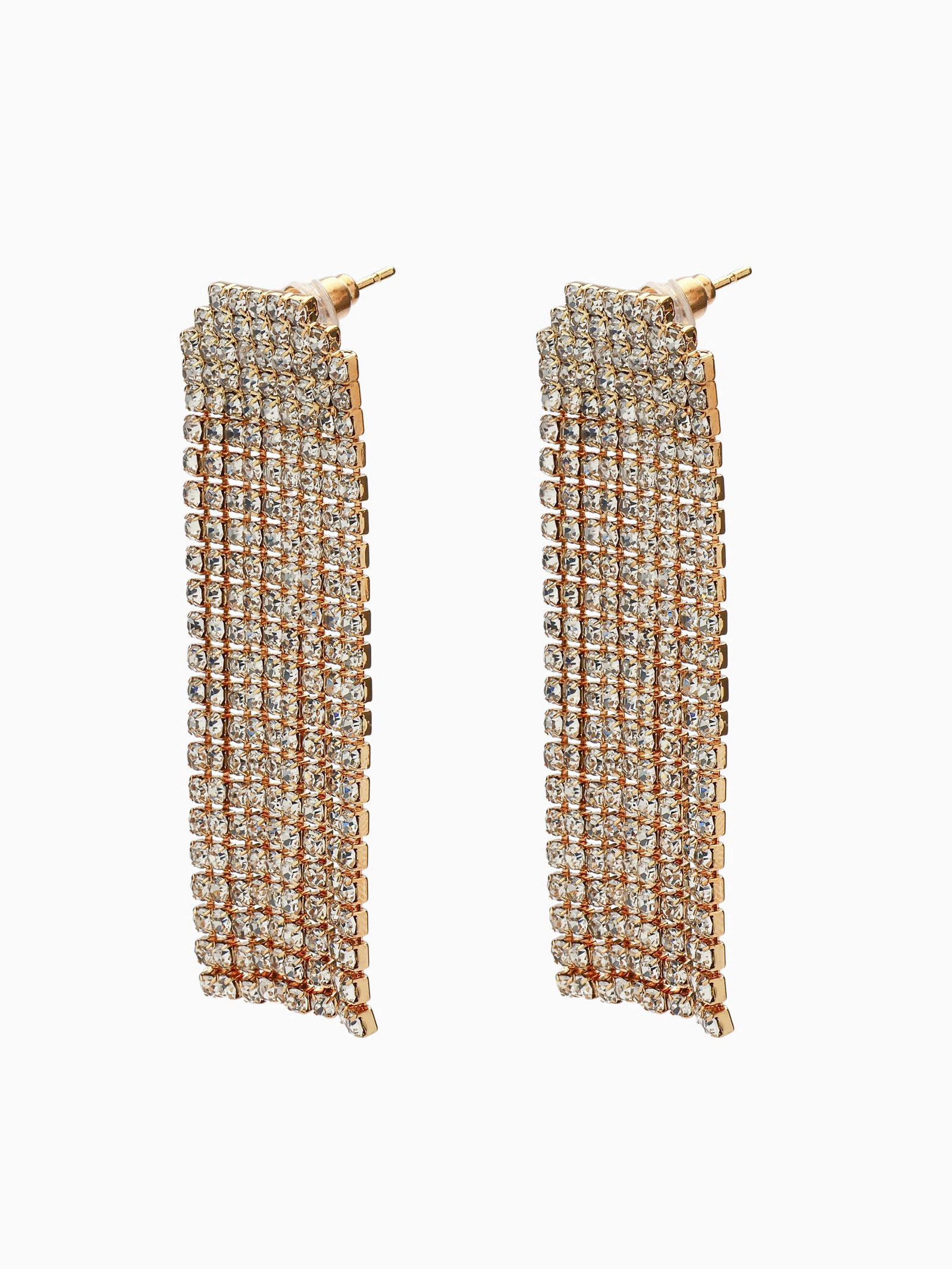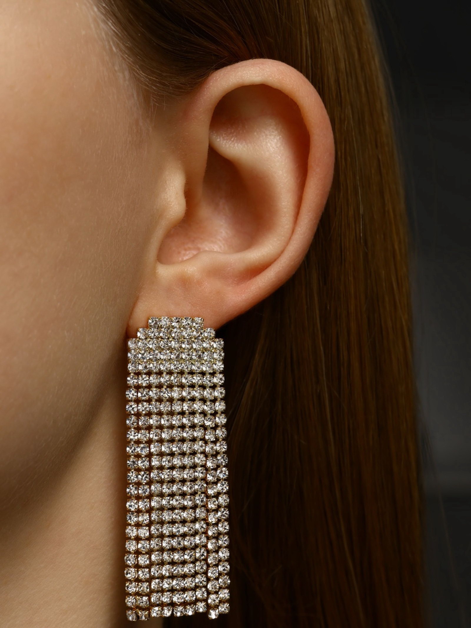 Серьги висячие со стразами "Водопад" мягкий квадрат, белые в золоте, 2x6x0.3 см., QF, Китай