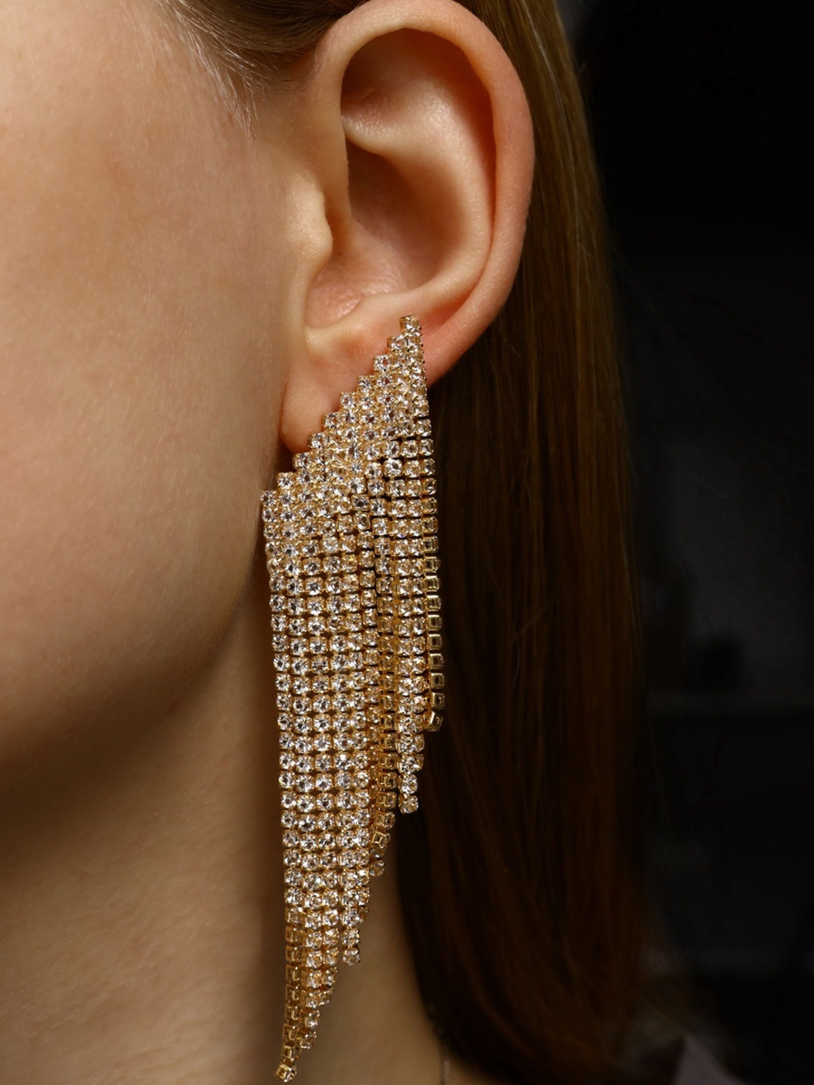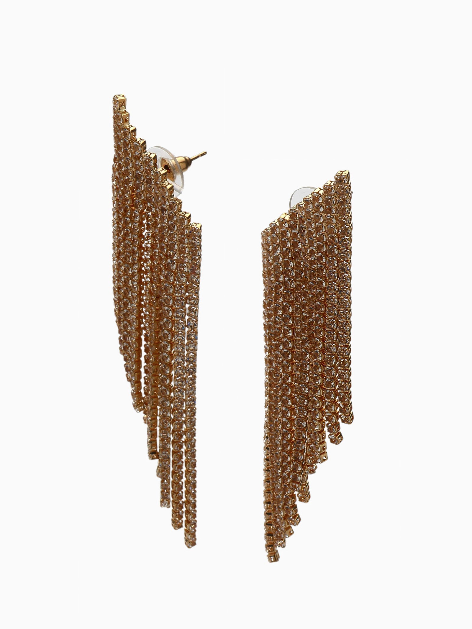 Серьги висячие со стразами "Вечное сияние" лесенка, белые в золоте, 4.5x10x0.3 см., QF, Китай