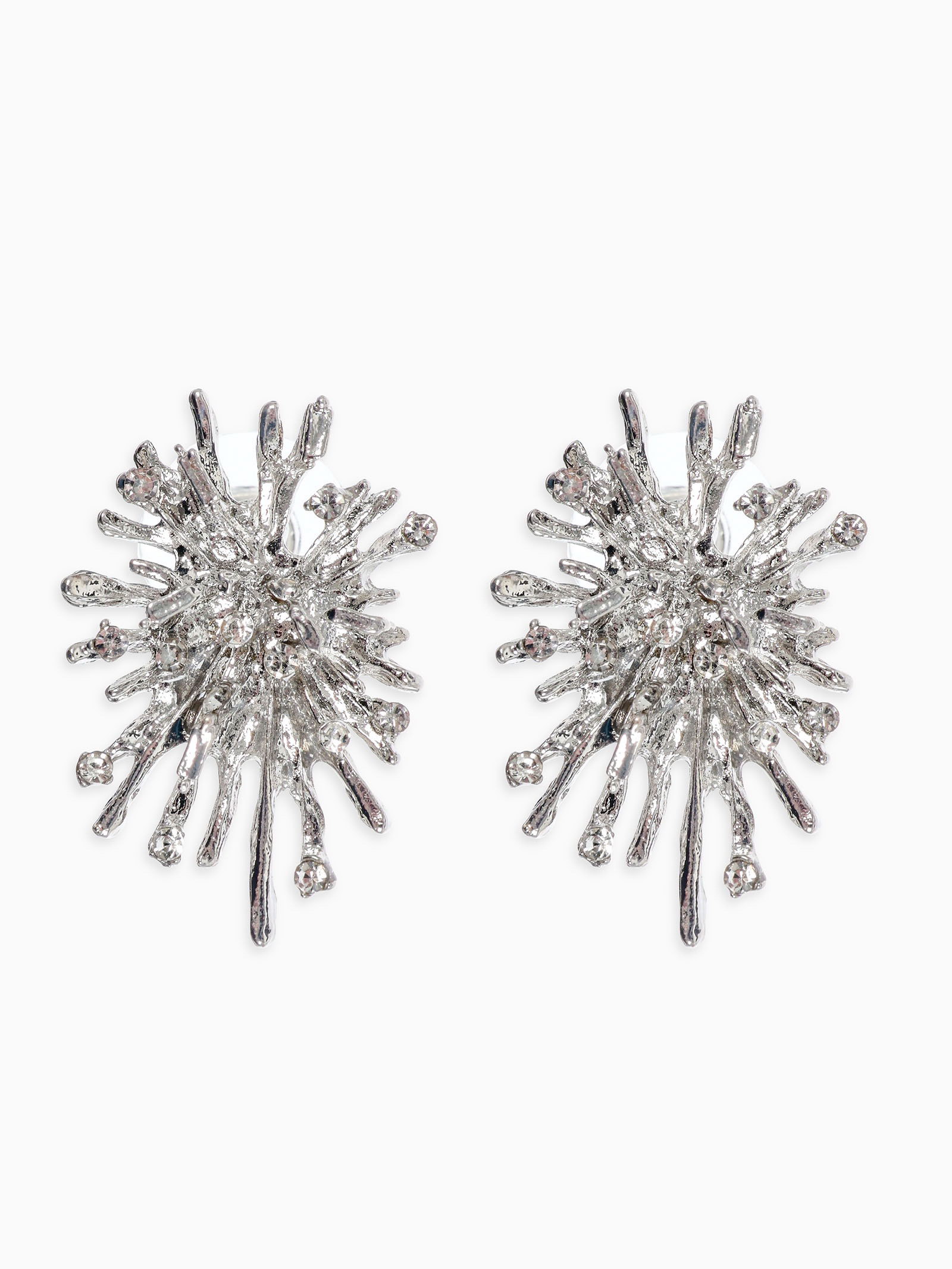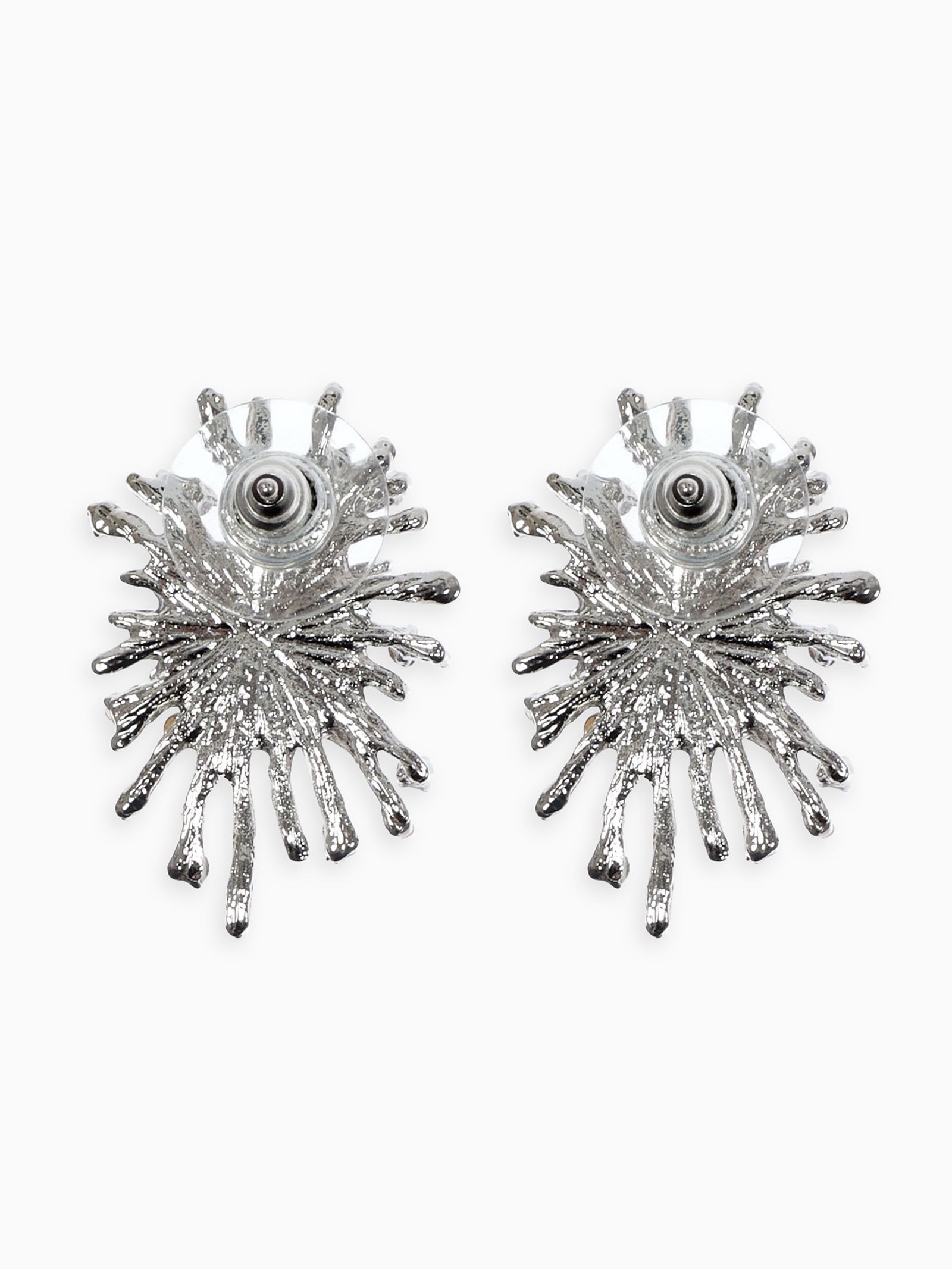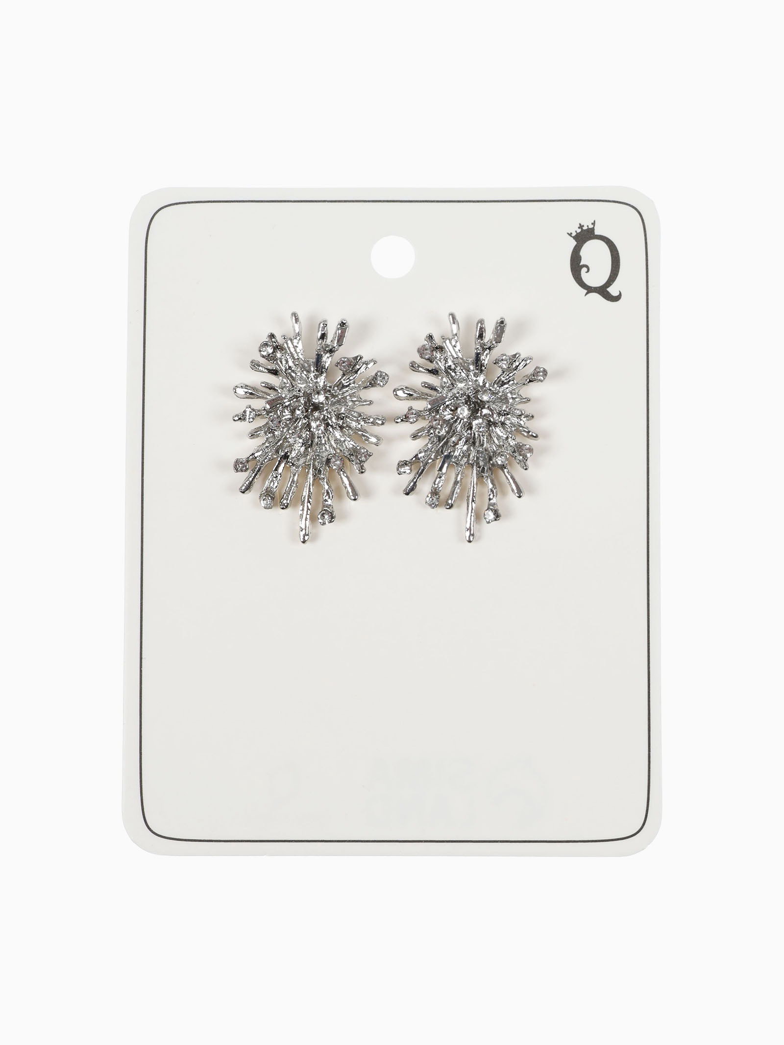 Серьги "Феерверк", белые в серебре, 1.9x2.7x1.5 см., QF, Китай