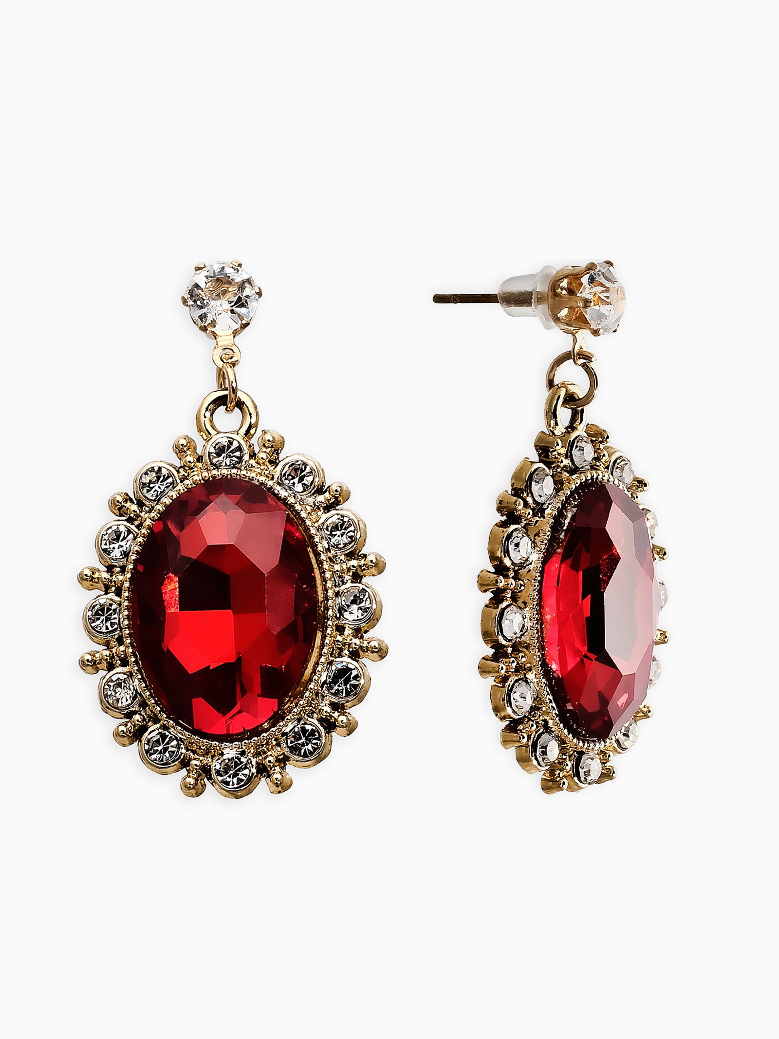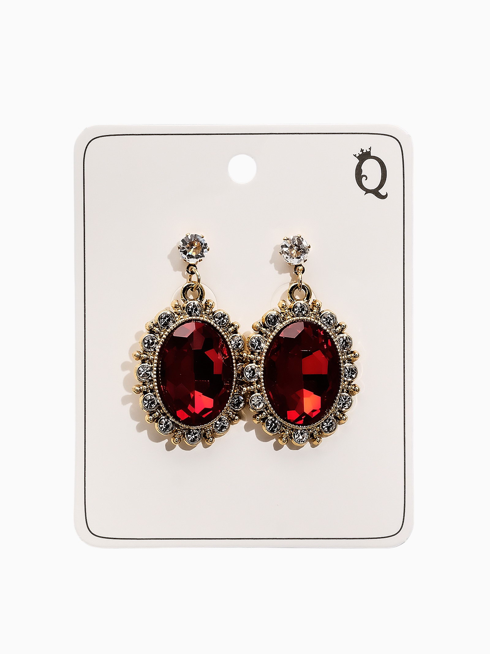 Серьги со стразами "Овал грань", красные в золоте, 2x3.5x0.5 см., QF, Китай