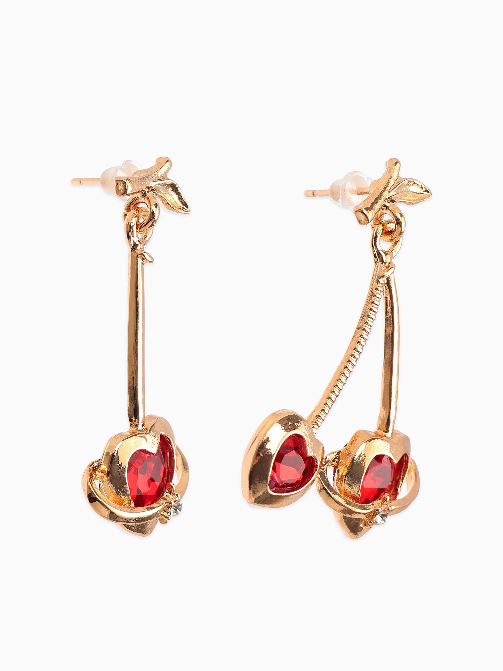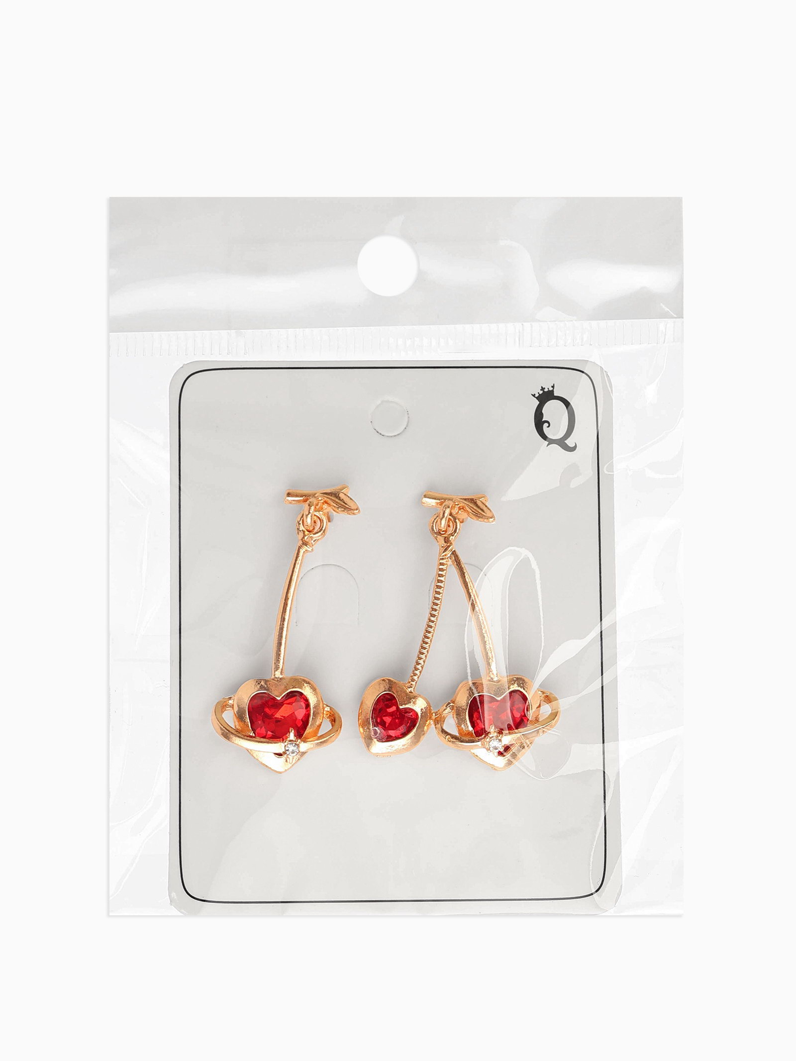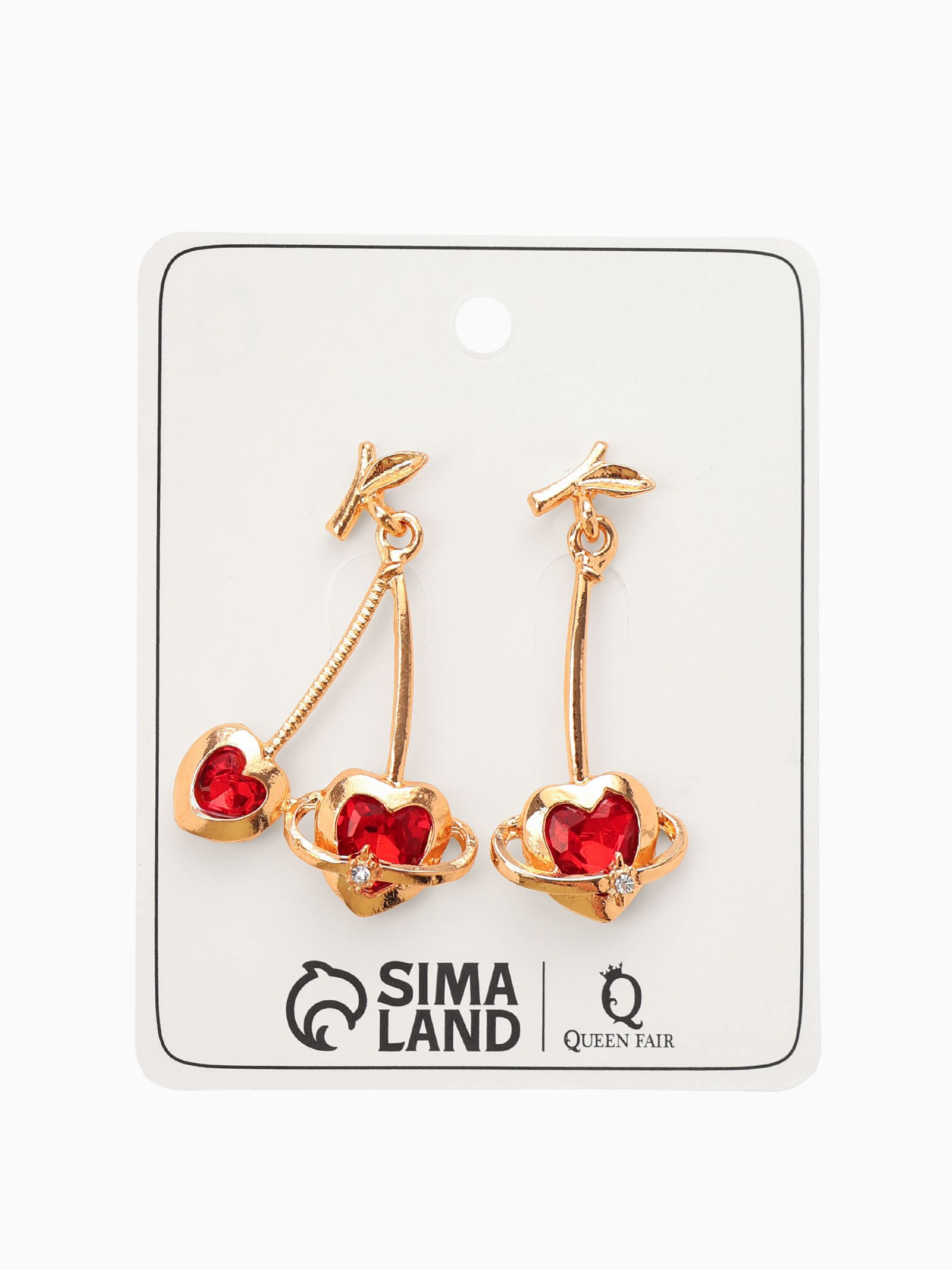 Серьги "Сердечная вишня", красные в золоте, 2.8x4x0.4 см., QF, Китай